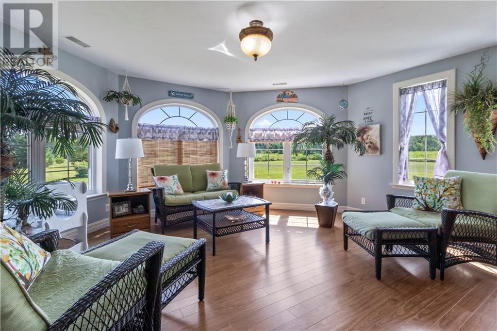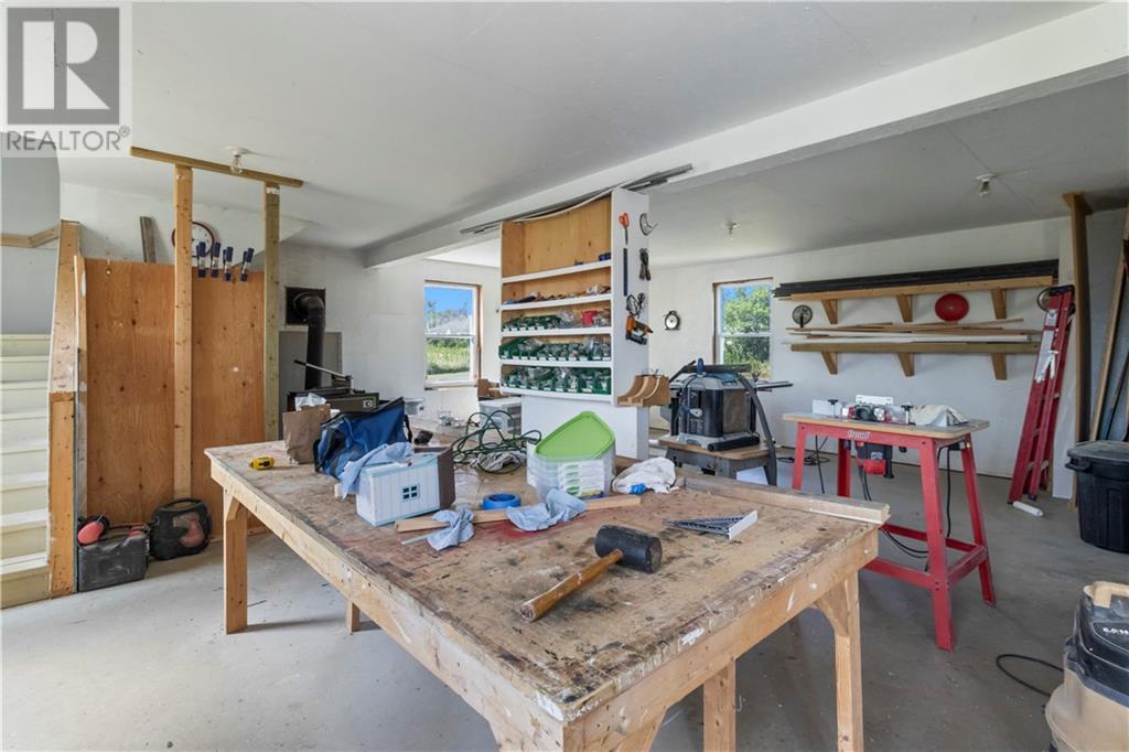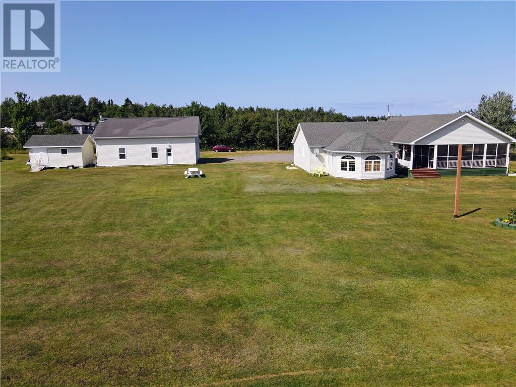 Discover the perfect blend of comfort and functionality in this beautiful bungalow, set on approximately 1 acre of picturesque land with stunning water views. This home offers a spacious kitchen with abundant cabinets and counter space, a dining area, a large living room, one full bathroom and a half bath, a convenient laundry room, two cozy bedrooms, a versatile second living room, and a dedicated office, perfect for working from home or managing household tasks. Enjoy outdoor living on the expansive wrap-around porch with a screened-in patio, perfect for savoring your morning coffee or evening drink. The property includes a large detached garage with a finished loft, ideal for a recreational room or additional living space. Currently used as a woodworking shop, the garage provides endless possibilities to tailor to your needs. Located just 5 minutes from essential amenities and only 30 minutes from Moncton, this home offers peaceful living with easy access to everything you need. Dont miss the opportunity to make this charming bungalow your own. (id:34572)