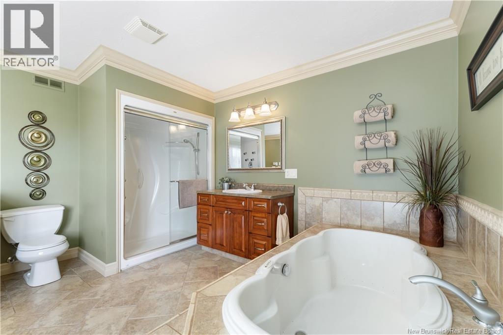 OPEN-CONCEPT / HEATED FLOOR / 3.2 ACRES / IMMACULATE / Welcome / Bienvenue to 3042 Route 132. The perfect property for those seeking the tranquility of country living with the convenience of being just minutes from the city. This immaculate, pride-of-ownership home is nestled on a beautifully landscaped 3.2-ACRE LOT. Step inside to a SPACIOUS, OPEN-CONCEPT main floor featuring a large kitchen and bright living room, perfect for family gatherings and entertaining. The main level also offers a generous primary bedroom complete with an open-concept ensuite bath and a walk-in closet. A second bedroom is also located on this floor, along with a half bath and laundry area. Across the home, you'll find a third (non-conforming) bedroom and access to a STUNNING DOUBLE CAR GARAGE with HEATED EPOXY FLOORING. The ENTIRE MAIN FLOOR has IN-FLOOR HEAT with a hot water boiler system, built on an overpour of concrete for excellent soundproofing. A mini-split heat pump adds year-round comfort. The fully finished basement is ideal for entertaining, featuring a spacious living area, two additional bedrooms, a 4-PC bath, a cold room, and ample storage. Outside, enjoy a private backyard oasis with a lovely deck, a detached garage, and beautiful brick landscaping. Located just 10 minutes from Dieppe and Shediac with quick highway access, this property truly offers the best of both worlds. Dont miss your chance to make this stunning home yours! Call your REALTOR® today! (id:34572)