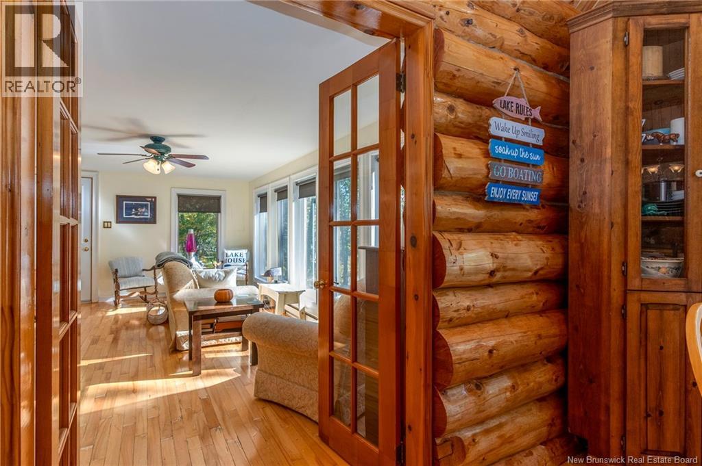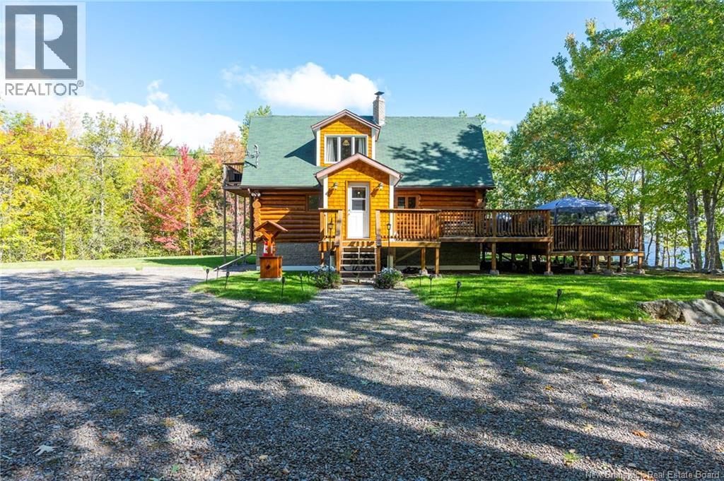 Nestled on the serene shores of Washademoak Lake, this stunning log home offers the perfect blend of rustic charm and modern comfort. With approximately 250 feet of private waterfront, complete with a boat slip, dock, and mooring, its an ideal retreat for boating, swimming, or simply enjoying breathtaking lake views. The property spans 2.25 private acres, providing space, seclusion, and natural beauty in every direction. Inside, the heart of the home is the impressive Great Room, where soaring 18-foot ceilings and warm log finishes create a welcoming space to gather. The home features four spacious bedrooms, including a primary suite with its own ensuite bath, making it perfect for family living or hosting guests. Two full bathrooms add convenience, while the open, airy layout ensures comfort throughout. Cozy evenings are easy to enjoy with two wood stoves, adding both charm and efficiency, complemented by electric baseboard heating and modern ductless heat pumps for year-round climate control. Outdoors, a large deck expands your living space, perfect for entertaining, relaxing, or soaking in sunsets over the water. New roof and Facia just installed. This property combines the best of lakefront living with the timeless appeal of a log home. Whether youre seeking a full-time residence or a seasonal getaway, this Washademoak Lake retreat offers the lifestyle youve been dreaming ofpeace, privacy, and a front-row seat to natures beauty. (id:34572)