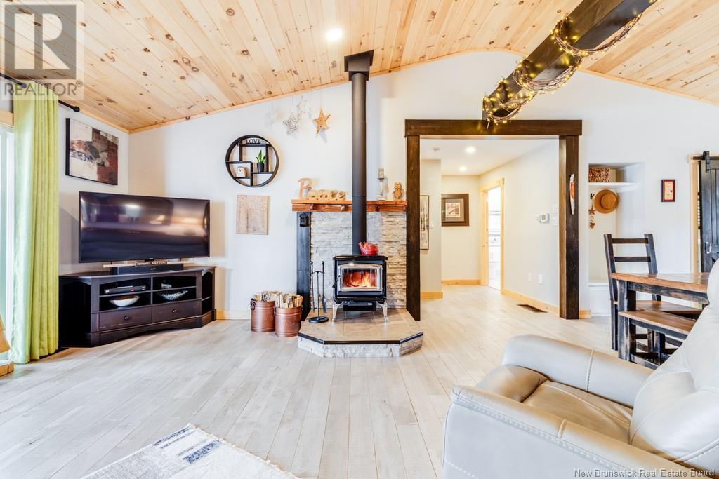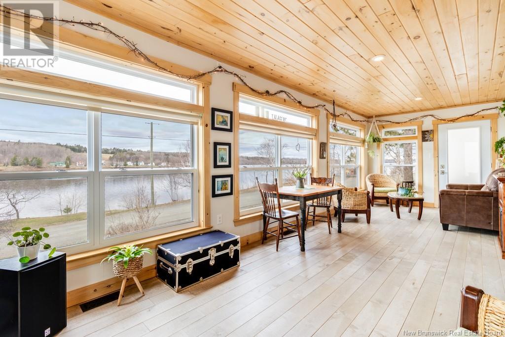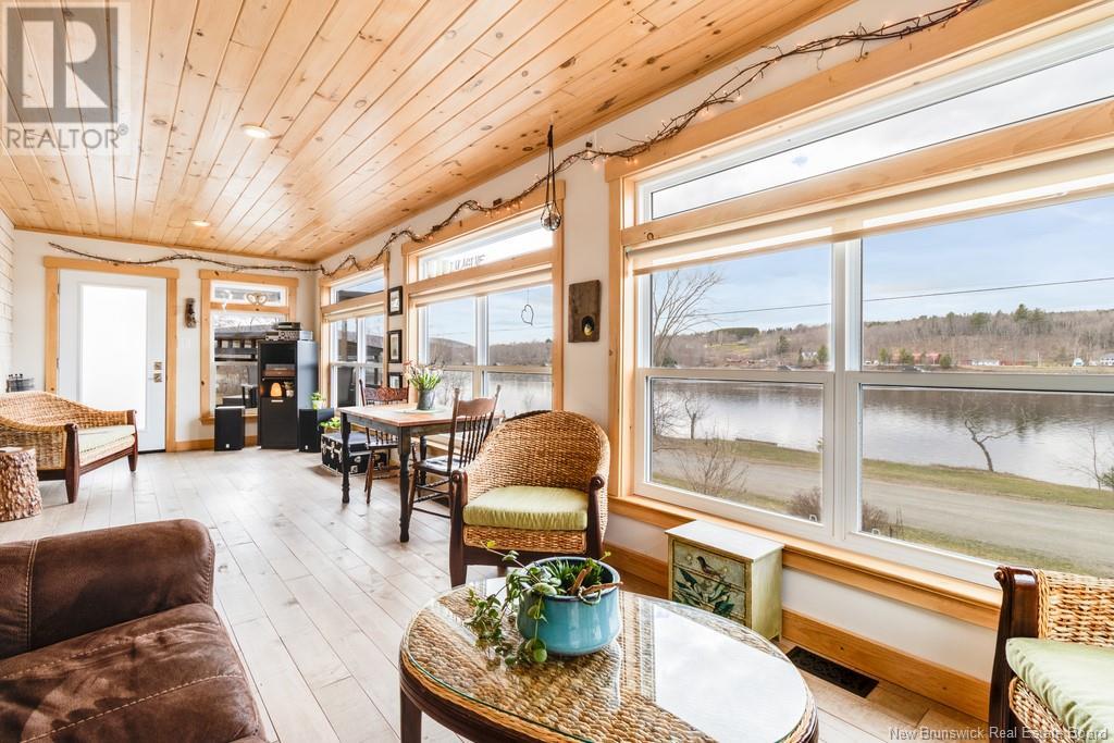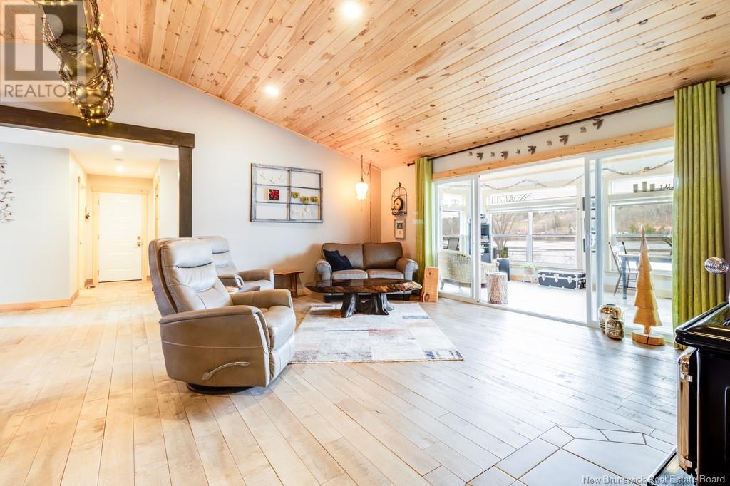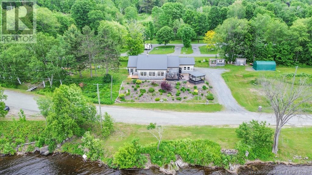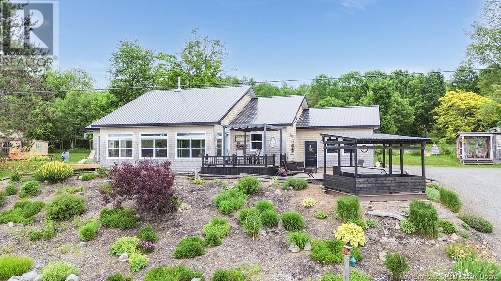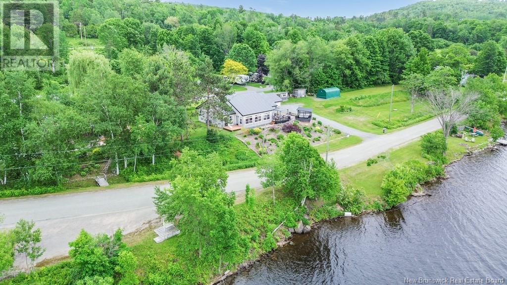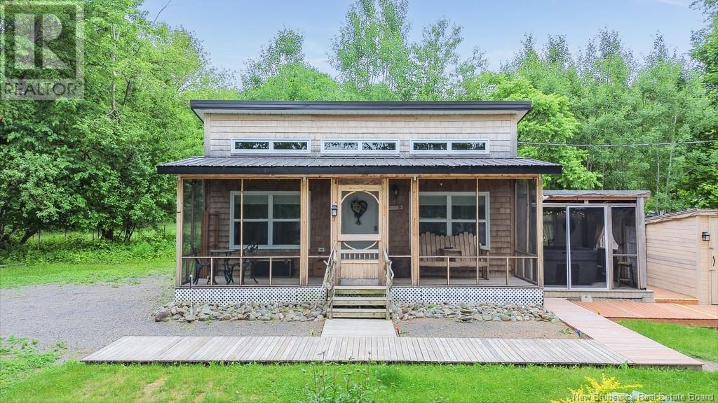 Stunning Sunsets & Tranquil Mornings Await. This 3 bedroom, 2 bath Executive Bungalow holds unmatched panoramic views of the Saint John River, with world class fishing & boating right at your door step, making this a rare find & truly one level living at its finest. As an added bonus, the property includes a stand alone Luxury Cottage - 2 bedrooms, a full bath with open concept kitchen & living area, a private hot tub, steam sauna, & outdoor shower; perfect for guests or as potential income. With combined 2500 sq ft of finished space both dwellings were built with timeless style and comfort in mind. The main home centres around an open concept kitchen, living room with vaulted ceiling, exposed beam, cozy Pacific Energy Wood Stove, and hardwood floors throughout. The front of the home offers panoramic water views with access to multiple decks for dining, leisure and relaxation in a second covered hot tub. The kitchen has abundant storage with beautiful glass cabinetry, large centre island, walk-in pantry, and double farmhouse sink. The main bath is a real dream with heated floors, spacious barrier free tiled shower & double soaker bathtub. This is not your typical waterside property. This is a lifestyle where you can relax using your own spa like amenities, launch your boat right from your front yard and never worry about flooding, as the head pond is above the Mactaquac Dam. Vendors are related to the listing sales person who is licensed with the province of New Brunswick (id:34572)