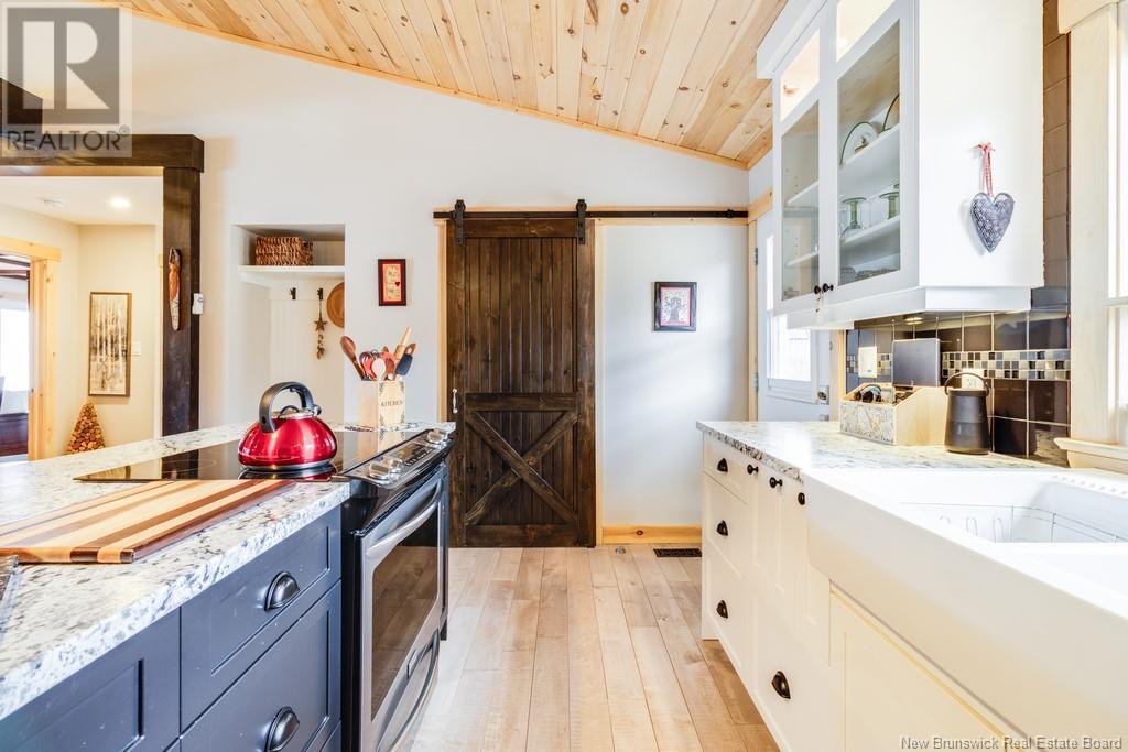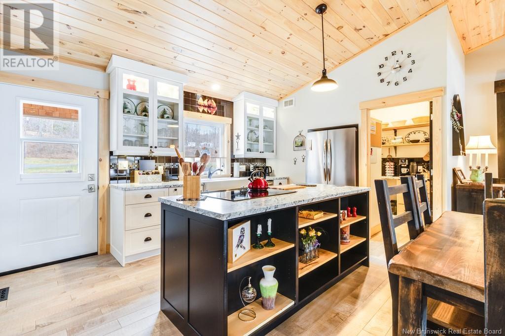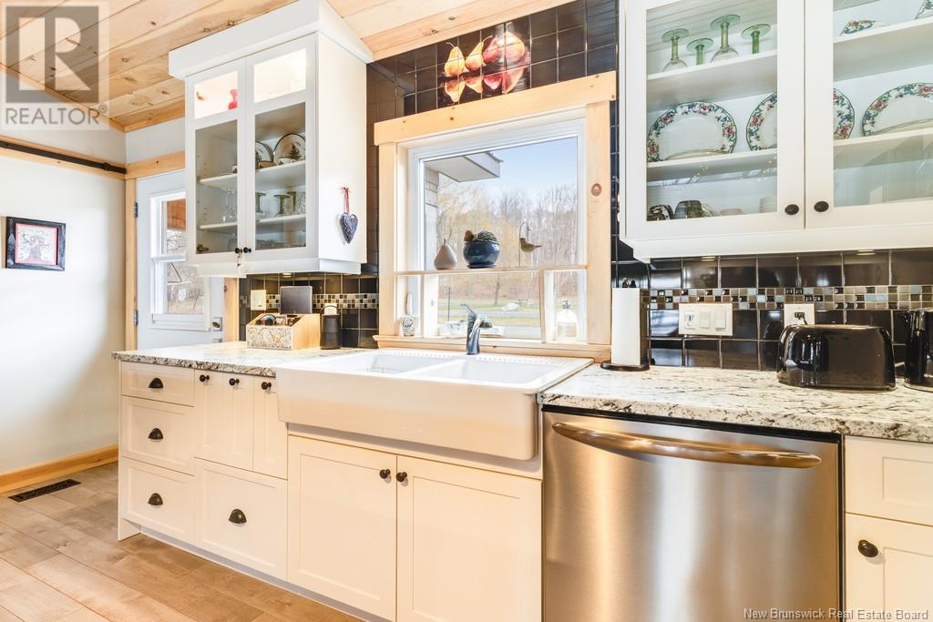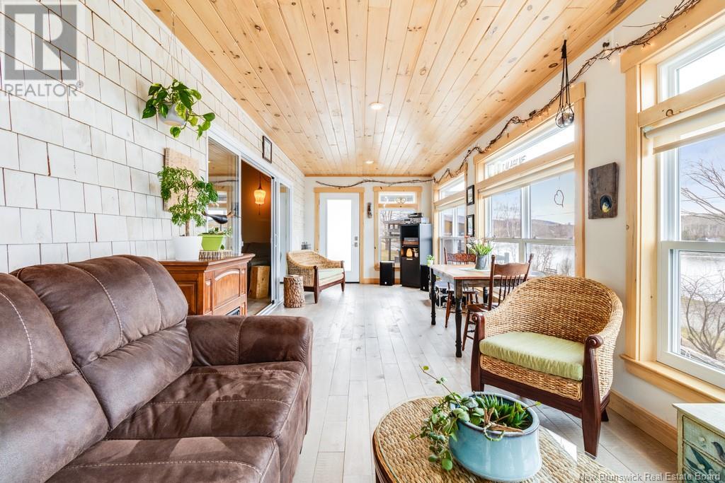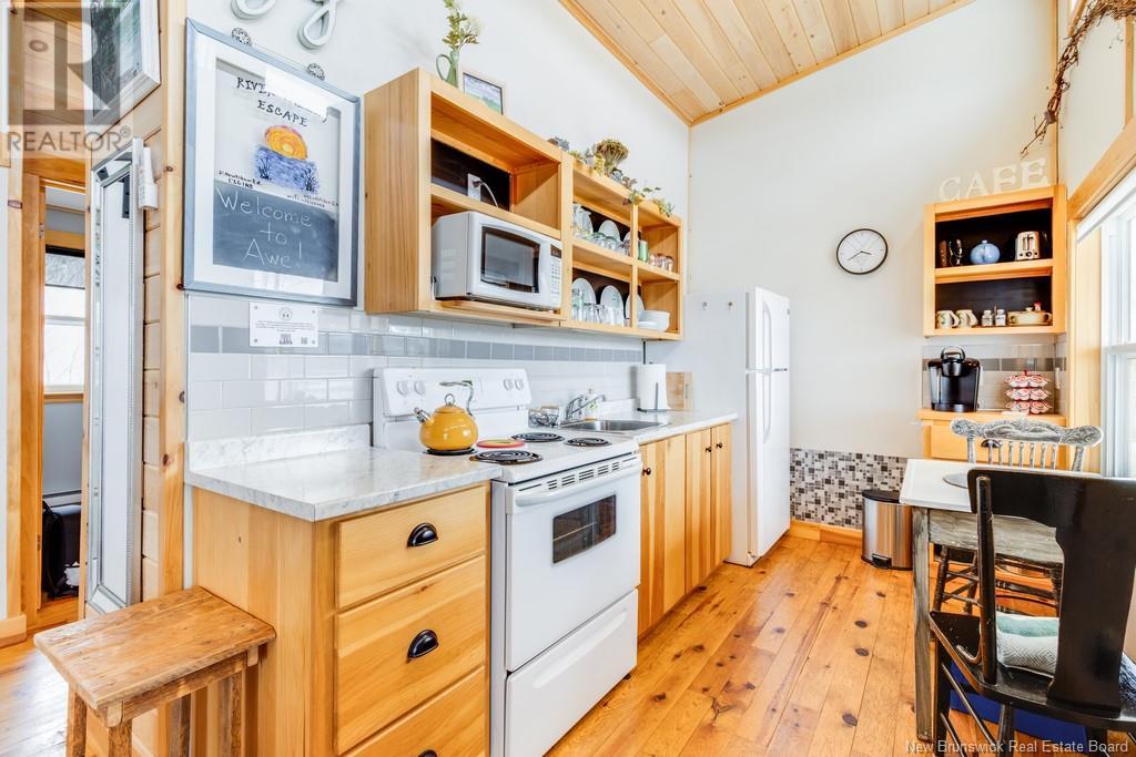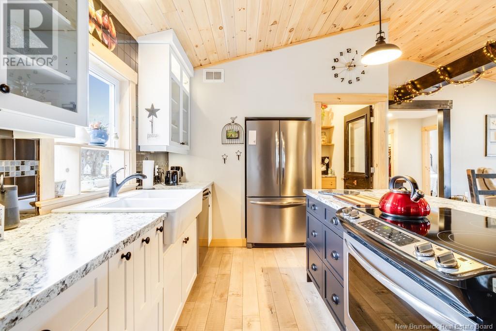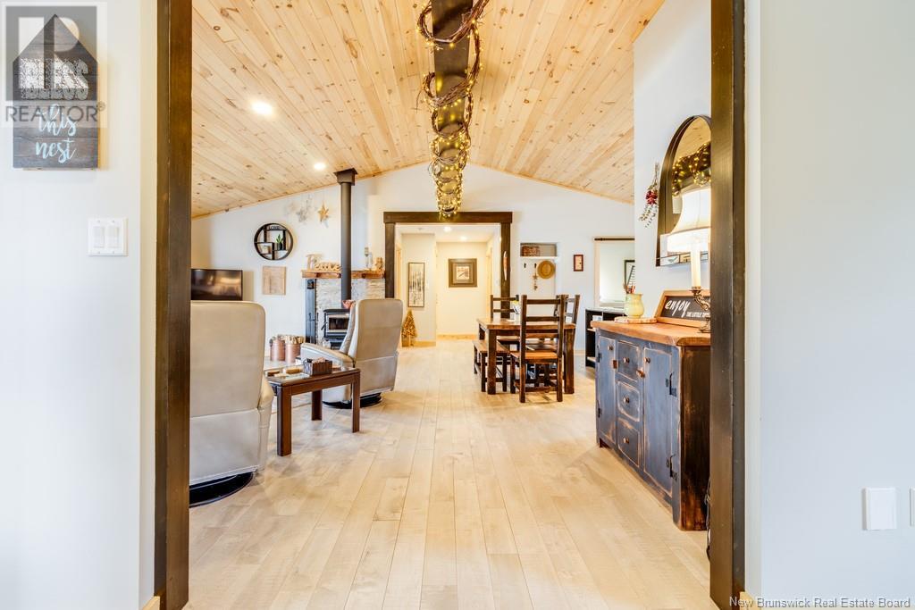 Stunning Sunsets & Tranquil Mornings Await. This 3 bedroom, 2 bath Executive Bungalow holds unmatched panoramic views of the Saint John River, with world class fishing & boating right at your door step, making this a rare find & truly one level living at its finest. As an added bonus, the property includes a stand alone Luxury Cottage - 2 bedrooms, a full bath with open concept kitchen & living area, a private hot tub, steam sauna, & outdoor shower; perfect for guests or as potential income. With combined 2500 sq ft of finished space both dwellings were built with timeless style and comfort in mind. The main home centres around an open concept kitchen, living room with vaulted ceiling, exposed beam, cozy Pacific Energy Wood Stove, and hardwood floors throughout. The front of the home offers panoramic water views with access to multiple decks for dining, leisure and relaxation in a second covered hot tub. The kitchen has abundant storage with beautiful glass cabinetry, large centre island, walk-in pantry, and double farmhouse sink. The main bath is a real dream with heated floors, spacious barrier free tiled shower & double soaker bathtub. This is not your typical waterside property. This is a lifestyle where you can relax using your own spa like amenities, launch your boat right from your front yard and never worry about flooding, as the head pond is above the Mactaquac Dam. Vendors are related to the listing sales person who is licensed with the province of New Brunswick (id:34572)