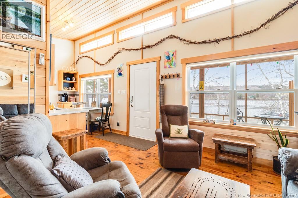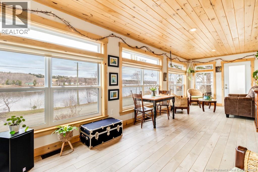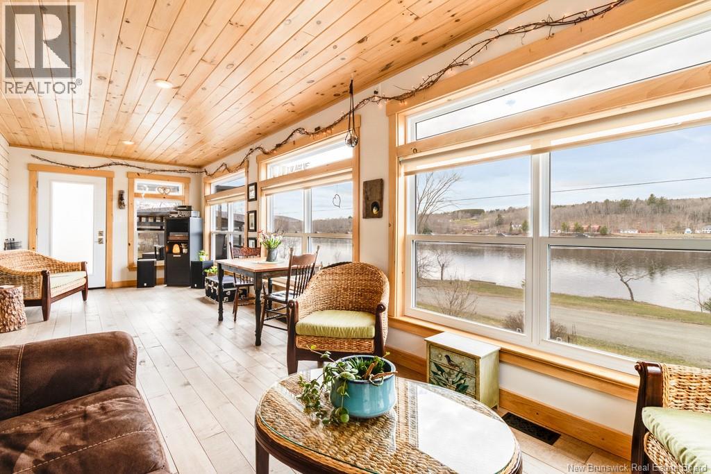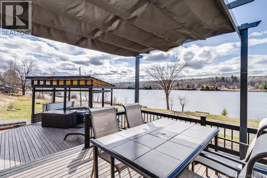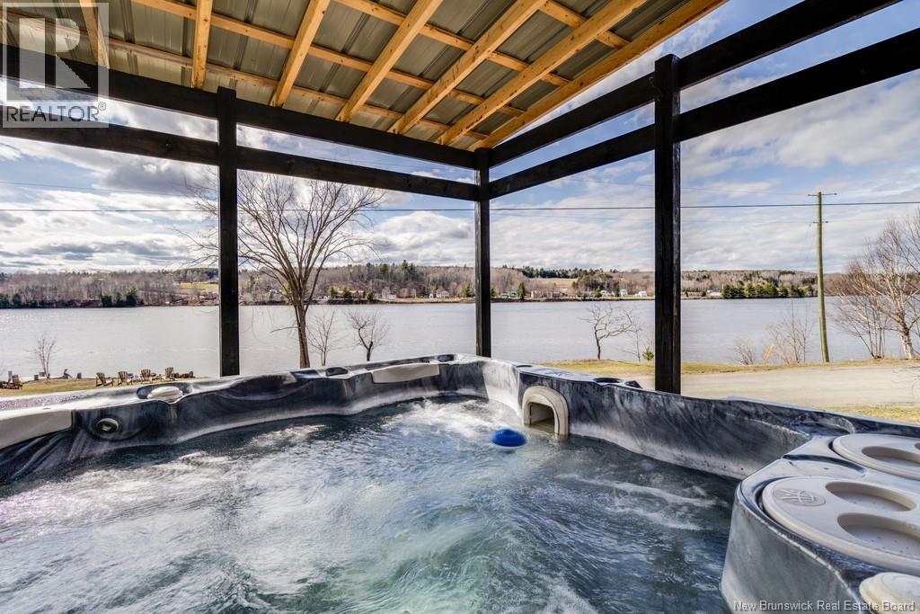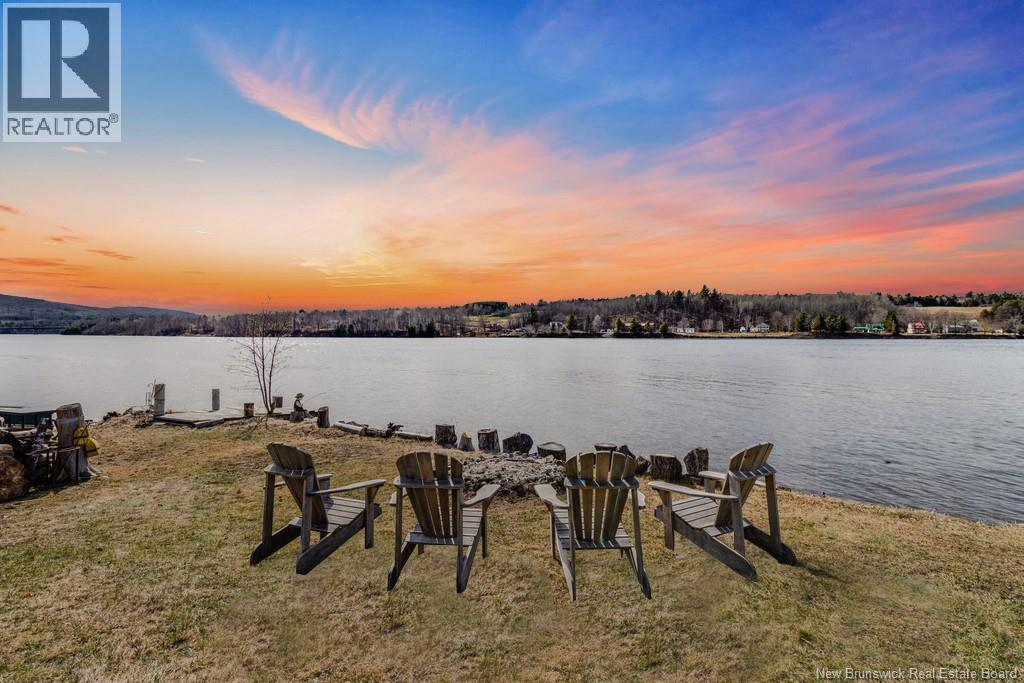 Welcome to your East Coast Dream Life. Enjoy Waterside Comfort, One Level Living with Spa Like Amenities & Income Potential. Perfect for Retirement, this 3 bedroom, 2 bath Custom Built Bungalow holds gorgeous sunsets over the Saint John River with nature's playground at your doorstep and the added bonus of a stand alone Luxury Cottage - 2 bedrooms a full bath with open concept kitchen & living area, a private hot tub, steam sauna, & outdoor shower. With combined 2500 sq ft of finished space both dwellings were built with timeless style & comfort in mind. The main home is Authentic Atlantic Shaker Style and centres around an open concept kitchen, living room with vaulted ceiling, exposed beam, cozy Pacific Energy Wood Stove, and hardwood floors throughout. The front of the home offers panoramic water views with access to multiple decks for dining, leisure and relaxation in a second covered hot tub. The kitchen has abundant storage with beautiful glass cabinetry, large centre island, walk-in pantry, & double farmhouse sink. The main bath is a real dream with heated floors, spacious barrier free tiled shower & double soaker bathtub. This property offers a lifestyle where you can relax using your own spa like amenities, launch your boat right from your front yard and never worry about flooding as it is located above the Mactaquac Dam & only 30 minutes from Capital City Fredericton. Vendors are related to the listing sales person who is licensed with the province of New Brunswick (id:34572)