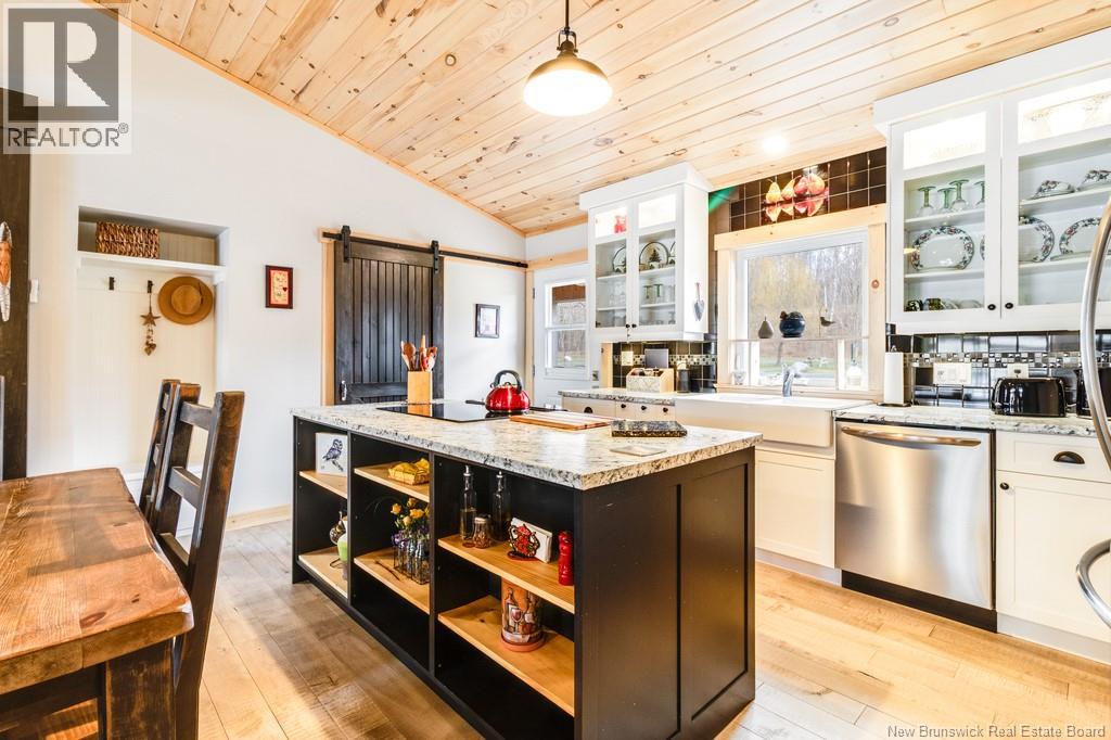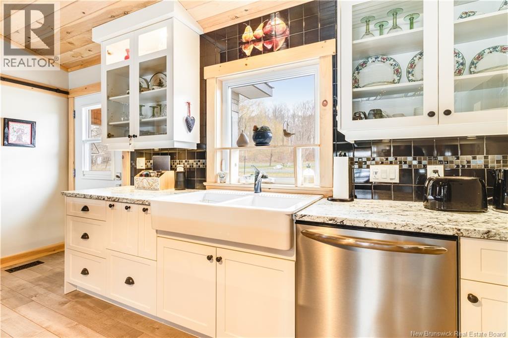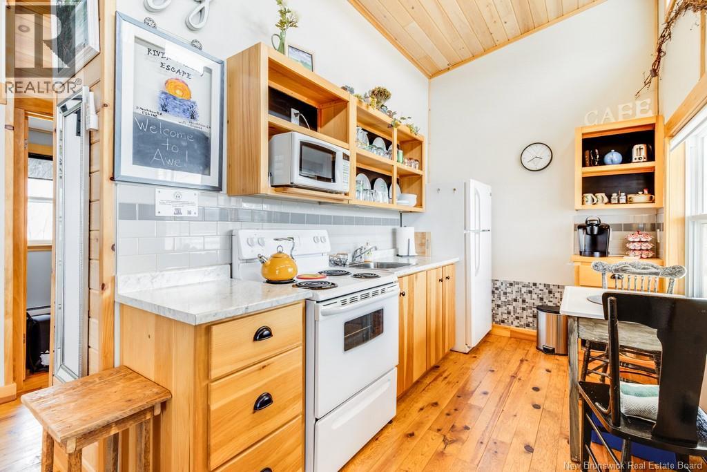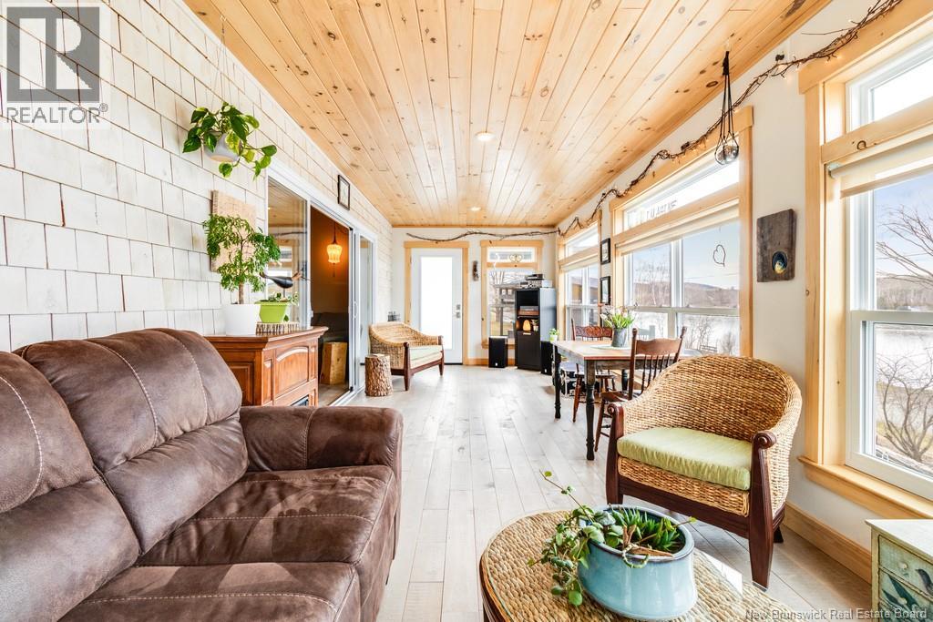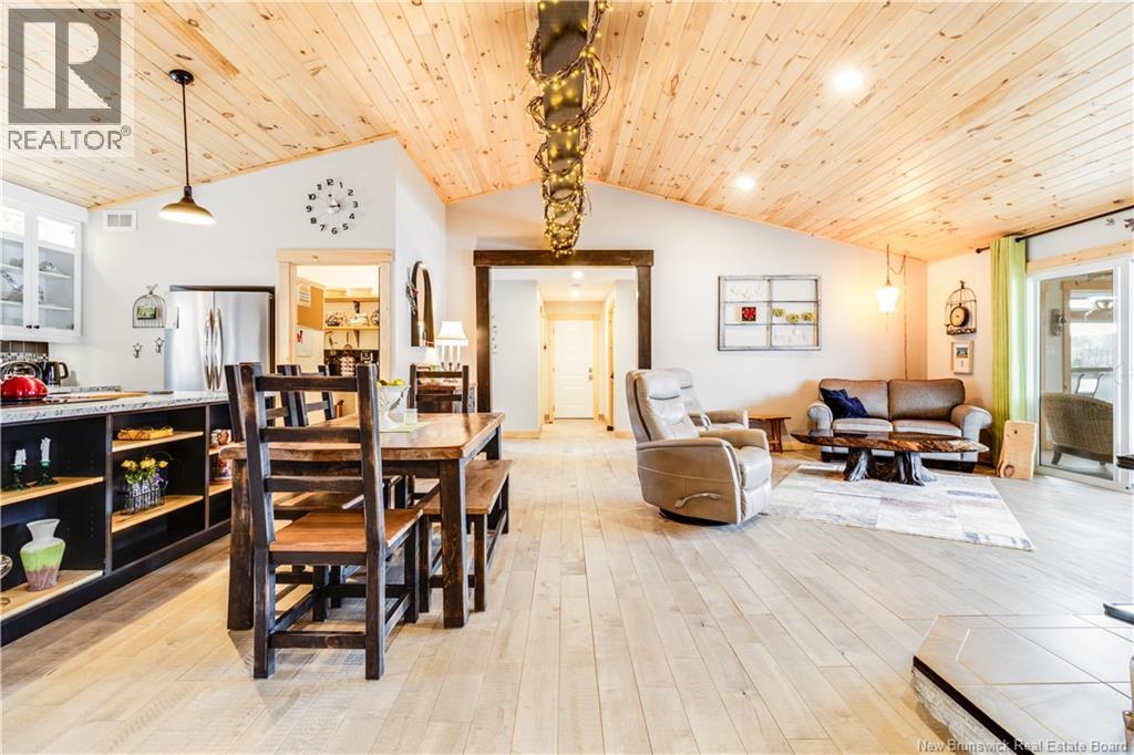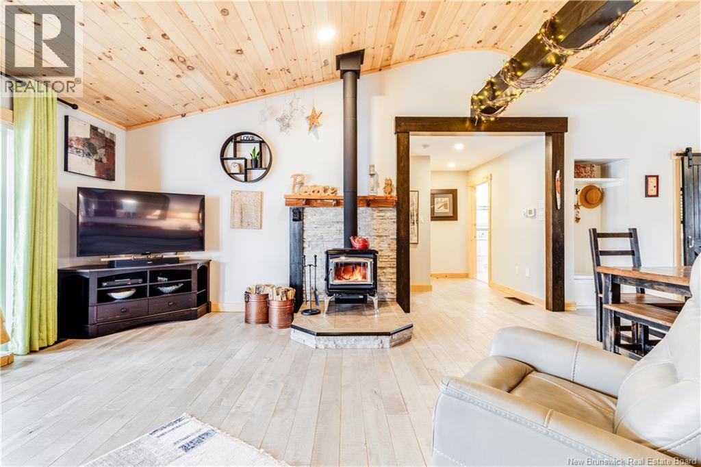 Welcome to your East Coast Dream Life. Enjoy Waterside Comfort, One Level Living with Spa Like Amenities & Income Potential. Perfect for Retirement, this 3 bedroom, 2 bath Custom Built Bungalow holds gorgeous sunsets over the Saint John River with nature's playground at your doorstep and the added bonus of a stand alone Luxury Cottage - 2 bedrooms a full bath with open concept kitchen & living area, a private hot tub, steam sauna, & outdoor shower. With combined 2500 sq ft of finished space both dwellings were built with timeless style & comfort in mind. The main home is Authentic Atlantic Shaker Style and centres around an open concept kitchen, living room with vaulted ceiling, exposed beam, cozy Pacific Energy Wood Stove, and hardwood floors throughout. The front of the home offers panoramic water views with access to multiple decks for dining, leisure and relaxation in a second covered hot tub. The kitchen has abundant storage with beautiful glass cabinetry, large centre island, walk-in pantry, & double farmhouse sink. The main bath is a real dream with heated floors, spacious barrier free tiled shower & double soaker bathtub. This property offers a lifestyle where you can relax using your own spa like amenities, launch your boat right from your front yard and never worry about flooding as it is located above the Mactaquac Dam & only 30 minutes from Capital City Fredericton. Vendors are related to the listing sales person who is licensed with the province of New Brunswick (id:34572)