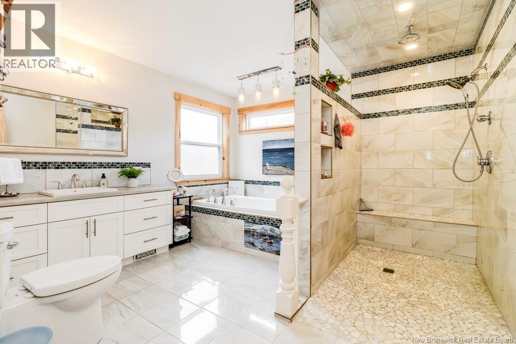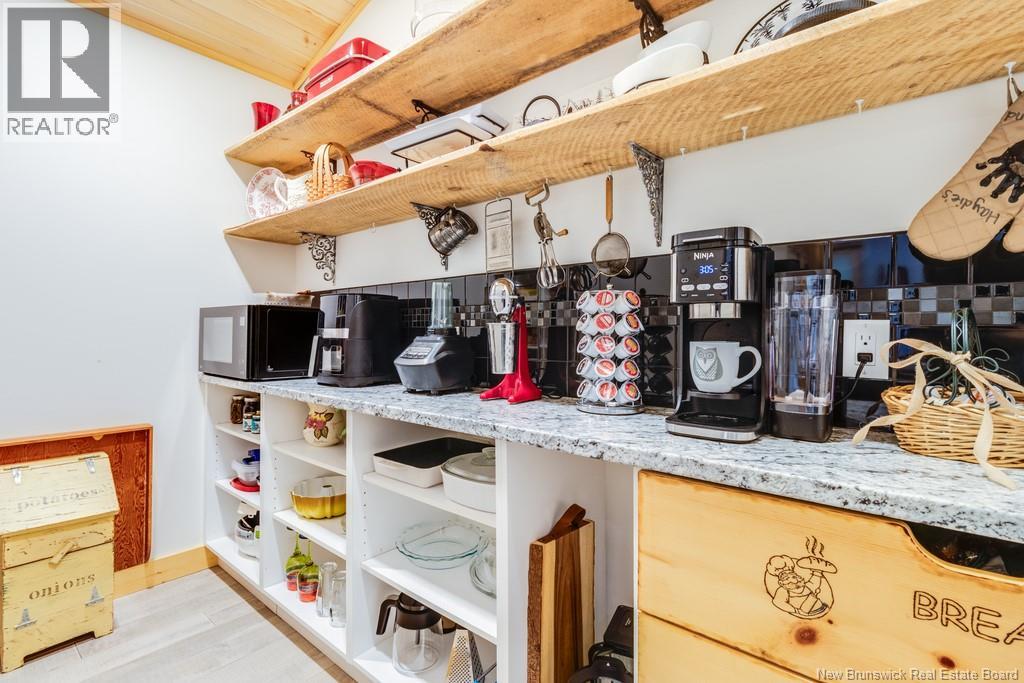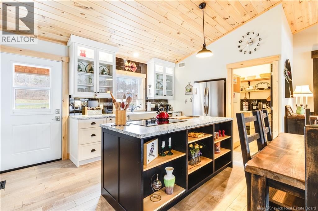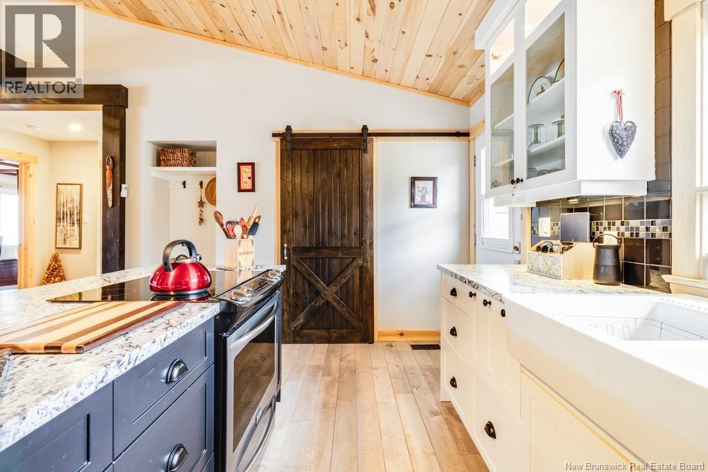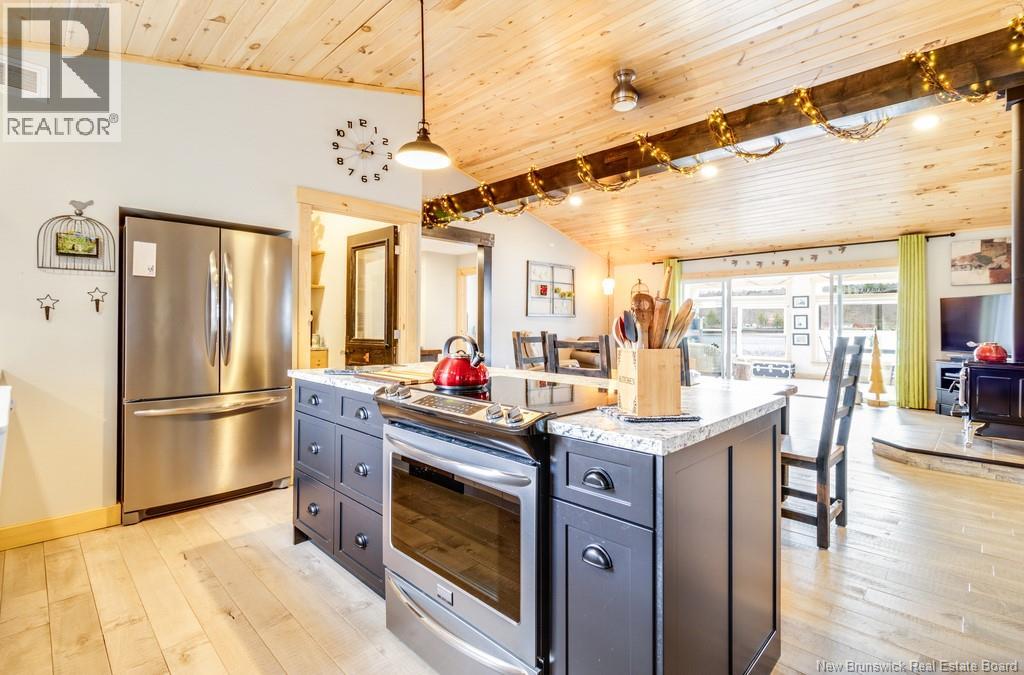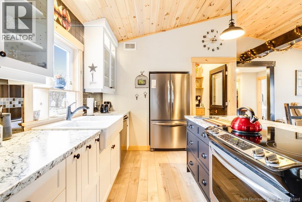 Welcome to your East Coast Dream Life. Enjoy Waterside Comfort, One Level Living with Spa Like Amenities & Income Potential. Perfect for Retirement, this 3 bedroom, 2 bath Custom Built Bungalow holds gorgeous sunsets over the Saint John River with nature's playground at your doorstep and the added bonus of a stand alone Luxury Cottage - 2 bedrooms a full bath with open concept kitchen & living area, a private hot tub, steam sauna, & outdoor shower. With combined 2500 sq ft of finished space both dwellings were built with timeless style & comfort in mind. The main home is Authentic Atlantic Shaker Style and centres around an open concept kitchen, living room with vaulted ceiling, exposed beam, cozy Pacific Energy Wood Stove, and hardwood floors throughout. The front of the home offers panoramic water views with access to multiple decks for dining, leisure and relaxation in a second covered hot tub. The kitchen has abundant storage with beautiful glass cabinetry, large centre island, walk-in pantry, & double farmhouse sink. The main bath is a real dream with heated floors, spacious barrier free tiled shower & double soaker bathtub. This property offers a lifestyle where you can relax using your own spa like amenities, launch your boat right from your front yard and never worry about flooding as it is located above the Mactaquac Dam & only 30 minutes from Capital City Fredericton. Vendors are related to the listing sales person who is licensed with the province of New Brunswick (id:34572)