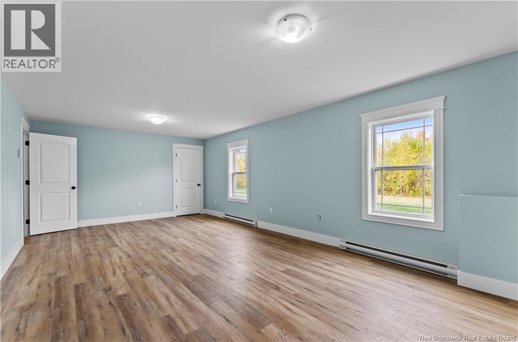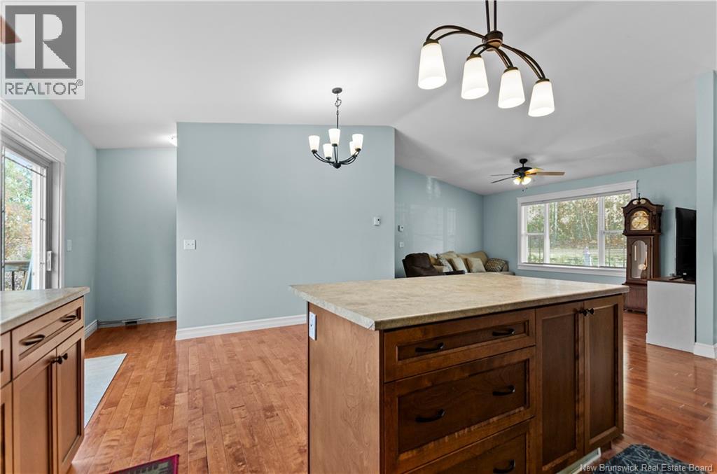 Welcome to 31 Lyman Street in Burton, where country charm meets modern comfort. Tucked away on a quiet, dead-end street with no through traffic, this walkout bungalow sits on a private, landscaped 2-acre lot. Enjoy the peace of rural living while being less than 10 minutes to Oromocto, about 25 minutes to Fredericton, and minutes from CFB Gagetown. Step up to the covered front porch and into a bright, open-concept main living area with 10-ft vaulted ceilings. The kitchen offers custom cabinetry and flows into the dining and living spaces, where patio doors lead to your two back decks, perfect for relaxing or entertaining. The attached double garage is conveniently located off the kitchen. Down the hall is a spacious primary suite featuring a custom tile, doorless shower in the ensuite, 2 more bedrooms, and a main bath. Finished lower level with walkout, complete with 8-ft ceilings, features a large family room/theater room, an oversized 4th bedroom, a home office, spacious third bathroom, laundry area, and mechanical room. The backyard is level and suitable for parking an RV and space for an above ground pool. With its peaceful location, modern features, and thoughtful design, this home delivers the perfect blend of comfort, privacy, and convenience. (id:34572)