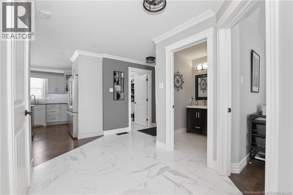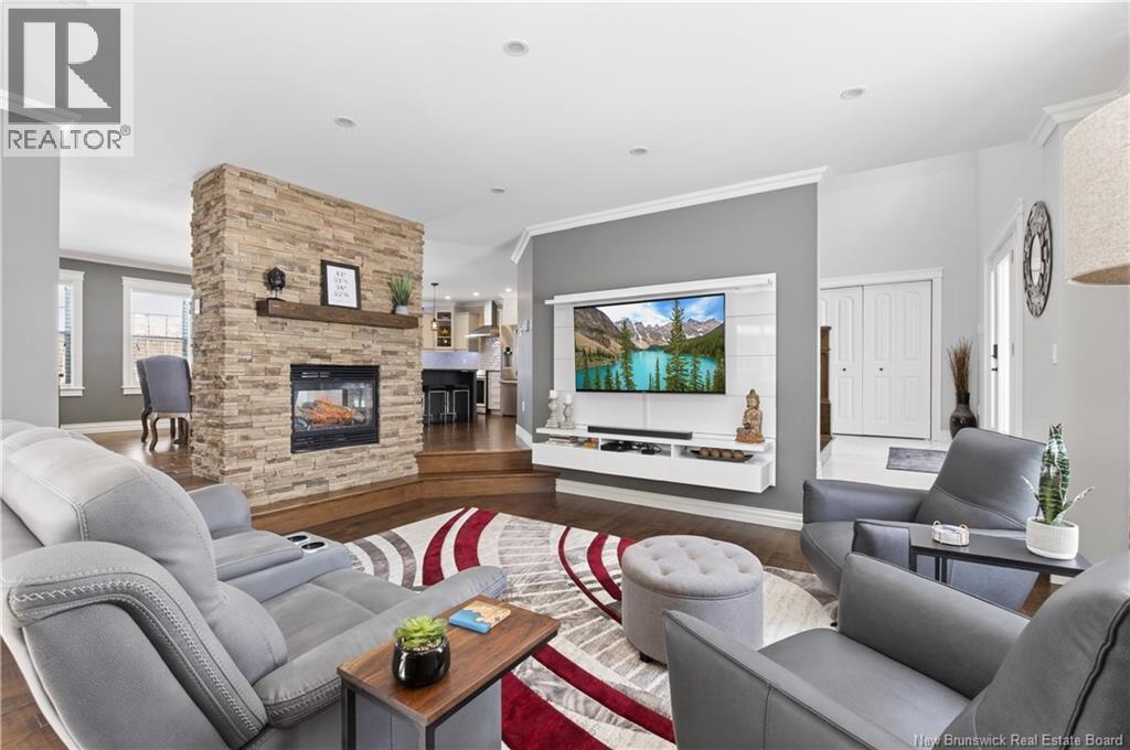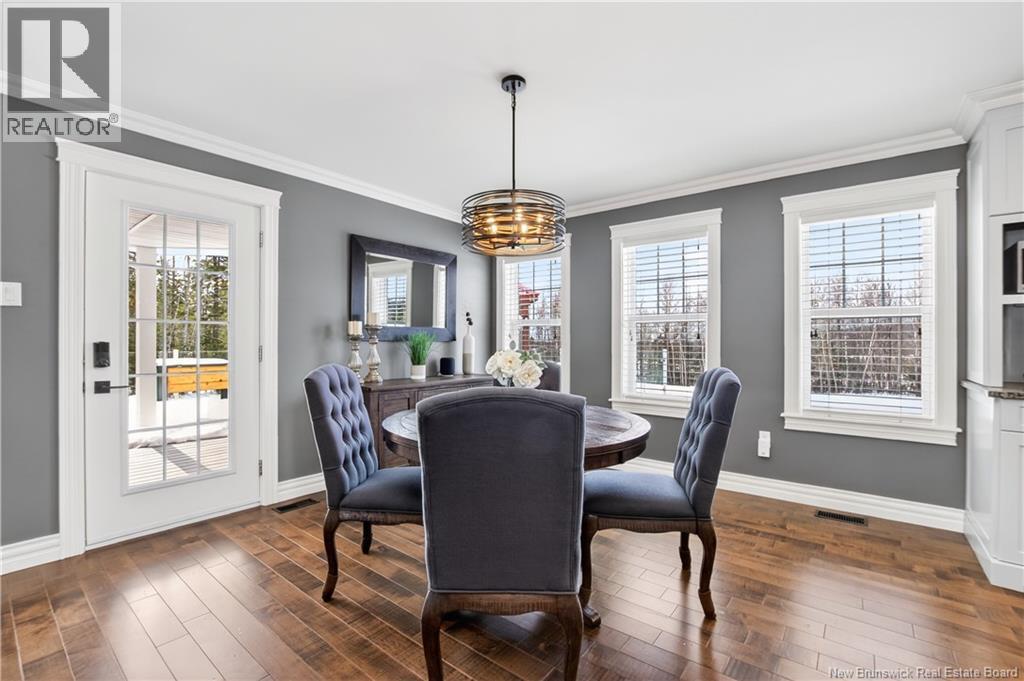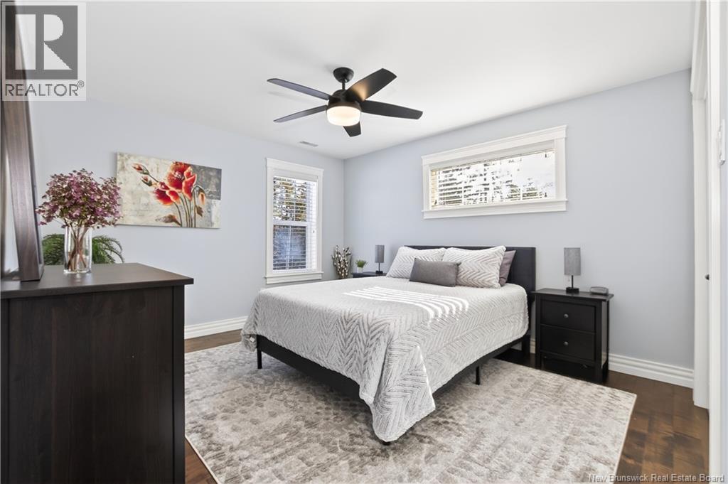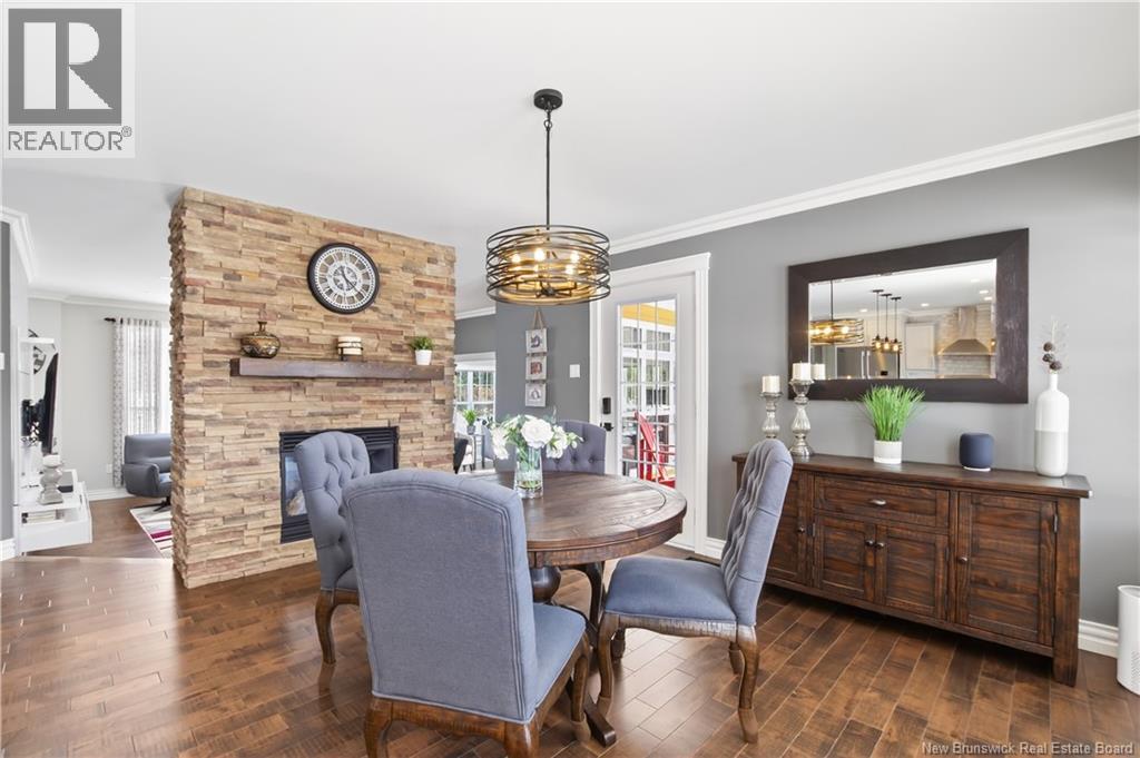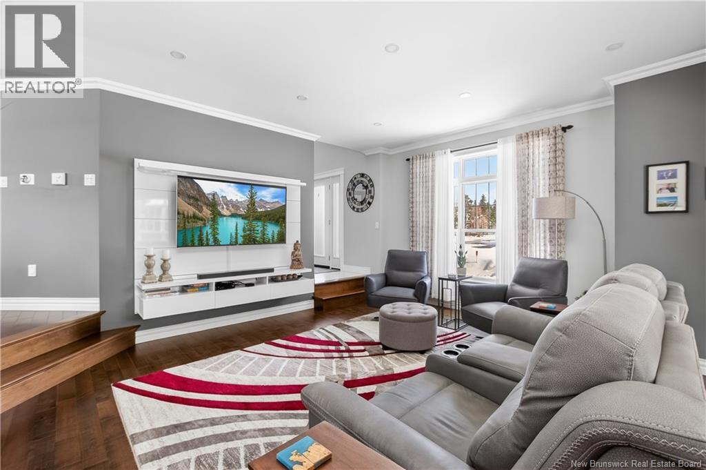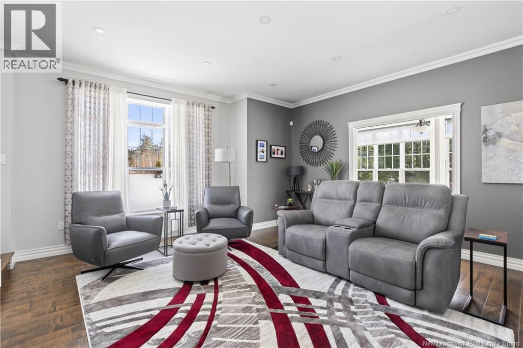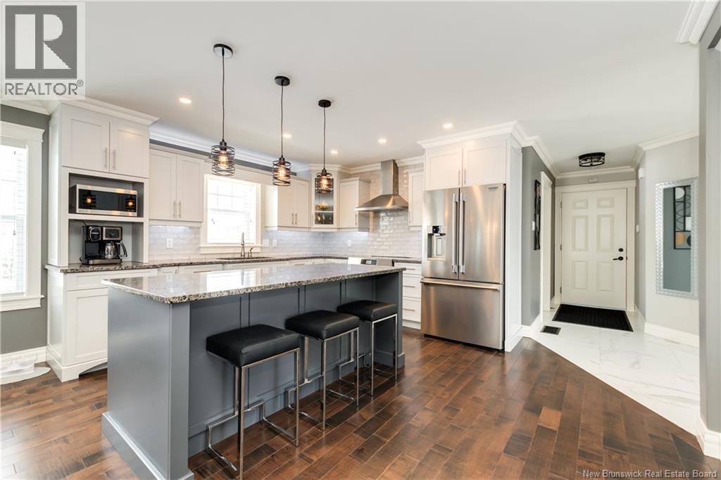 Tucked away on a quiet cul-de-sac in the highly sought-after community of Ammon, this home offers a perfect blend of elegance, comfort, and privacy. Set on a beautifully landscaped lot minutes from Monctons amenities, this impressive home is equipped with an efficient GEOTHERMAL heating and cooling system, delivering year-round comfort with reduced energy costs. From the moment you enter, youll notice the refined design and spacious layout. Large windows fill the home with natural light, showcasing quality finishes and thoughtful details throughout. The main living area flows seamlessly into a stunning kitchen designed for both everyday living and entertaining, featuring ample cabinetry, generous counter space, and a large island ideal for gathering with family and friends. The main floor also includes a private office, sunroom, a convenient mudroom, and a 2-piece bath. Upstairs are 3 generously sized bedrooms, laundry and a 4-piece bath. The luxurious primary suite offers a 5-piece ensuite, large walk-in closet with custom built-ins and a private deck, perfect for morning coffee or evening relaxation. All decks are composite for durability and low-maintenance enjoyment. The basement offers a spacious family room, providing excellent additional living space. Outside, enjoy the peaceful backyard setting, plus a double detached garage with a full sports bar above, an exceptional space for entertaining. A rare opportunity combining estate-style living with city convenience. (id:34572)