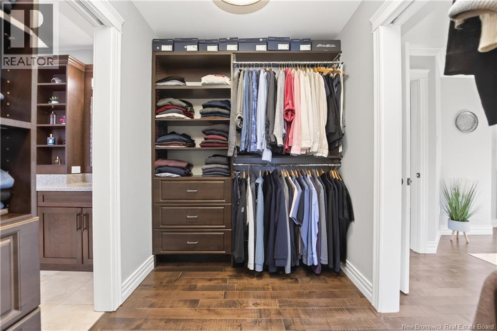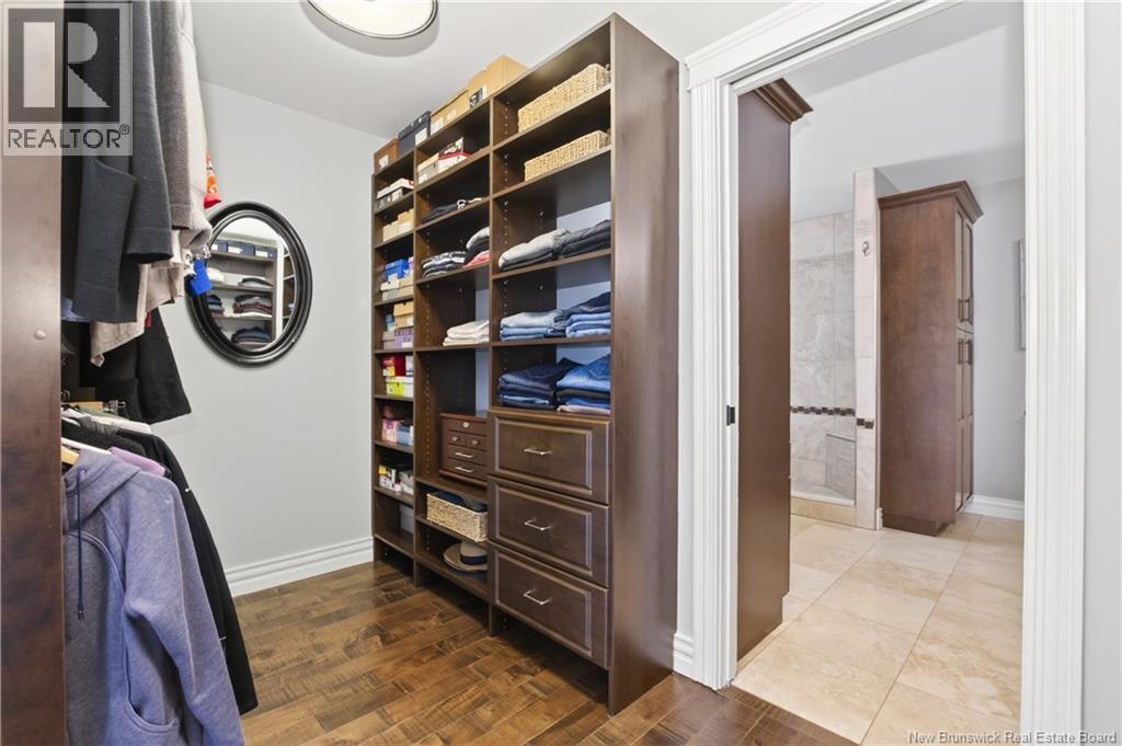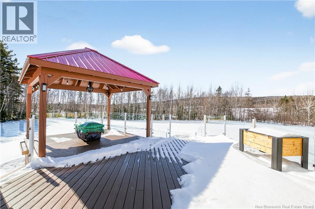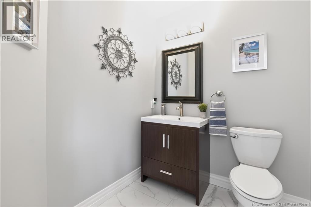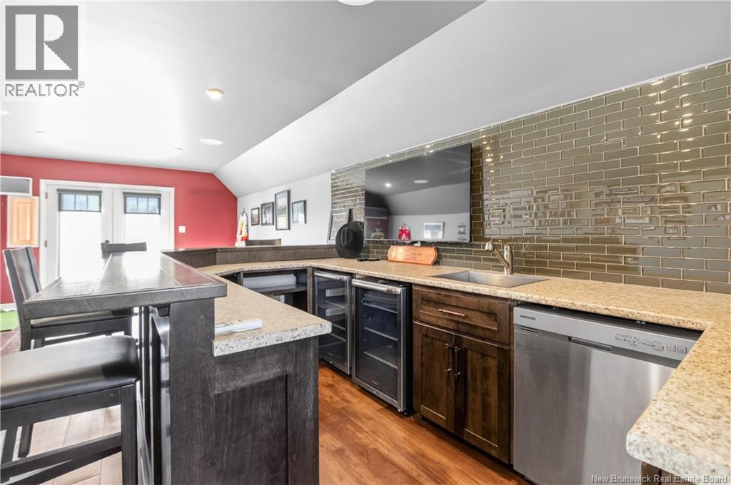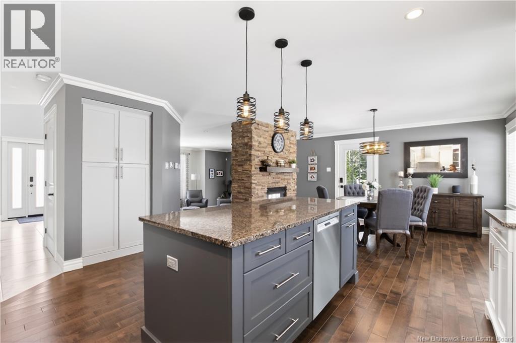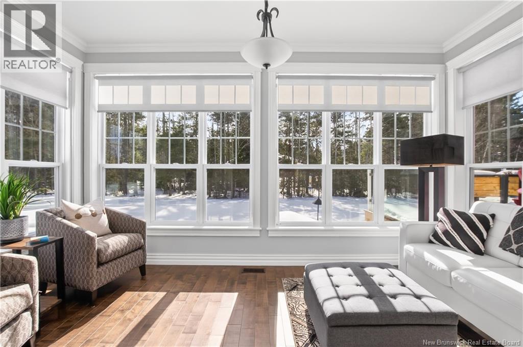 Tucked away on a quiet cul-de-sac in the highly sought-after community of Ammon, this home offers a perfect blend of elegance, comfort, and privacy. Set on a beautifully landscaped lot minutes from Monctons amenities, this impressive home is equipped with an efficient GEOTHERMAL heating and cooling system, delivering year-round comfort with reduced energy costs. From the moment you enter, youll notice the refined design and spacious layout. Large windows fill the home with natural light, showcasing quality finishes and thoughtful details throughout. The main living area flows seamlessly into a stunning kitchen designed for both everyday living and entertaining, featuring ample cabinetry, generous counter space, and a large island ideal for gathering with family and friends. The main floor also includes a private office, sunroom, a convenient mudroom, and a 2-piece bath. Upstairs are 3 generously sized bedrooms, laundry and a 4-piece bath. The luxurious primary suite offers a 5-piece ensuite, large walk-in closet with custom built-ins and a private deck, perfect for morning coffee or evening relaxation. All decks are composite for durability and low-maintenance enjoyment. The basement offers a spacious family room, providing excellent additional living space. Outside, enjoy the peaceful backyard setting, plus a double detached garage with a full sports bar above, an exceptional space for entertaining. A rare opportunity combining estate-style living with city convenience. (id:34572)