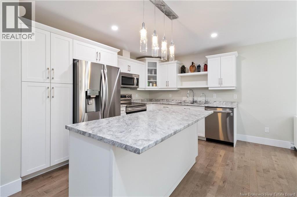 MOVE-IN READY SEMI IN MONCTON NORTH! 3 FULL LEVELS FINISHED, BACKING ONTO TREES, AND STILL UNDER NEW HOME WARRANTY! Welcome to 326 Teaberry Avenue, a beautifully maintained 4-bedroom, 3.5-bath semi offering over 2,000 sq. ft. of total living space and an attached garage. The open-concept main floor features a bright living area, dining space with access to the back deck, and a modern kitchen complete with stainless steel appliances, ample cabinetry, and a large island perfect for entertaining. Upstairs, the spacious primary suite includes a walk-in closet and a full ensuite, while two additional bedrooms, a full bath, and convenient laundry area complete this level. The fully finished basement adds versatility with a fourth bedroom, full bath, and large rec room ideal for family living or guest space. Hardwood floors, one mini-split heat pump, a paved driveway, and a landscaped lot add value and comfort. Situated in the sought-after North End, close to schools, shopping, and major amenities, this home offers the perfect blend of style, location, and peace of mind. Book your private showing today! (id:34572)