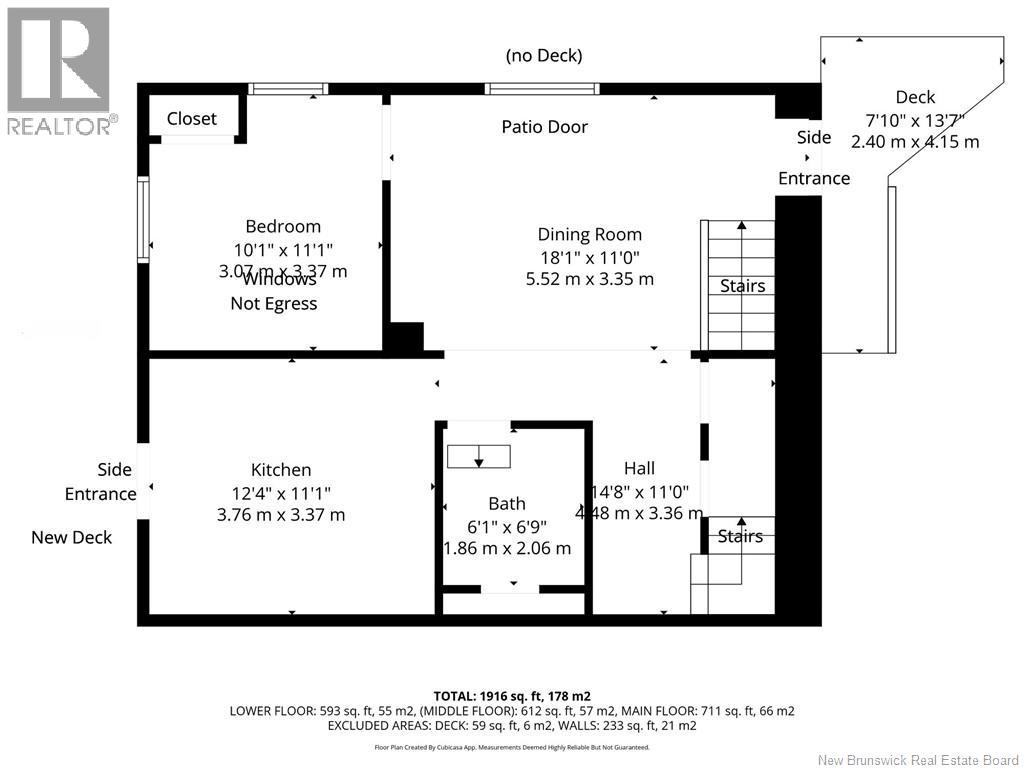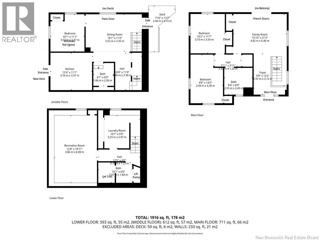 UPDATED: Spacious 3-bedroom, 3-bathroom home offering a unique multi-level layout and beautiful views of the Restigouche River and Mountains in the distance. Ideally located just down the street from the beach and Recreaplex Wellness Centre. From the outside you'll never guess what awaits- step inside to a gorgeous foyer with soaring high ceilings that flows into the family room. Main floor also features two bedrooms with closets, full bathroom and a pull-down attic stair in the hall offering quick and convenient access to storage space. Middle floor has dining area with side entrance, kitchen with propane cooking stove and separate entrance with a new deck (Oct 2025), plus a bedroom with closet (windows non egress) and bathroom with standalone shower. Do not open: French doors on the main floor (No balcony) and patio doors on 2nd floor (No deck). Lower floor large rec room is great to entertain family & friends, laundry room has utility sink and storage, the full bathroom has a jet tub plus access to the lift pump through the closet floor. Additional Features: Two electric meters on separate power bills (1 for main floor and 1 for middle & lower floors), Roof shingles & Venmar system 2023, NB Power rented hot water tank 2015. With a beautiful view in the distance and some TLC this property has endless potential! Call today and book your visit!! (id:34572)