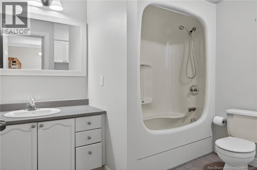 Discover the perfect blend of style and convenience in this beautifully updated 2-bedroom, 1-bathroom bungalow-style condo in Moncton. Designed for contemporary living, this home boasts a spacious open-concept layout, creating an airy and fluid living space where every detail has been considered. The whole kitchen was redone in 2015 and still shines, making meal prep a joy, while elegant laminate flooring flows seamlessly throughout the entire unit, adding to its modern appeal. Beyond its stylish interior, this condo delivers on comfort and practicality. A new high-efficiency heat pump (2024) ensures cozy winters and cool summers, providing energy-efficient climate control. Step out to your private back deck, an ideal extension of your living space for outdoor enjoyment, complemented by a handy storage shed for added utility. Offering exceptional value, this single-level residence is an ideal choice for first-time buyers, downsizers, or anyone seeking a hassle-free, move-in-ready property in a great Moncton neighborhood. Condo fees are $400/month and include water/sewer, lawn care, snow removal and 2 dedicated parking spaces. Taxes are based on non owner occupied. (id:34572)