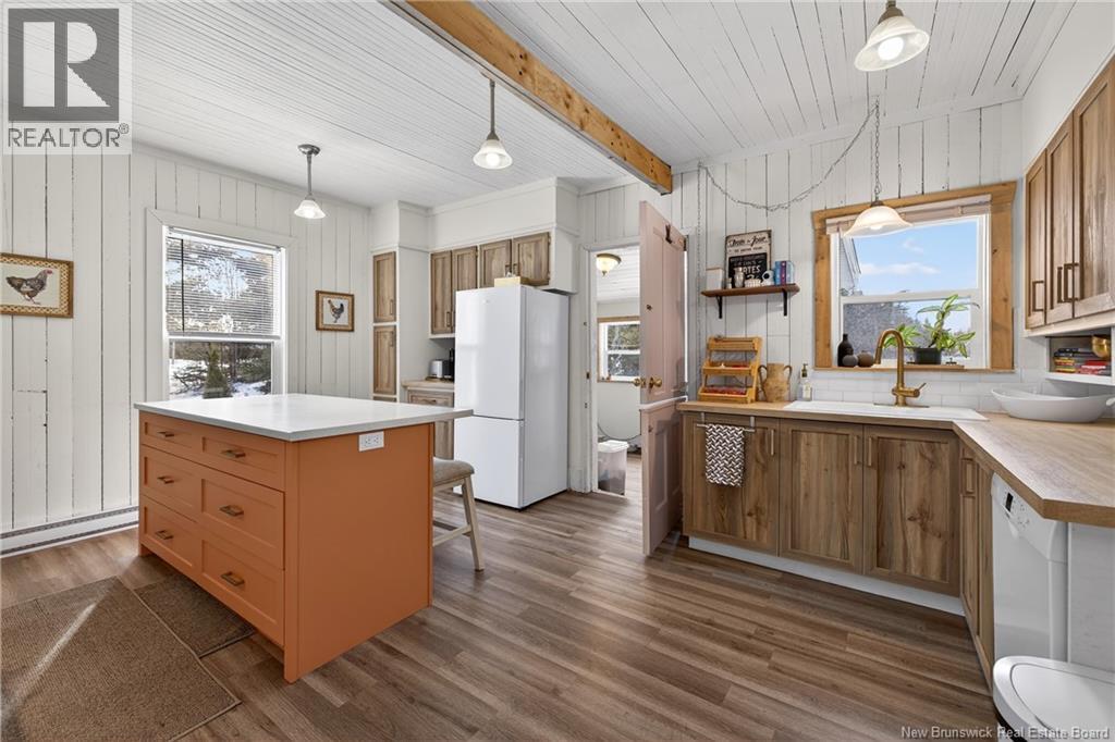 Offering a perfect balance between nature and urban living, this property boasts an exceptional 1.4-acre lot, a true haven of peace in the heart of Tracadie. Here, you forget you're in the city: gardening in the greenhouse, enjoying the sheds, children running around in the yard, and evenings roasting marshmallows around the fire in an atmosphere reminiscent of the countryside. And yet, everything is within walking distance: grocery stores, pharmacies, a shopping center, cafes, a movie theater, and restaurants, for a simple and active lifestyle. Inside, the house captivates with its character, charm, and character, carefully preserved during the renovations. The kitchen is warm and inviting, with a central island, coffee corner, and walk-in pantry, perfect for everyday meals as well as entertaining. The open-plan dining and living room concept becomes the heart of the home, an ideal space to spend quality time with family, entertain friends and gather around the wood stove on cold winter days, in a warm and inviting atmosphere. There are two full bathrooms, including the one on the second floor which is simply stunning, modern, and stylish. The property offers two very generously sized bedrooms, each accommodating a king-size bed, including a master bedroom with a walk-in closet. A front deck, perfect for enjoying the summer, completes this charming home where you'll instantly feel at home. (id:34572)