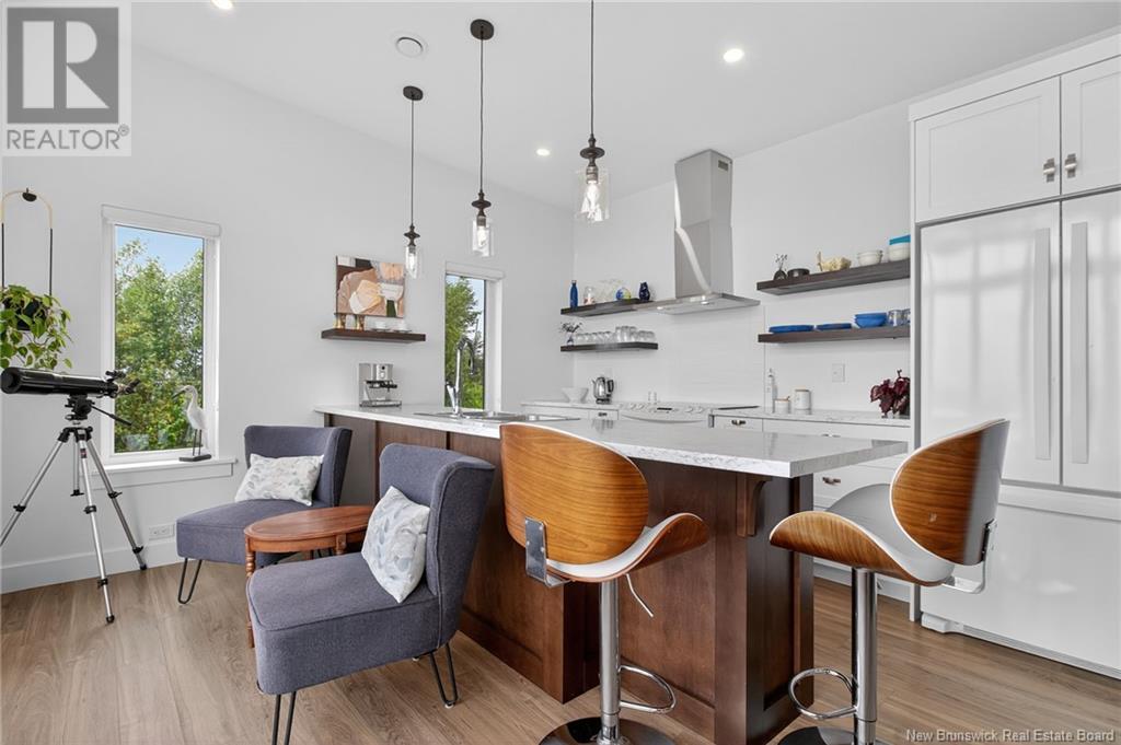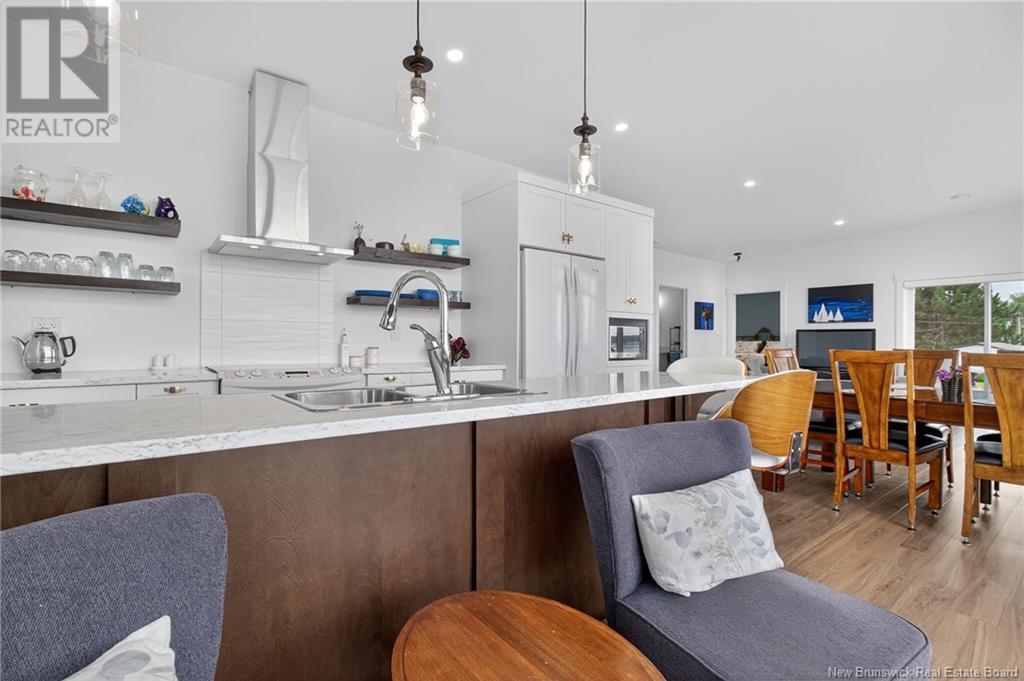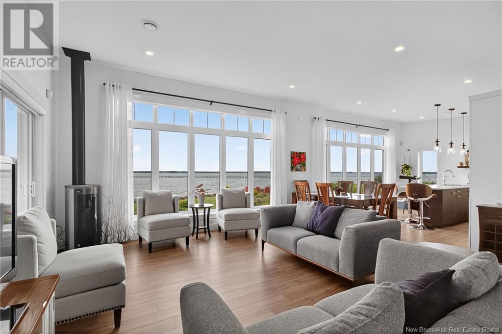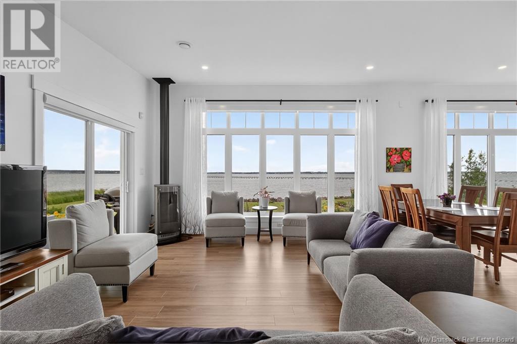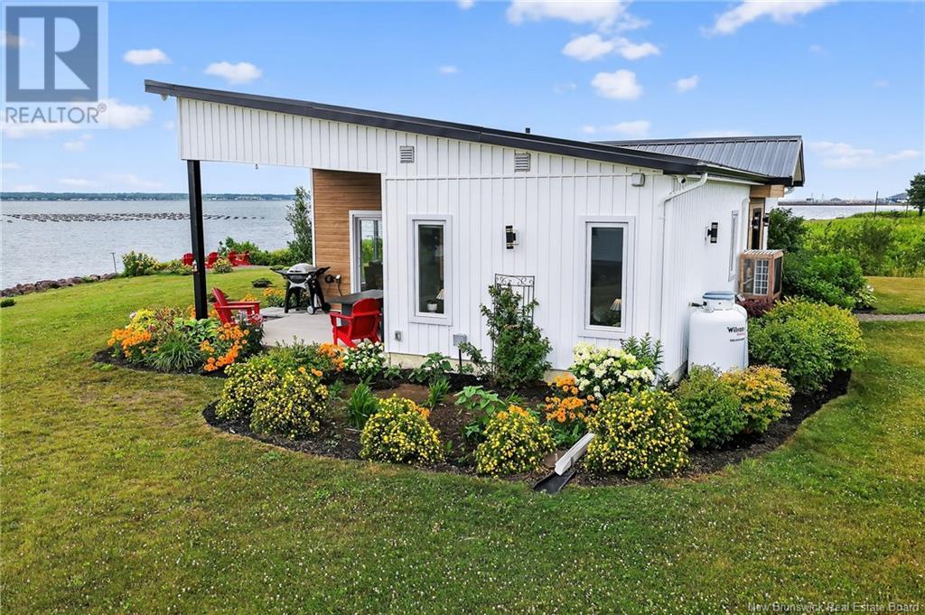 *Click on link for 3D virtual tour of this property*Welcome to this exceptional 2021 built waterfront home, set on 10 acres with stunning views of Cocagne & the water. Built for year-round living, the property offers both a private retreat & an exciting opportunity for future development, with the land fully subdividable.A metal roof & engineered rock wall enhance durability & curb appeal.The second access to the water opens the door to a true recreational lifestyle; perfect for kite surfing, paddle boarding, kayaking & boating.Inside,the open-concept living space is flooded with natural light through expansive windows framing the water views.The kitchen features ample cabinetry,a generous island oriented to capture the scenery & a layout that flows seamlessly into the living room.Here, the Paloma propane fireplace adds warmth & comfort,making it an inviting space year-round.2 spacious bedrooms & 4pc bath complete the main level.Comfort is assured with in-floor heating & a mini split for efficient climate control. A propane combi boiler heats water (on demand) and the floor. The property also includes underground wiring, an engineered septic system,exterior propane hook up on patio, 2 RV hookups with electrical,water & sewage connections offering plenty of space for guests or future expansion. Conveniently located minutes from local amenities,20 min. to Shediac & 30 minutes to Moncton,this unique property combines waterfront living, privacy & significant investment potential. (id:34572)