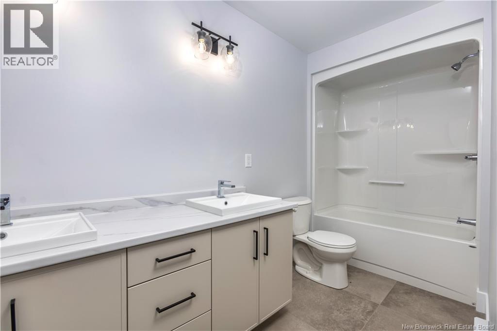NOW AVAILABLE! FIRST TIME HOME BUYER REBATE FOR NEW CONSTRUCTION! Welcome to Belfry in the popular Moncton North subdivision. This semi detached Banff model features sought after ADDITIONAL SIDE ENTRANCE. Modern layout design has many upgrades. The main floor features a beautiful kitchen with large island that is perfect for entertaining. Backsplash and chimney range hood included in kitchen for that modern touch. The dining room is open to the living room and offers patio doors to the back deck. The 2 pc half bath completes the main floor. The second floor features 3 bedrooms including a large Primary suite which has a walk-in closet and 5pc ensuite including double sinks. The 4pc family bath and separate convenient laundry room can also be found on the second floor. Basement is finished with family room with wet bar area, bedroom and 4 pc bath. SINGLE MINI SPLIT INCLUDED FOR YOUR COMFORT! PAVE AND LANDSCAPE DONE AS FAVOUR ONLY AND HOLD NO WARRANTY AND NO HOLD BACKS. 10 YEAR ATLANTIC HOME WARRANTY TO BUYER ON CLOSING. New Home rebate to Builder and NB Power grant to builder on closing. Purchase price is based on home being the primary residence of the Buyer.. Pictures are SAMPLE PHOTOS from a previous builds. .This home is currently under construction. (id:34572)