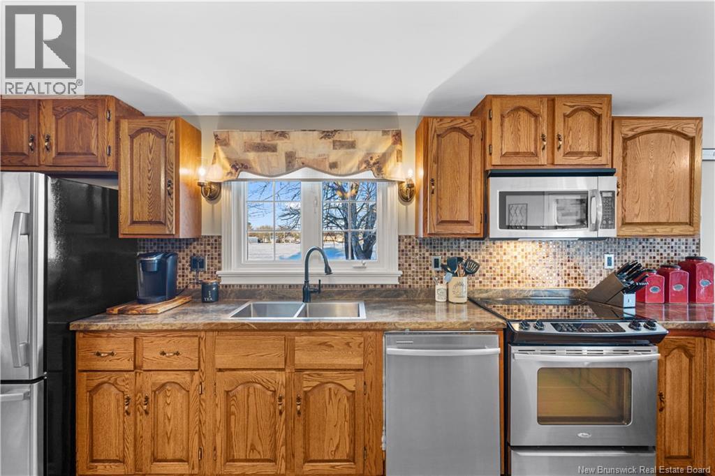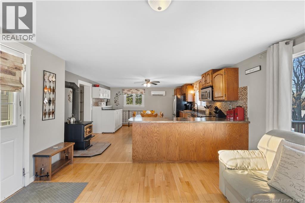Welcome to the former village of Loggieville, where sidewalks and streetlights invite evening strolls, and daily life includes beach fires, fishing, snowmobiling, and ATV adventures. Neighbors gather at the nearby community centre for local events, children enjoy the nearby playground, and the annual Loggieville Days continue as a cherished tradition. The main floor greets you with a bright sitting room, where large windows and patio doors open onto a wraparound deck, flooding the space with natural light. This area flows seamlessly into a well-appointed kitchen, featuring abundant counter space, a peninsula for casual dining, and a discreetly tucked-away washer and dryer, keeping the space clean and organized. A central hallway leads to a comfortable living room with a bay window and the main bathroom, creating a practical and thoughtfully designed layout. Upstairs, two spacious bedrooms are separated by a large cedar closet, offering both privacy and ample storage. A peaceful retreat for rest and relaxation. The lower level includes a finished rec room and a utility room, providing versatile space for hobbies, family time, or storage. Comfort is ensured year-round with multiple heating options, including a wood stove, mini-splits, electric baseboards, and an oil furnace. Additional highlights include a durable metal roof, wheelchair accessibility, a backyard gazebo, and a large storage shed for all of lifes extras. Plus, the business district is just a 5 km drive away! (id:34572)