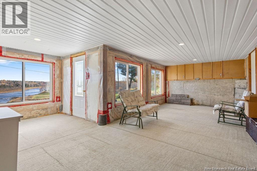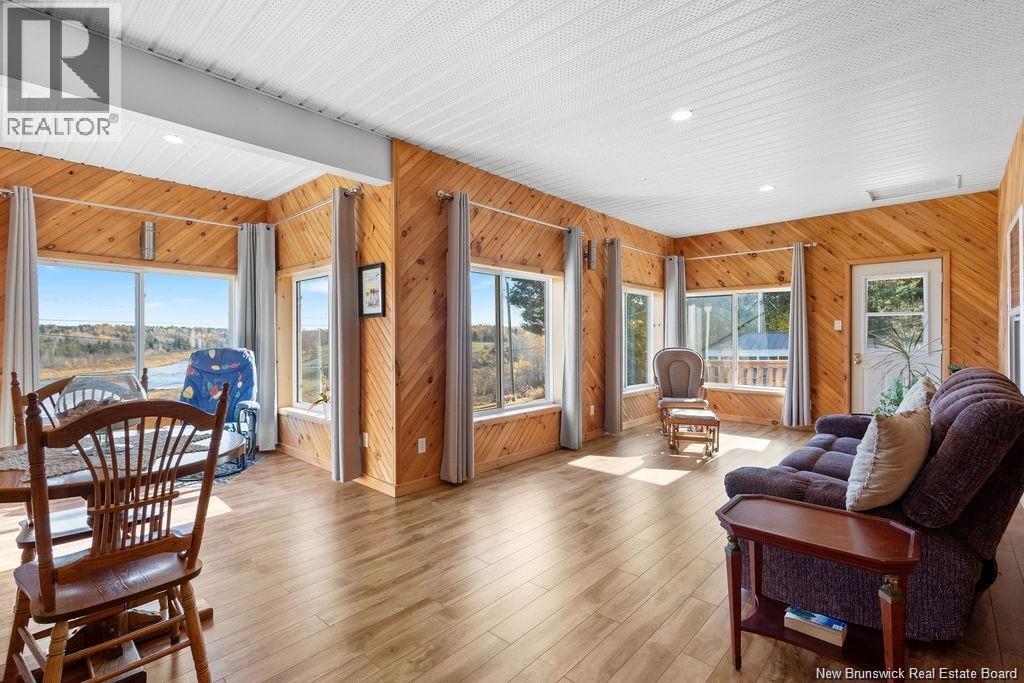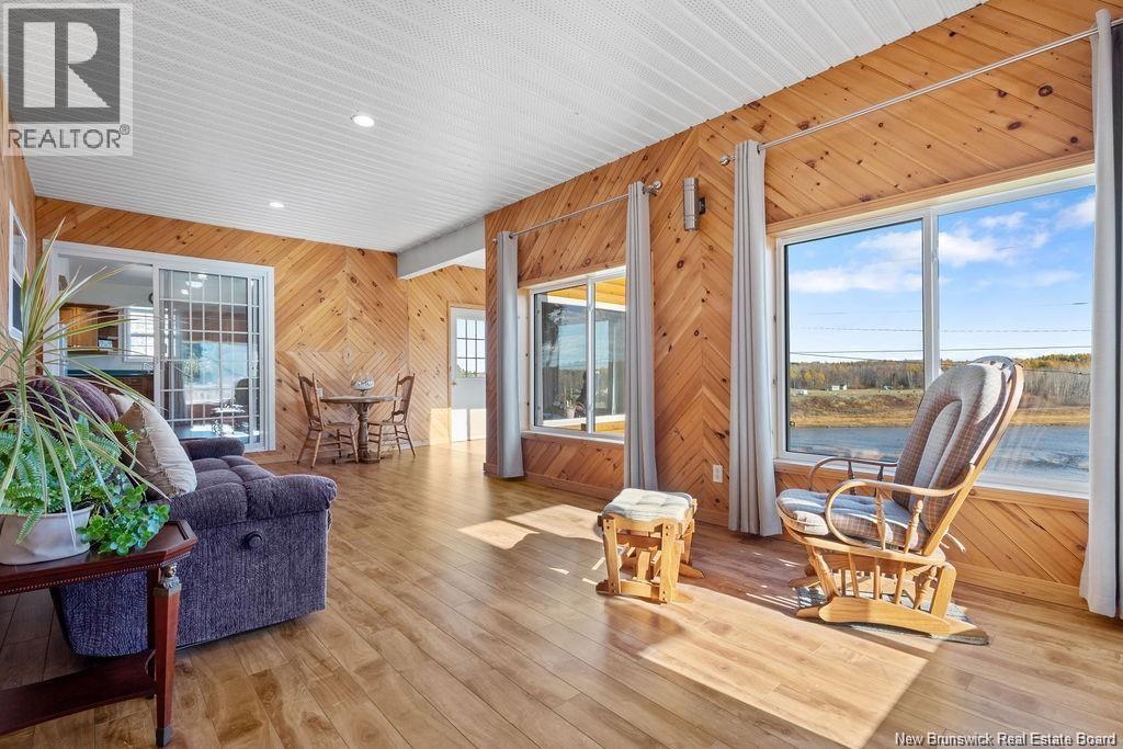 Welcome to your peaceful riverside retreat! This inviting 3-bedroom home sits on 2.7 acres overlooking the the Quarryville Pool, where the Renous River flows into the Main Southwest Miramichi River. Enjoy breathtaking water views, fishermen casting for salmon and bass, and the tranquility of nature right from your home. Upstairs features 2 spacious bedrooms and 2 full baths, including a primary suite with stand-up shower. The bright kitchen offers oak cabinetry, a center island with raised breakfast bar, and opens to a year-round sunroom filled with light and panoramic river views. The walkout basement includes a third bedroom(non-conforming egress window), cozy sitting area with propane stove, and an unfinished sunroom with the same spectacular views. A mini-split system and wood furnace provide efficient year-round comfort. Outside, enjoy a 24' x 28' double detached garage, 14' x 20' shed, and several outbuildings, including a former bunkhouse. The property is set up for 15+ RV sites with water, sewer, and electrical hookups offering great income potential. Located just 20 mins from Miramichi and 10 mins from Village of Blackville, youll have nearby amenities while enjoying country living. ATV and snowmobile trails are just over the hill, with world-class fishing at your doorstep. Whether for family living, a weekend retreat, or an income property, this riverside gem has it all space, comfort, and unbeatable views. Video was taken before listing for the client. (id:34572)