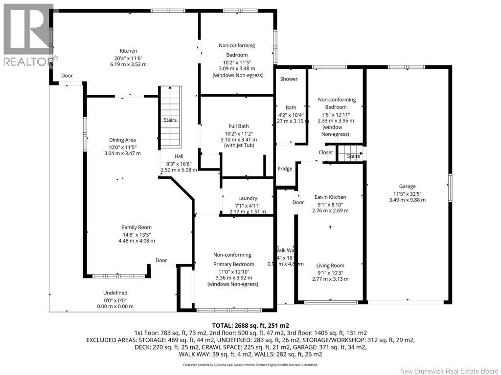 Available immediately! Home with a view and room for everyone. Located on a corner lot in Dalhousie with two driveways, this property offers a beautiful view of the Restigouche River & Mountains in the distance. The home features a private entrance to a self-contained living space renovated in 2025, not recognized as a legal unit (buyer to verify), currently set up as an in-law suite with kitchen/living area, bathroom with shower, ceiling-mounted heat pump, and a non-conforming bedroom (window non-egress). The main house offers one-level living with a renovated kitchen (approx. 2021) with built-in appliances and heat pump (approx. 2017), large family room, full bath with jet tub, laundry area, and two non-conforming bedrooms (windows non-egress). Lower levels includes office, additional room, storage, and ½ bath- all with low ceiling height. A few steps down is a rec room with high ceiling, extra room, crawl space, and door to 2 large unfinished storage areas with stairs to attached garage and exterior door to back deck. Roof shingles approx. 2009. NB Power rented hot water tank (2023). Inclusions: built-in appliances, 2 fridges, washer, dryer. Come see the potential and layout, Call your REALTOR® today! (id:34572)