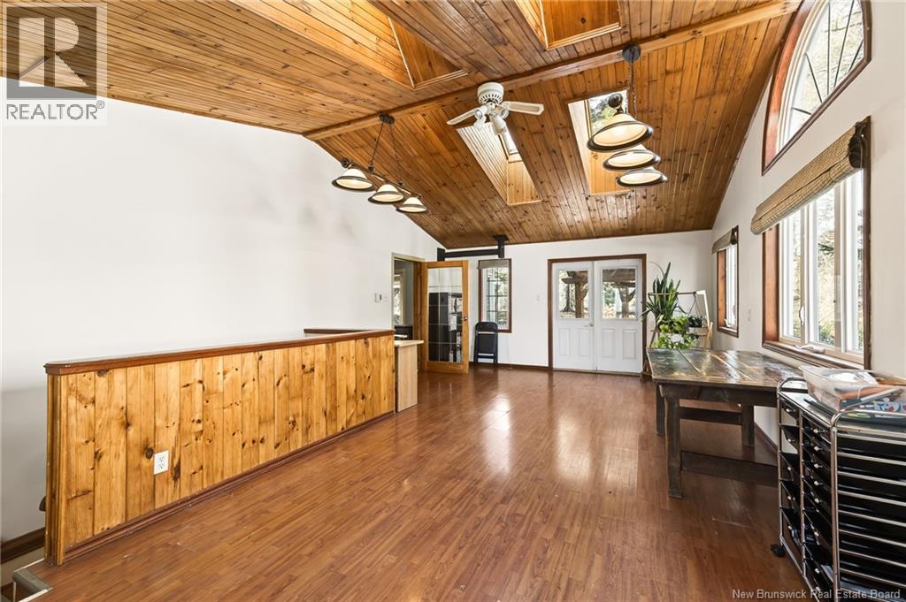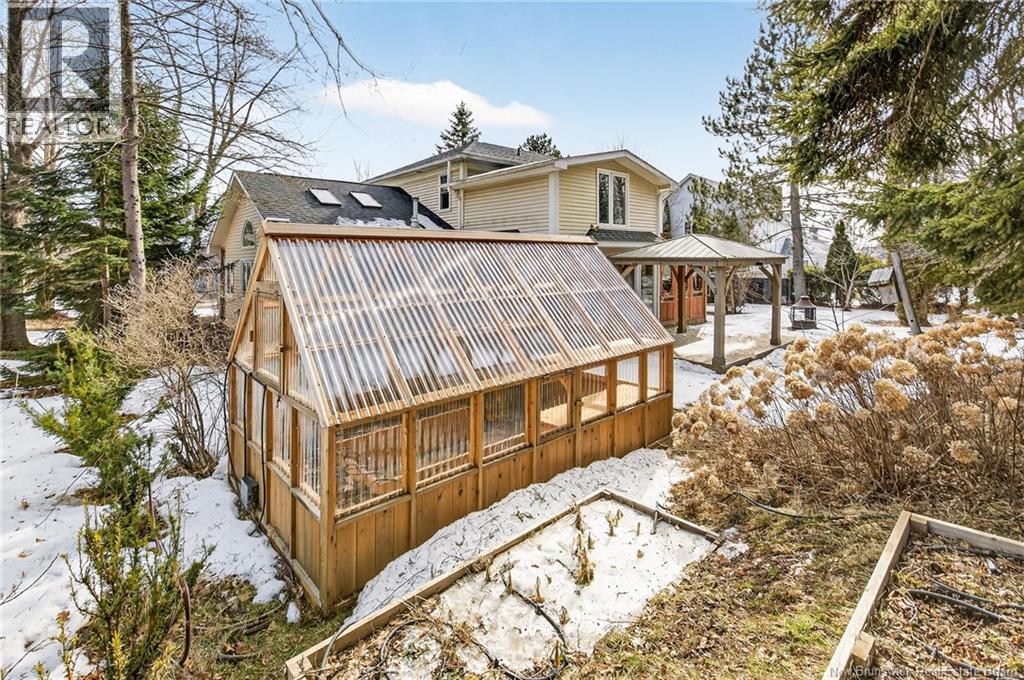 LARGE TWO STOREY HOME WITH ATTACHED GARAGE AND SEPARATE ENTRANCE FOR HOME BUSINESS IN DIEPPE! Located on a PRIVATE TREED LOT in Dieppe, this two storey home offers LOTS OF POTENTIAL and living space for your family. The main floor features front living room that flows into the formal dining room and well appointed kitchen. Off the kitchen, you will find spacious family room with pellet stove and sunroom which overlooks the PRIVATE BACKYARD with gazebo, pergola, greenhouse and sauna on the side deck. You have potential for a HOME BUSINESS with a separate entrance into the home with a large BRIGHT space highlighted by wood ceilings and skylights. Half bath completes this level. The upper level includes full family bathroom, primary bedroom with large sitting area and 4PC ENSUITE as well as three additional bedrooms. The lower level adds additional living space with games area, bedroom (non-conforming), storage area, mechanical room and partially finished area with second access to the main level. Extras include: THREE MINI SPLITS for your comfort and MUCH MORE. Call your REALTOR to view! (id:34572)