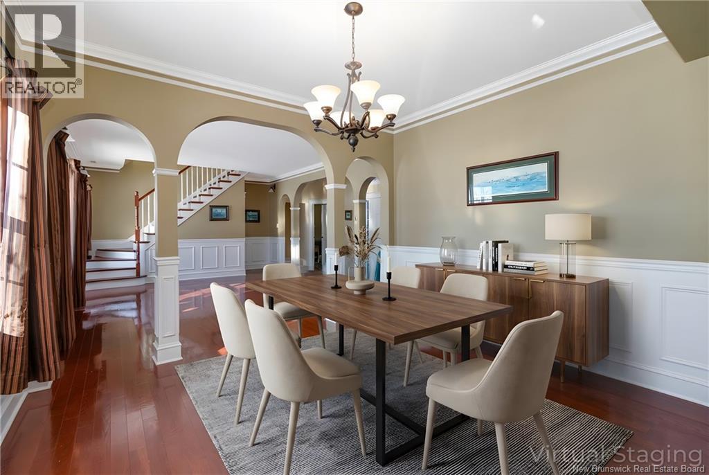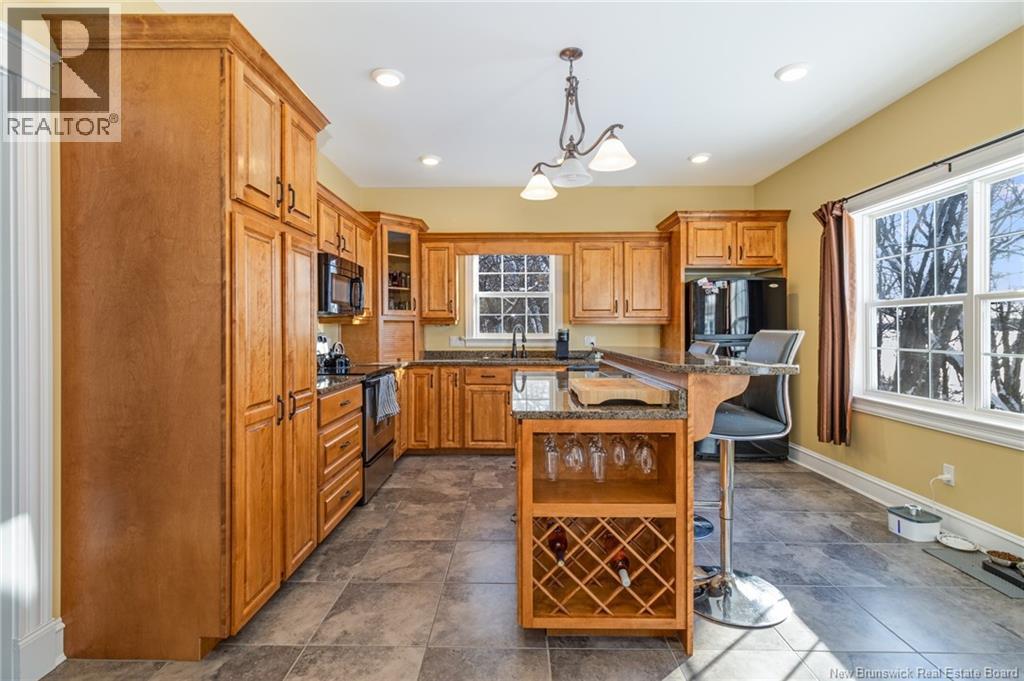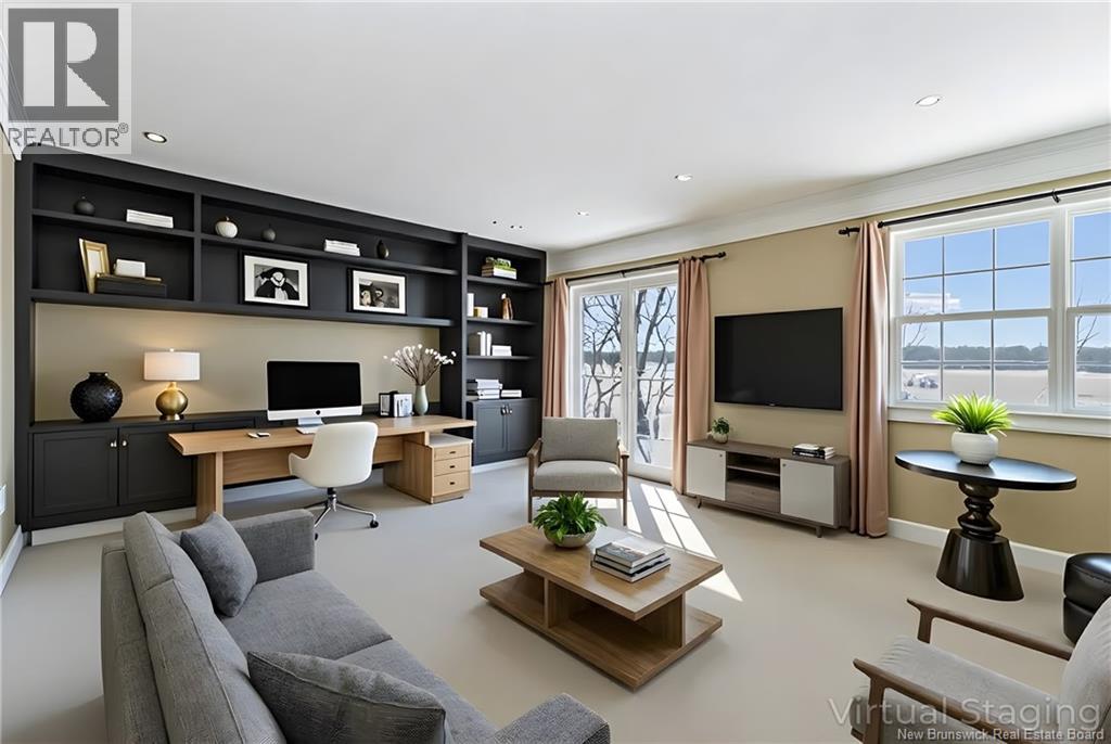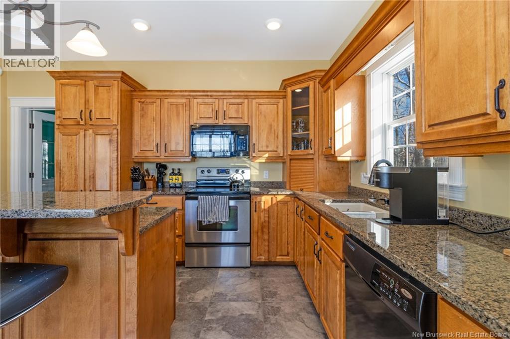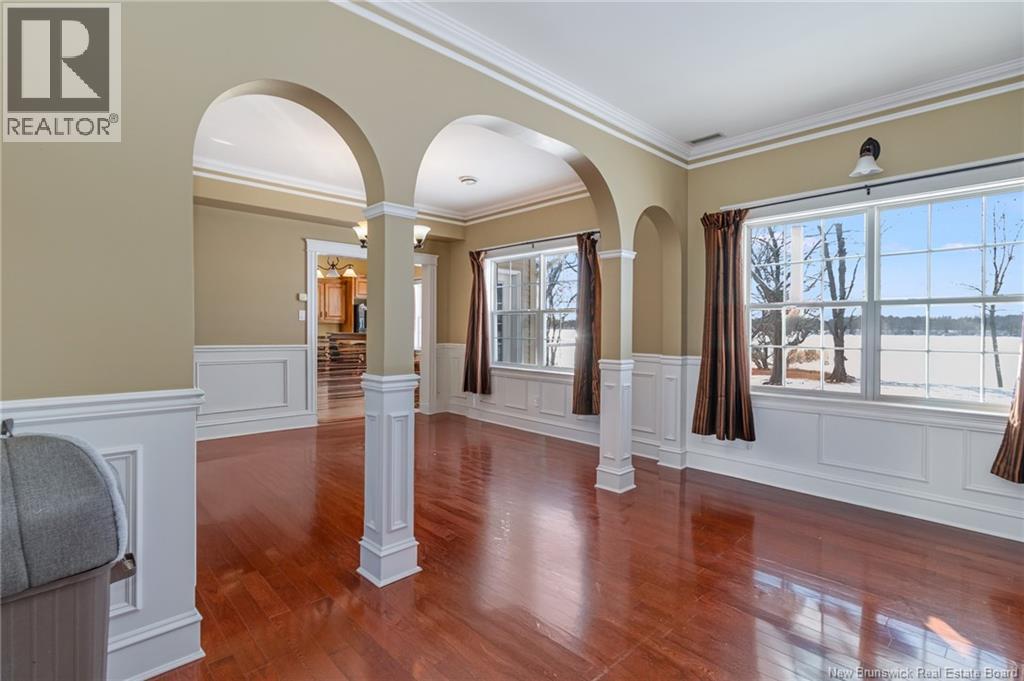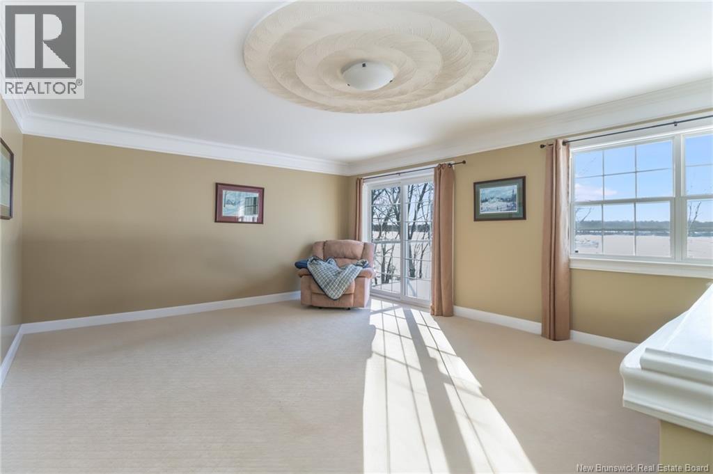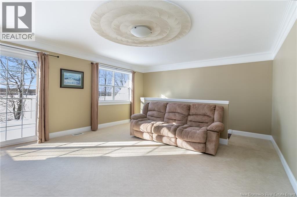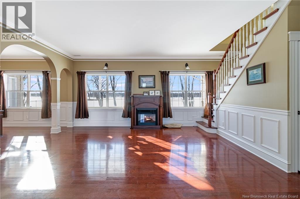 Welcome to an exceptional riverfront estate set along the Saint John River in the community of Maugerville. Offering approx 200 feet of water frontage and nestled on 3 acres. This one of a kind property blends luxury, privacy, and thoughtful design. Designed for both refined living and effortless entertaining, the home features 6 bedrooms and 3.5 bathrooms, including private live in nanny or in law quarters, ideal for extended family, guests, or staff. The main living spaces are warm and inviting, highlighted by a solid wood kitchen with solid surface countertops, where craftsmanship and function meet. In floor heating on the main level, paired with two heat pumps, ensures year round comfort in every season Designed for both everyday living and entertaining, the home includes a spectacular theatre room complete with a 9 x 5 screen and 10 powered theatre chairs, a true cinematic experience at home. A stunning loft with balcony provides breathtaking views overlooking the Saint John River perfect for morning coffee, or evening sunsets Additional highlights include two laundry hook-ups, underground power, and a brand new shingle roof, offering peace of mind and convenience. Whether youre enjoying tranquil river views, hosting guests, or relaxing this property delivers a rare lifestyle opportunity A remarkable riverfront home where luxury meets nature. Properties of this calibre are seldom available. Photos reflect virtual staging. PID to be subdivided at closing (id:34572)