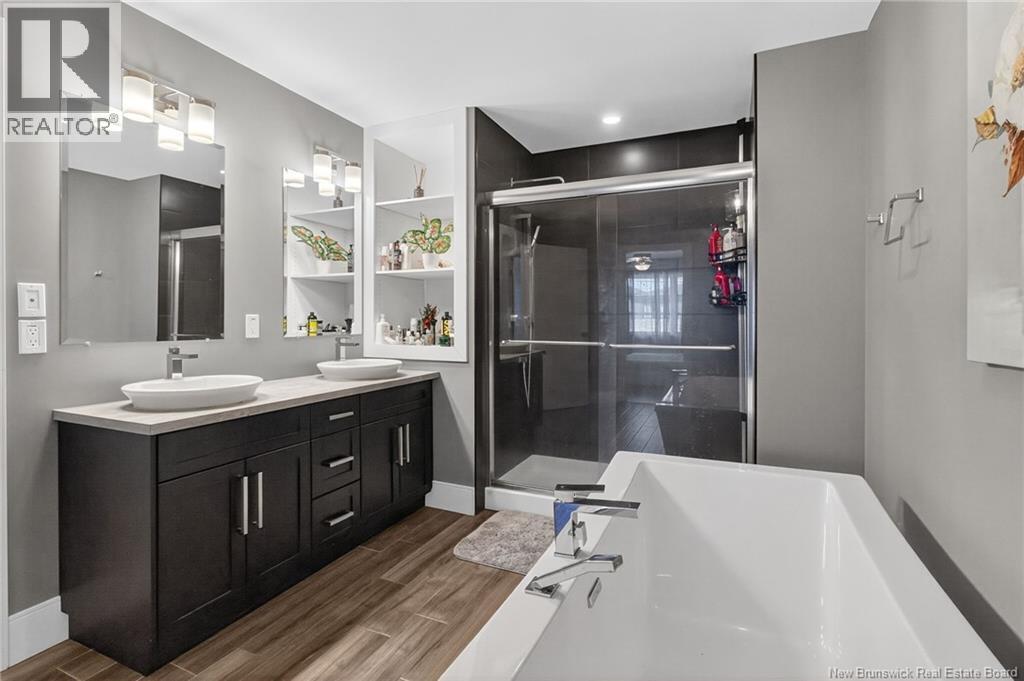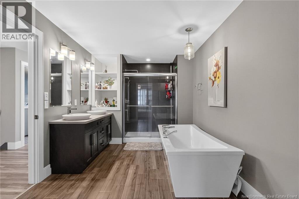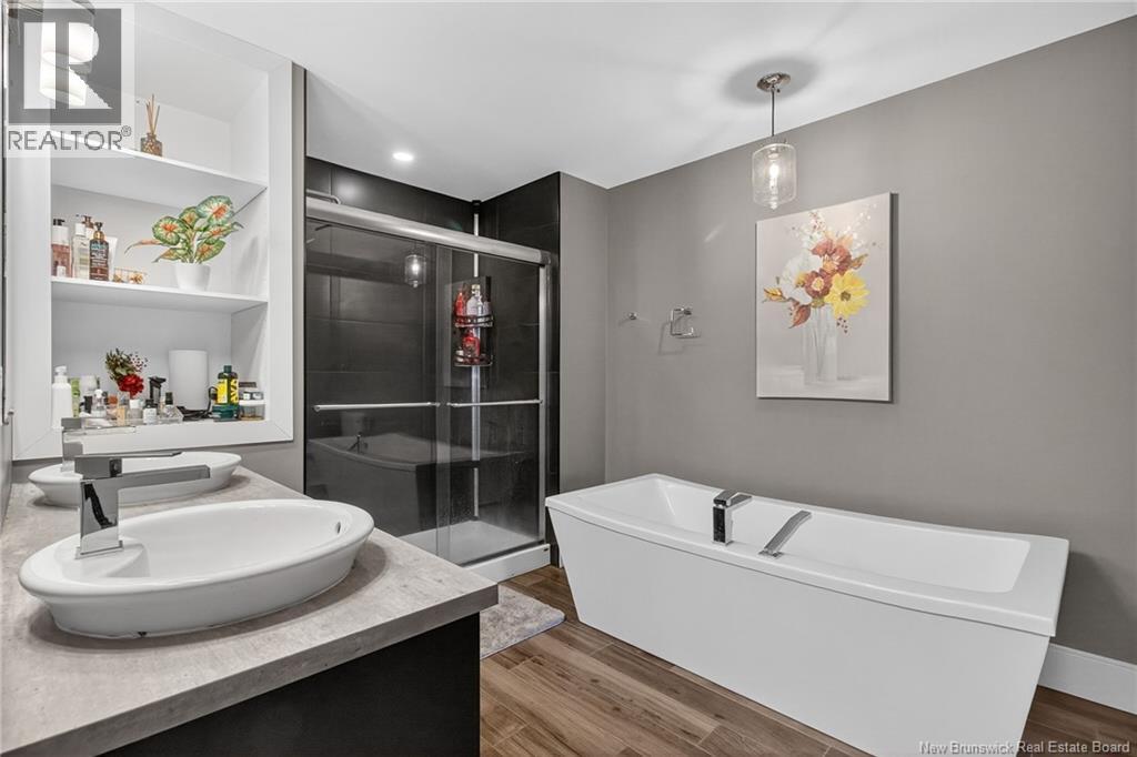 Modern Semi-Detached Home with Income Potential & Geothermal Heating. Welcome to this stunning modern semi-detached home that combines style, space, and smart living. Located in a desirable neighborhood, this beautifully maintained property offers exceptional features including a geothermal heat pump for energy-efficient comfort year-round. Step inside to a large foyer that leads into an inviting open-concept main level. The spacious family room with a cozy fireplace, dining area, and modern kitchen with sleek finishes and stainless steel appliances (fridge and stove purchased in 2023) create the perfect setting for both everyday living and entertaining. A convenient half bath completes the main floor. Upstairs, youll find three generously sized bedrooms, including a primary retreat. The spa-inspired bathroom features a stand-alone soaker tub, tiled walk-in shower, and double vanity, your own private oasis. A separate laundry room adds function and convenience. The finished basement offers a separate side entrance, opening up the possibility for an income-generating suite or in-law living. With a large bedroom, full bathroom, and spacious family room, this lower level provides flexibility and value. Outside, enjoy a fully fenced backyard, perfect for pets, children, or private outdoor living. The yard is lined with mature trees, offering privacy in a peaceful natural setting. This home is move-in ready and full of potential, ideal for families, professionals, or investors. (id:34572)