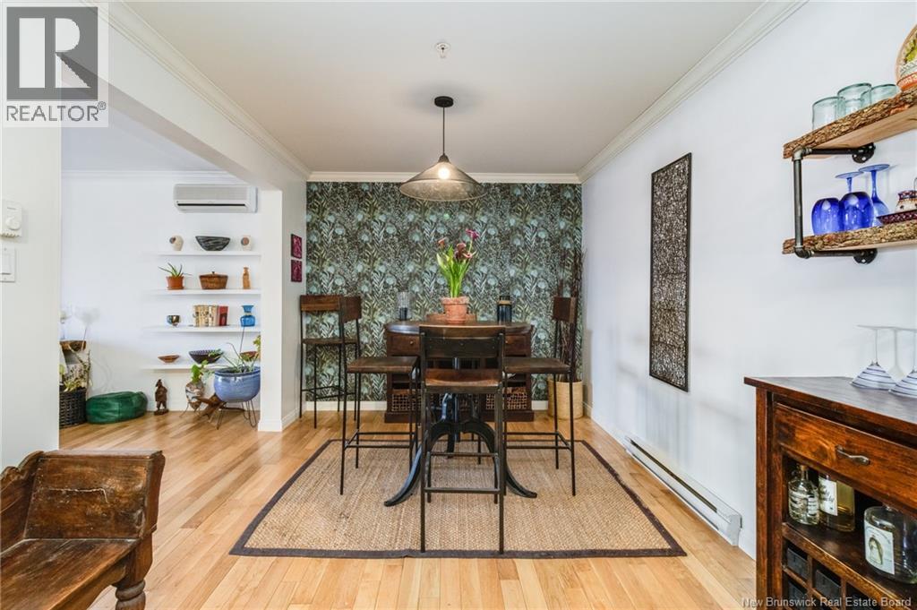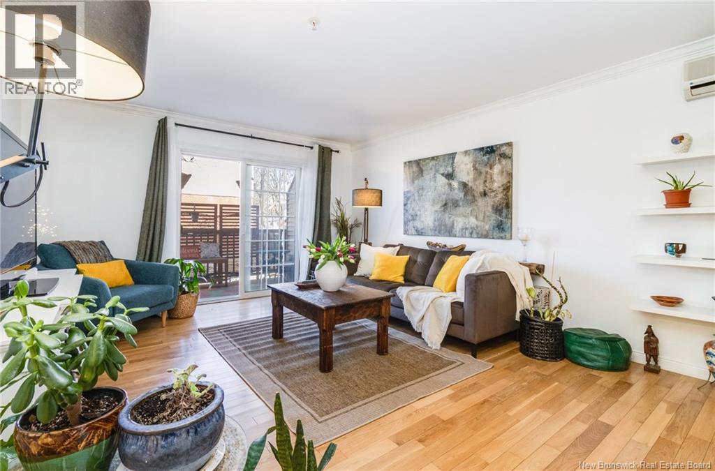 Enjoy the ease of true downtown living in this bright, well-maintained 2-bedroom condo, proudly cared for by the same owner for the past 15 years. The kitchen has been tastefully updated with new countertops and backsplash, while the bathroom has been refreshed with new tile plus an updated countertop & hardware. The open living and dining area is filled with natural light. The primary bedroom features an elegant tray ceiling and a spacious closet, while the second bedroom offers great flexibility as a guest room, office, or den. Step outside to a generous private outdoor space facing away from the road, perfect for quiet mornings or relaxing evenings. Located on the first floor, the unit offers convenient access to the building's gym and social room, along with underground parking, storage, and visitor parking. This well-managed building is known for its strong sense of community, with resident committees, recycling initiatives, and shared gardens featuring flower boxes and an herb garden in the summer months. All of downtown Fredericton is just steps away walk to the Boyce Farmers Market, restaurants, festivals, trails, and everyday amenities. (id:34572)