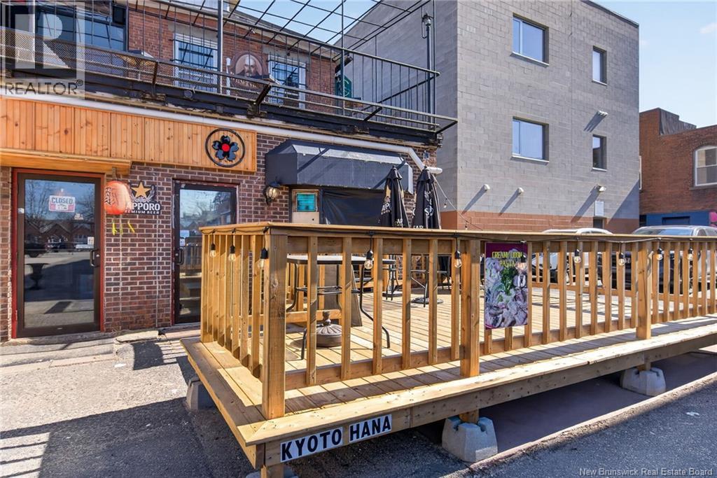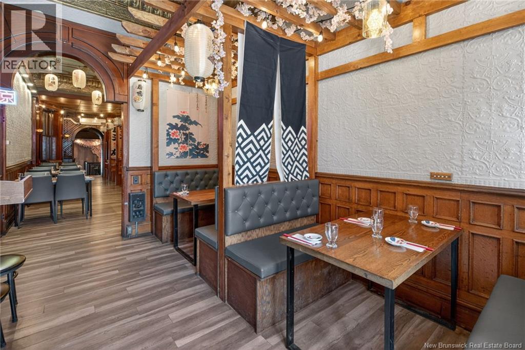 Business for Lease | Downtown Fredericton. Step into Kyoto Hana, a well-established and highly recognized Asian restaurant in the heart of downtown Fredericton. A rare opportunity to take over a proven location as the current owners prepare for retirement. Fully equipped commercial kitchen with ventilation, walk-in cooler/freezers, and ample prep and storage spaceready for immediate operation or your own concept. Features a 40-seat dining area with inviting ambiance, plus a rear patio ideal for capturing seasonal traffic, including crowds from the Harvest Jazz & Blues Festival. Multiple revenue streams already in place: dine-in, takeout, delivery, and catering. Prime location. Turnkey setup. High potential. Opportunities like this are rarecontact today for lease details. Showings by appointment only. UNEXPECTED VISITS WILL NOT BE WELCOMED. (id:34572)