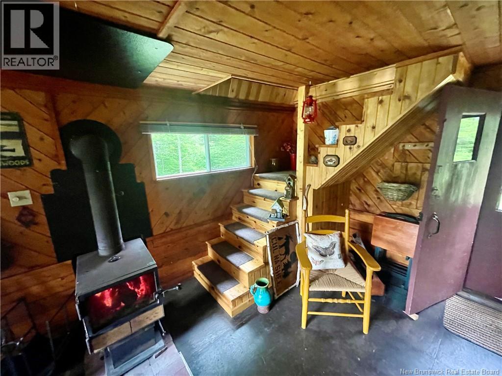 Looking for a private getaway that won't break the bank? This is it! Located on the Magagaudavic River, only 40 minutes from the City of Fredericton and 45 Minutes from the US Border! This 16x20 camp includes a wood stove, open concept kitchen, living room and dining area, large loft upstairs for sleeping accommodations, front deck and two storage barns. This won't last long!! (Land is Leased from the government) (id:34572)