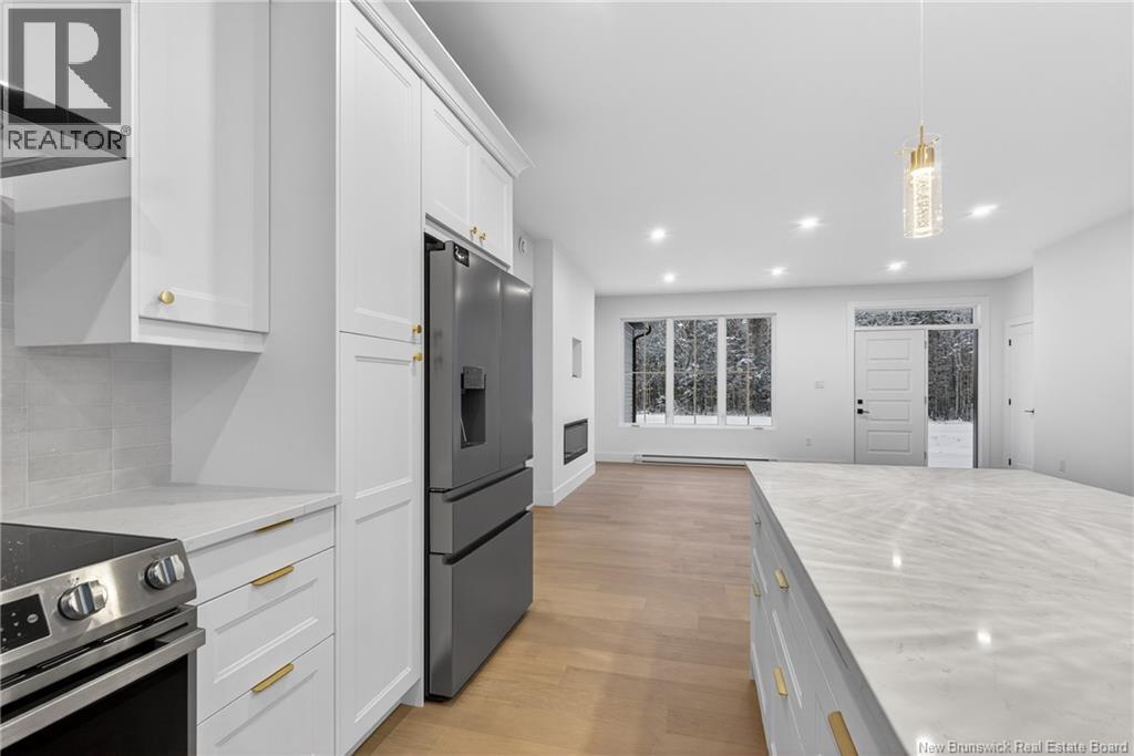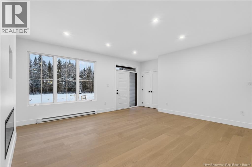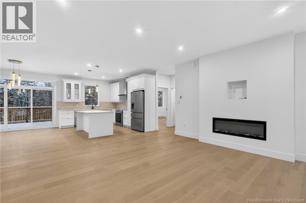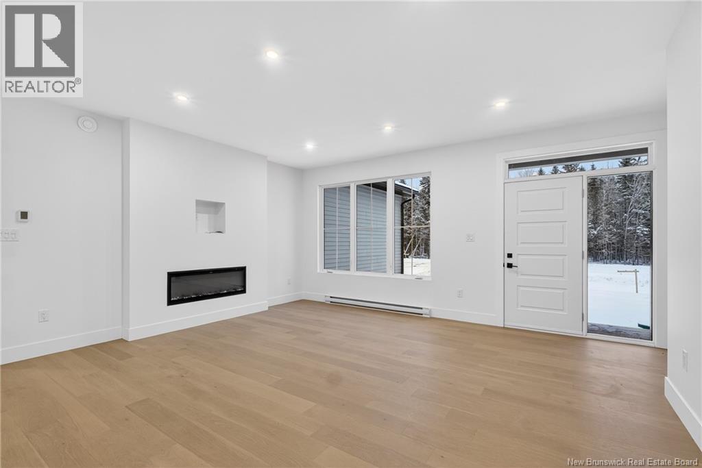 NOW MOVE IN READY!!! Executive Walk-Out Bungalow in White Birch Estates Just Minutes from Moncton & Riverview. completion: Jan 2026 Engineered hardwood floors, quartz kitchen countertops, tiled bathrooms, and a walk-out basement backing onto permanent greenspace, this executive bungalow combines luxury finishes with a serene natural setting. Enjoy direct access to ATV trails along with the convenience of a neighborhood childrens play park just steps away., All just 12 minutes from Moncton and 8 minutes from Riverview. Inside, the open-concept main living area features a floor to ceiling fireplace, a spacious kitchen and a 9-foot ceilings throughout the home. A walk-in pantry, laundry room, and mudroom add everyday convenience, while oversized windows bring in abundant natural light. The home offers 3 spacious bedrooms and 2 full bathrooms, including a luxurious ensuite with heated floors, a soaker tub, and a tiled shower. Every surface has been carefully selected, with engineered hardwood throughout, tile in both bathrooms, and quartz countertops and Porcelain vanity tops. The unfinished walk-out basement provides endless possibilities for future living space, with direct access to a private, wooded backyard and permanent greenspace. Comfort is ensured year-round with two mini-split heat pumps, and this property comes turn-key with ALL KITCHEN APPLIANCES, washer, and dryer included. Please note: Taxes currently reflect the vacant lot. (id:34572)
