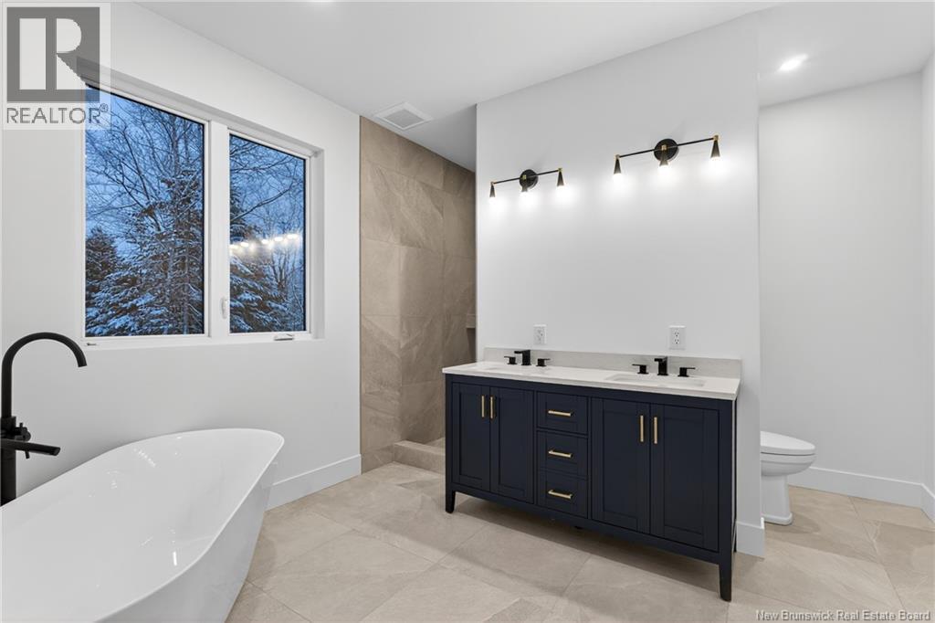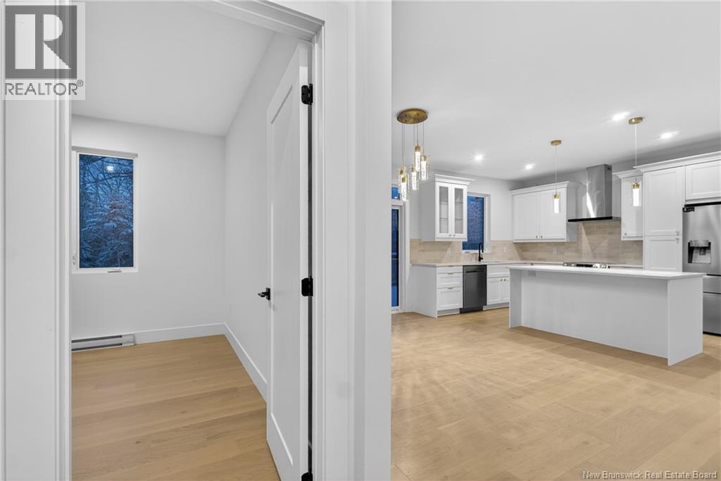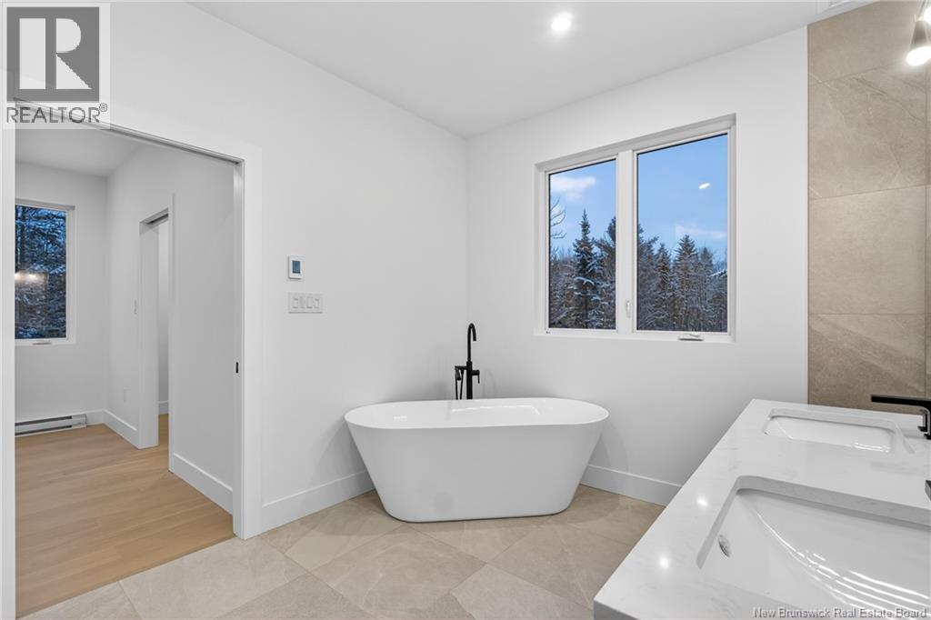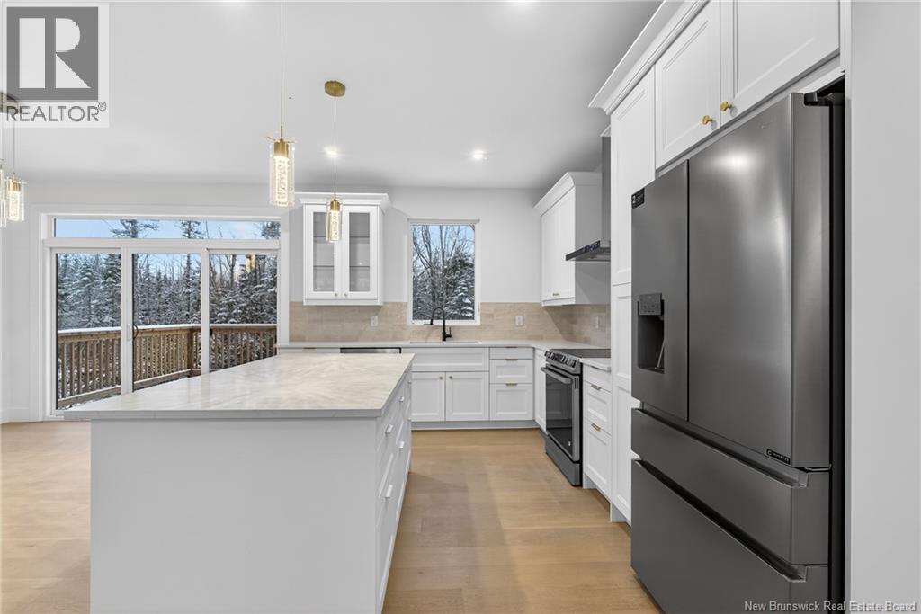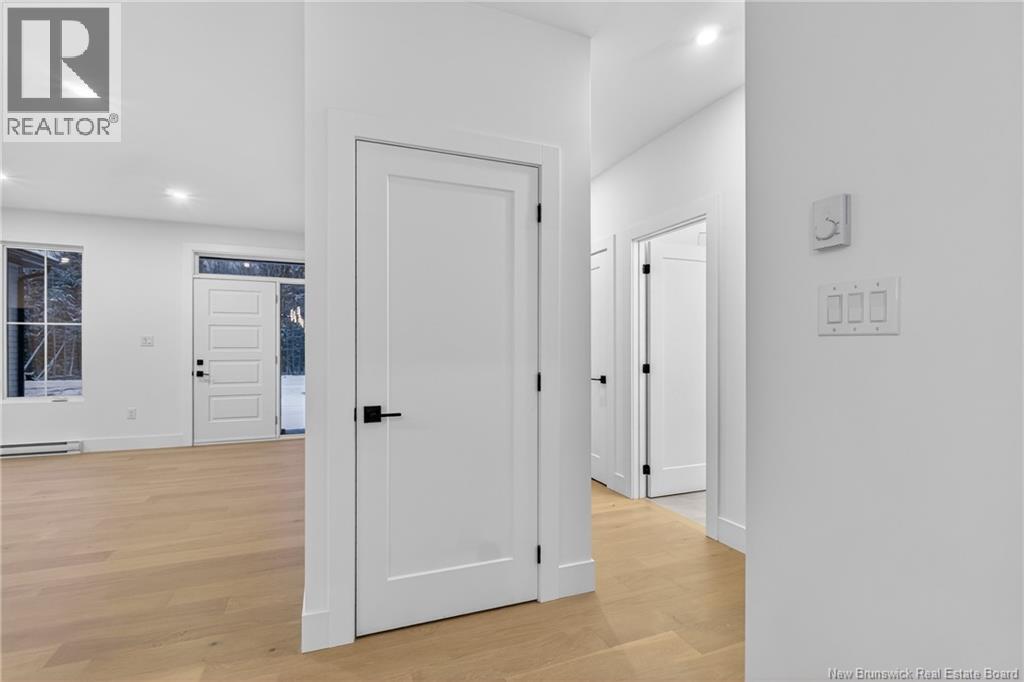 NOW MOVE IN READY!!! Executive Walk-Out Bungalow in White Birch Estates Just Minutes from Moncton & Riverview. completion: Jan 2026 Engineered hardwood floors, quartz kitchen countertops, tiled bathrooms, and a walk-out basement backing onto permanent greenspace, this executive bungalow combines luxury finishes with a serene natural setting. Enjoy direct access to ATV trails along with the convenience of a neighborhood childrens play park just steps away., All just 12 minutes from Moncton and 8 minutes from Riverview. Inside, the open-concept main living area features a floor to ceiling fireplace, a spacious kitchen and a 9-foot ceilings throughout the home. A walk-in pantry, laundry room, and mudroom add everyday convenience, while oversized windows bring in abundant natural light. The home offers 3 spacious bedrooms and 2 full bathrooms, including a luxurious ensuite with heated floors, a soaker tub, and a tiled shower. Every surface has been carefully selected, with engineered hardwood throughout, tile in both bathrooms, and quartz countertops and Porcelain vanity tops. The unfinished walk-out basement provides endless possibilities for future living space, with direct access to a private, wooded backyard and permanent greenspace. Comfort is ensured year-round with two mini-split heat pumps, and this property comes turn-key with ALL KITCHEN APPLIANCES, washer, and dryer included. Please note: Taxes currently reflect the vacant lot. (id:34572)