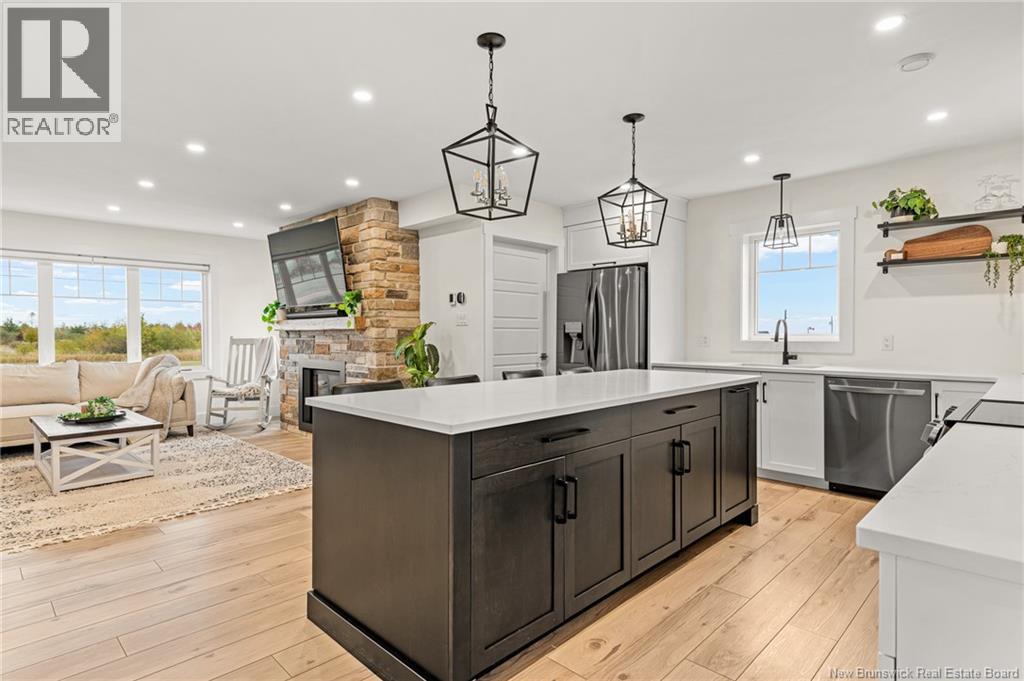 NEW YEAR, NEW HOME - MOVE-IN-READY!! 2021 BUILT / CENTRAL AIR / CUSTOM STONE WORK AND FINISHES THROUGHOUT!! This stunning 2-storey home sits on 1.5 acres in the beautiful coastal community of Grande-Digue. Newly built in 2021, this spacious and light-filled home offers the perfect blend of comfort, functionality, and style. Step inside to an open-concept main floor thats made for gathering! The heart of the home is a stunning kitchen featuring an extra large island, sleek quartz countertop, a custom brick backsplash and walk in pantry. The dining room ties perfectly into the kitchen with a matching accent brick wall, and plenty of space to host dinner parties. The cozy living room centers around a beautiful stone propane fireplace. Also on the main level you will find half bath, and access to a covered deck off the dining area. Upstairs, youll find three generous bedrooms, a beautifully finished full bathroom, a custom laundry room that is both practical and stylish, complete with a countertop, backsplash, storage and hanging space. The laundry room connects directly to the spacious walk-in closet that also leads into the primary bedroom with its own 4 piece ensuite! A thoughtful layout that makes everyday living effortless. Finally, enjoy a double attached garage, a custom stone pad and fireplace in the backyard. Basement is unfinished with an extra 770 sqf of space already drywalled and has a rough-in for a 4th bathroom. Electrical panel is already wired for a generator. (id:34572)