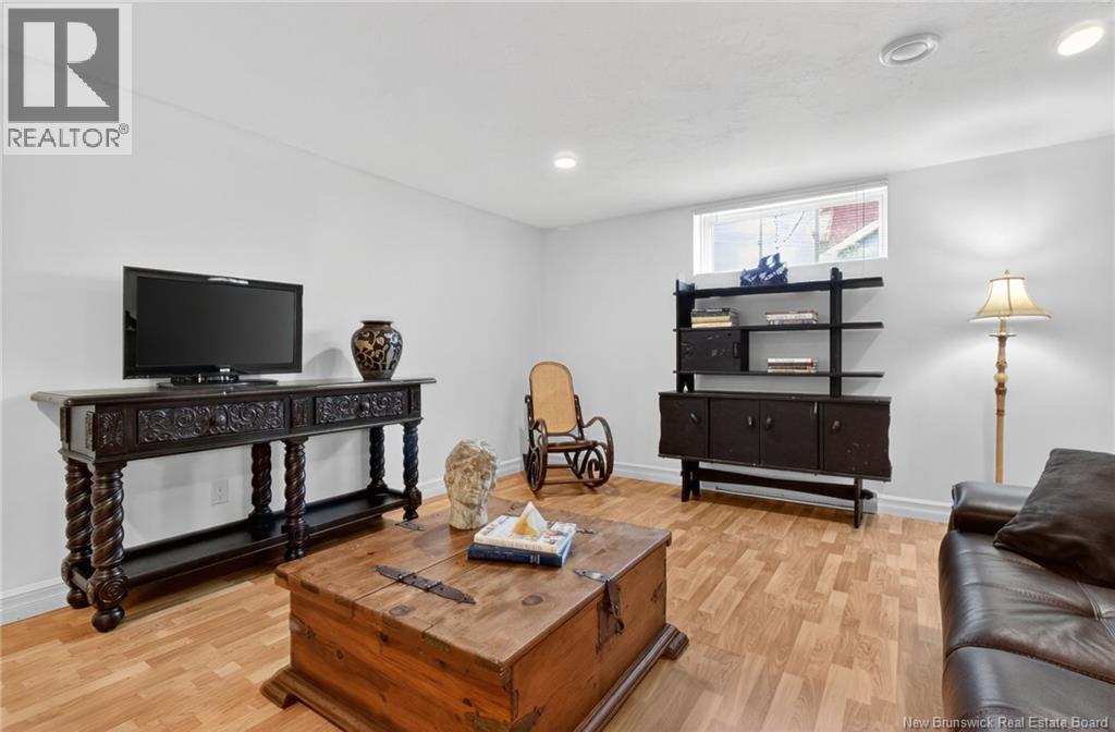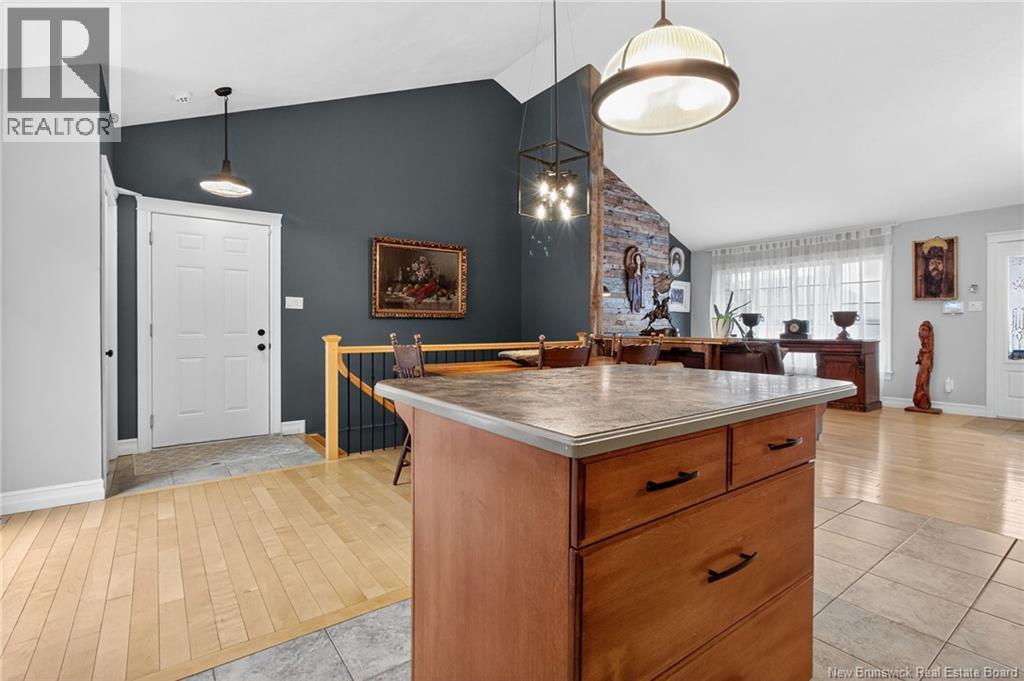 This beautifully designed bungalow-style home in a highly sought-after Dieppe neighbourhood offers a sense of grandeur the moment you step inside. The main living area is enhanced by soaring cathedral ceilings, warm hardwood floors throughout, and a stunning mantel with natural board details framing the electric fireplace, creating a striking yet inviting focal point. The bright, open-concept living, dining, and large kitchen areas flow seamlessly together, perfect for everyday living and entertaining. The kitchen is ideal for anyone who loves to cook. Patio doors open to a large deck and a beautifully landscaped backyard, offering privacy, space for family gatherings, room for a garden, and an existing shed. The main floor features a spacious primary bedroom with an ensuite and large closet, plus two additional good-sized bedrooms, one currently used as an office. The main bathroom includes a double vanity, corner shower, and relaxing jet tub. The fully finished lower level offers a large family room, a separate area used as a bedroom, an open space for a rec room or customization, and a storage/mechanical room. A full bathroom with laundry and ample storage completes this level. The home boasts a striking stone and vinyl exterior, a large double attached garage, and a driveway for four cars. With a newer ducted heat pump and nothing to do but move in, this home blends style, comfort, and privacy in a truly exceptional setting. (id:34572)