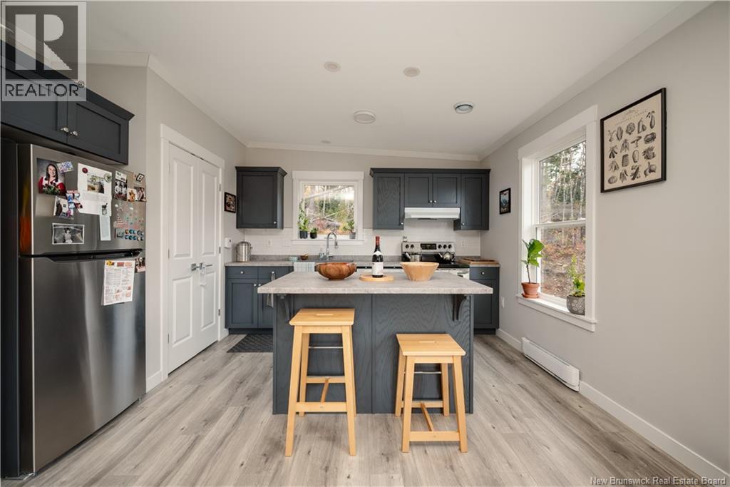Welcome to 39 Chignecto Dr, this newly built well kept bungalow is ready for new owners. Tucked away on a side hill in the village of Alma on a private treed lot with a view of the ocean. The main level features 2 bedrooms with the primary having its own 4 piece ensuite and a walk in closet, a 4 piece bathroom and an open concept kitchen, living room and dining room. This home is modern & clean with large windows for natural sun light. Property is efficient and heated by baseboard electric, wood stove and mini split. Painted with neutral inviting colors, stainless steel appliances & dark cabinets in the kitchen with a large pantry. The basement has a utility room along with extra living space to be finished to your liking. Outside there is a baby barn for storage and tons of space if you wish to build a garage or gardening. Imagine sitting on your deck smelling the ocean air while enjoying the privacy of the rural lifestyle. Contact your REALTOR® today to book a showing. (id:34572)