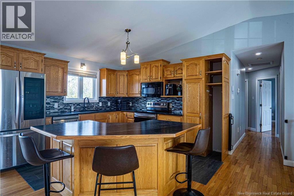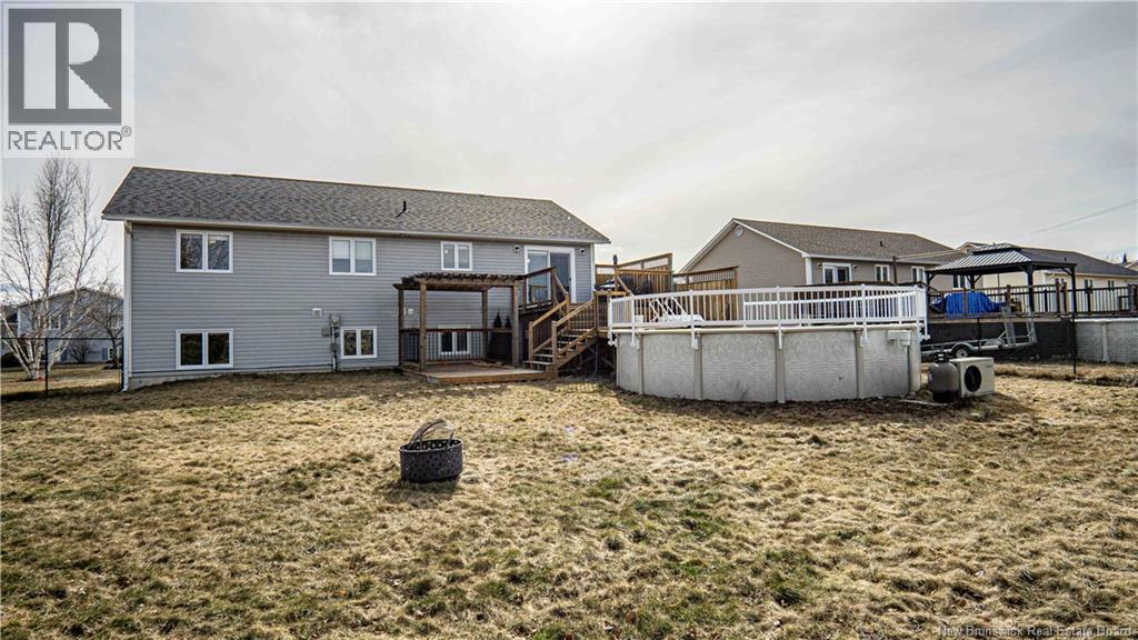 Welcome to Oromocto West a spacious family home offering approximately 2,200 sq ft of comfortable living space with room for everyone inside and out. With 5 bedrooms, 2 full bathrooms, and multiple living areas, there is plenty of space here for growing families or anyone seeking flexible living. The bright main level features an inviting living area with an energy-efficient heat pump for heating and cooling, along with three well-sized bedrooms and a functional kitchen designed for everyday living. Complete with modern appliances, a pantry for extra storage, and a center island with breakfast bar seating, its the perfect spot for casual meals, morning coffee, or gathering with family and friends. The lower level expands the living space with two additional bedrooms, a second full bathroom, a dedicated laundry room, and a versatile family room with its own heat pump ideal for movie nights, guests, or a home office. Step outside and picture summer days in the fully fenced backyard featuring a heated above-ground pool and an impressive three-level deck with pergola perfect for relaxing evenings or hosting family and friends. A deep single-car garage provides excellent space for parking, storage, or a workshop. Located close to schools, parks, walking trails, and local amenities, this Oromocto West home offers the space, comfort, and neighbourhood families love. (id:34572)