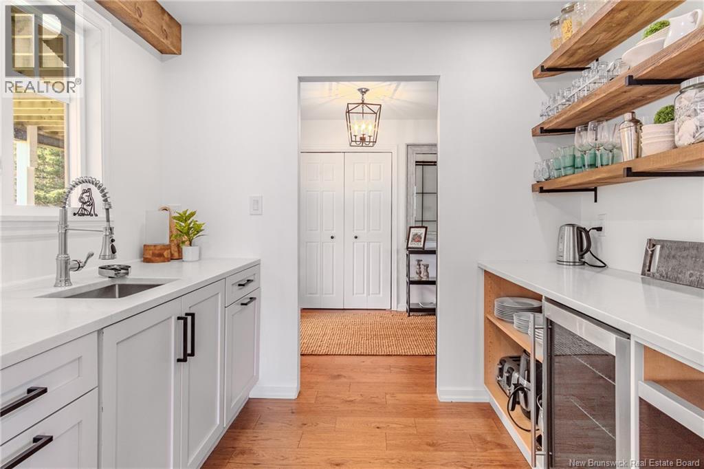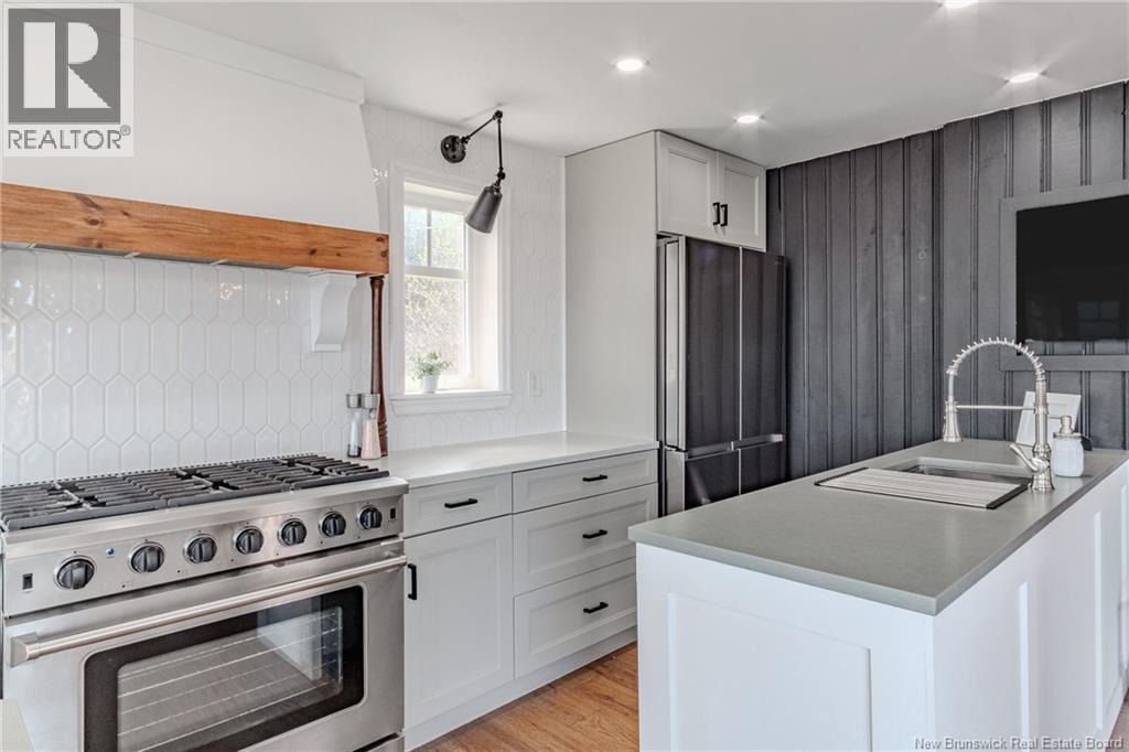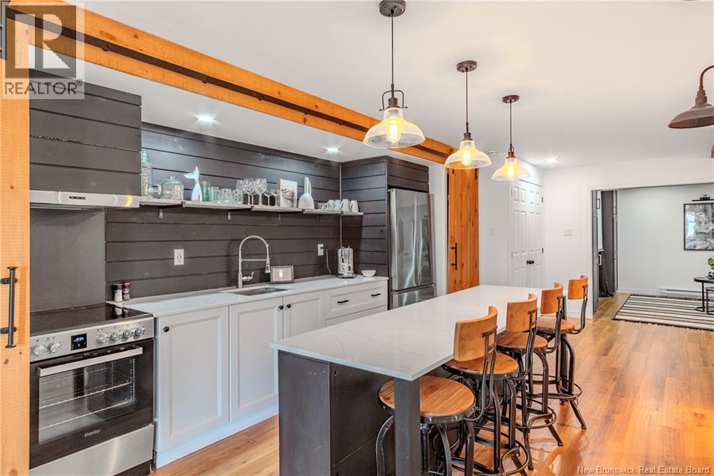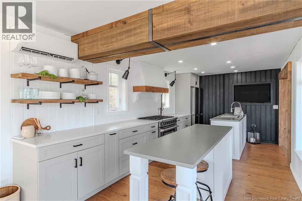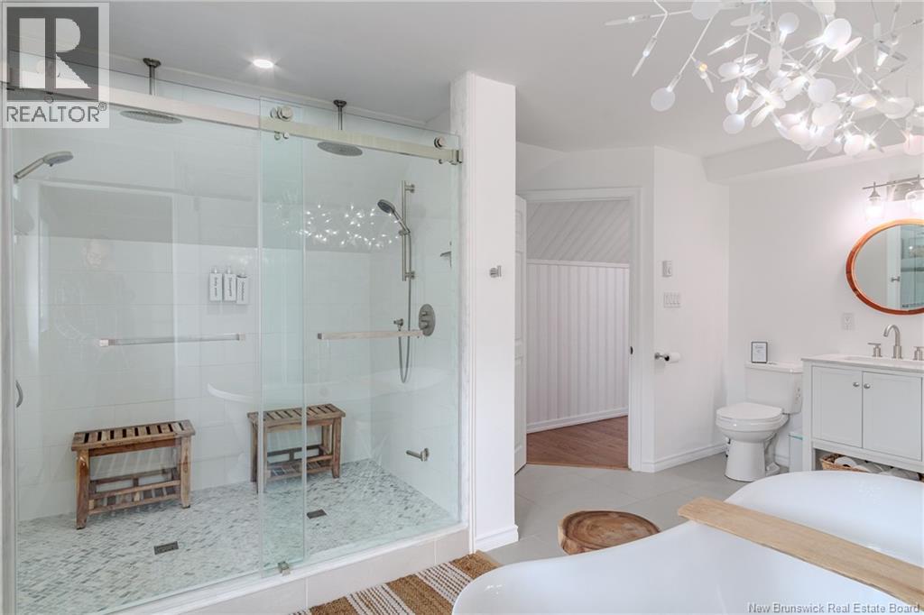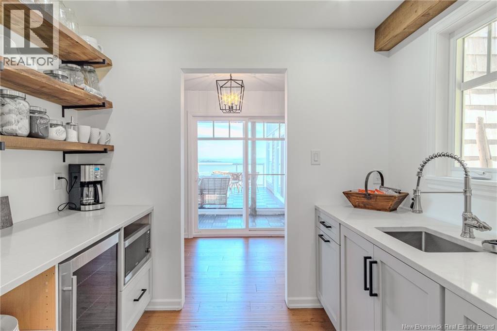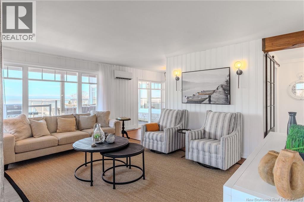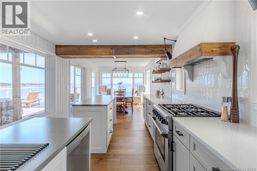 Welcome to an elevated coastal escape just 15 minutes from the city, where refined design meets the beauty of the Bay of Fundy. This impeccably renovated oceanfront residence offers over 200 feet of private shoreline and uninterrupted panoramic views, creating a setting that feels completely private and hard to replicate. The main level features a seamless open concept layout anchored by a stunning custom kitchen with quartz countertops, a 36 inch propane range, and beautifully crafted wood cabinetry, complemented by a spacious butlers pantry. The dining area and warm, refined living space with a woodstove insert are perfectly positioned to take in the ever changing ocean views. Two well appointed bedrooms and a full bath complete this level. Upstairs, the primary suite is a true retreat, offering a private balcony overlooking the water, a spa inspired ensuite, and a large walk in closet. The walkout lower level is designed for both relaxation and entertaining, featuring a home theatre, a fully equipped one bedroom guest or in law suite with kitchenette, an additional full bathroom, and a private enclosed hot tub room. Outdoors, the landscaped grounds lead to your own beach access, while the oversized detached garage offers excellent space for vehicles, storage, or a workshop. Thoughtfully curated with high end finishes and energy efficient systems throughout, 396 Point Road is a rare oceanfront offering in a truly special setting. (id:34572)