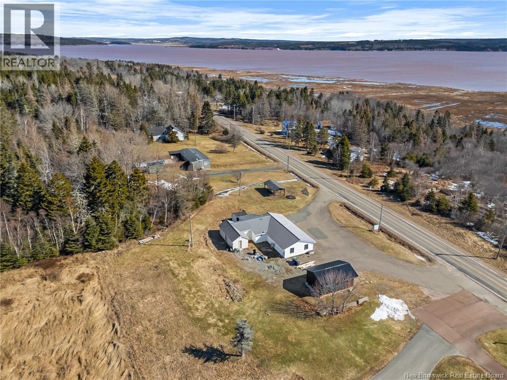 Wake up to breathtaking water views overlooking the Bay of Fundy, just minutes from the world-renowned Hopewell Rocks. The property is a prime spot for your home or even a potential rental opportunity. The cozy home features a bright open concept living room, dining room, a small reading nook and two well sized bedrooms. A large laundry room, a 4pc bathroom and an office/pantry leads to your bright kitchen with stainless steel appliances and lots of cooking space. Main floor is complete with two large storage areas and a workshop. The home has been freshly painted, added new lighting -pot lights in living room and kitchen, new appliances, laundry room added, new flooring (march 2025), metal roof (2021), new doors and windows (2023). There is also a new potential bunk house for family members to stay that has a one bedroom, living area with mini split. It is waiting for your final touches to be added. Outside, enjoy plenty of parking, a spacious backyard with room to garden, and a beautiful pergola, perfect for gathering with friends and family while soaking in the stunning surroundings. Dont miss out on this rare opportunity in a highly desirable location! (id:34572)