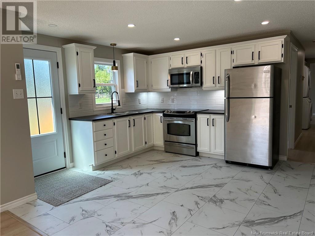Year round seaside living in the Coastal area of Cocagne. Located in Florina Beach with deeded beach access is this fully renovated 2 bedroom minihome! Drive up into the double drive and notice the beautiful Blue spruce and willow tree in the front yard offering a welcoming summer shade area. The minihome presents you with a new spacious front verandah, oversized (private) side patio and a baby barn plus shed to hide all your toys. Inside is bright, spacious and clean. Updated kitchen with stainless appliances, Microwave range, glass subway backsplash tiles, undermount light and all new fixtures. Potlights add to the clean lines and ambiance. The open concept into the livingroom allows the natural light to flow from the patio doors throughout and greets the inside entertainment to easily continue outside on the patio. Down the hall is a bedroom, spacious bath with room to add a laundry hamper, added storage or whatever meets your needs, a stackable washer and dryer, back door exit and spacious primary bedroom area with double closet nicely hidden hot water tank access and electric panel access. Home is move in ready, quick closing available and awaiting you to just unpack and walk yourself down to the beach (id:34572)