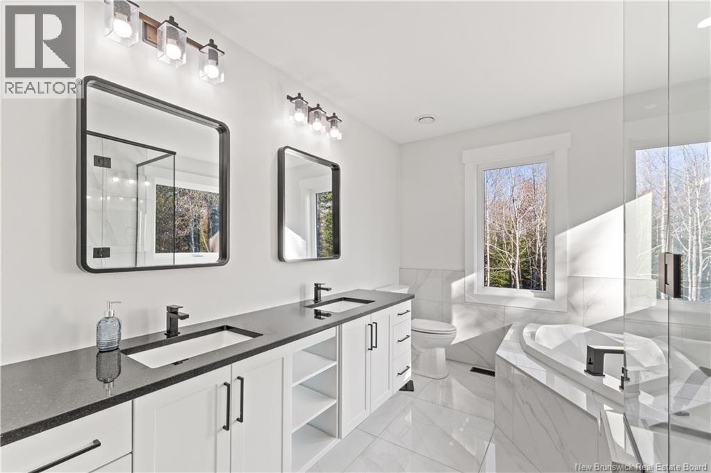 (AVAILABLE) Welcome to 45 Iona Drive, a stunning CUSTOM-BUILT HOME located in the PRESTIGIOUS MAGNETIC HILL DISTRICT OF RURAL MONCTON. Built in 2022, this exceptional property sits on a PRIVATE 1.43-ACRE TREED CORNER LOT, offering peaceful surroundings while being MINUTES FROM AMENITIES, SCHOOLS, SHOPPING & HIGHWAY ACCESS. Upon entry, the FOYER OPENS TO A BRIGHT OPEN-CONCEPT LAYOUT WITH HIGH CEILINGS AND CERAMIC FLOORING, creating an immediate sense of space and elegance. This modern home features 5 BEDROOMS and 3.5 BATHROOMS, with a layout designed for todays lifestyle. The main level includes a SUNROOM, MUDROOM, and WALK-IN PANTRY, complemented by a stylish interior highlighted by a BEAUTIFUL METAL STAIRCASE RAILING and CANADIAN MAPLE flooring. The contemporary kitchen showcases FLOOR-TO-CEILING CABINETRY, QUARTZ COUNTERTOPS, and ample storage, ideal for both everyday living and entertaining. The OVERSIZED PRIMARY BEDROOM offers a luxurious retreat complete with WALK-IN CLOSETS and a spa-inspired ensuite featuring a SOAKER TUB and WALK-IN SHOWER with DUAL SINKS. The FINISHED BASEMENT provides additional living space with 2 bedrooms and a 4pc bathroom. Additional features include a DOUBLE CAR GARAGE WITH DEEP STORAGE, CENTRAL HEAT PUMP, and FULL SPRAY-FOAM INSULATION THROUGHOUT, ensuring SUPERIOR EFFICIENCY and year-round comfort. A rare opportunity to enjoy REFINED RURAL LIVING WITH MODERN CONVENIENCE in one of Monctons most sought-after locations. (id:34572)