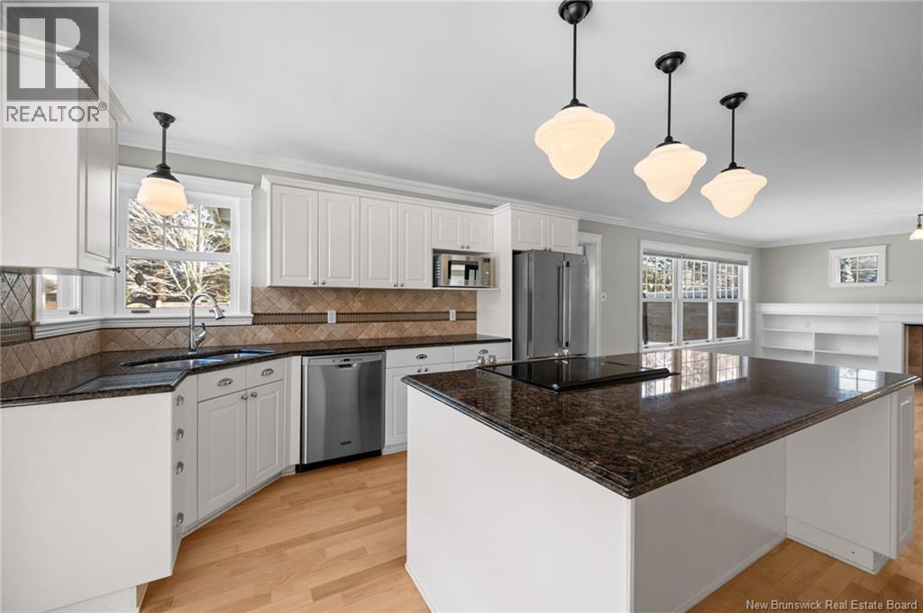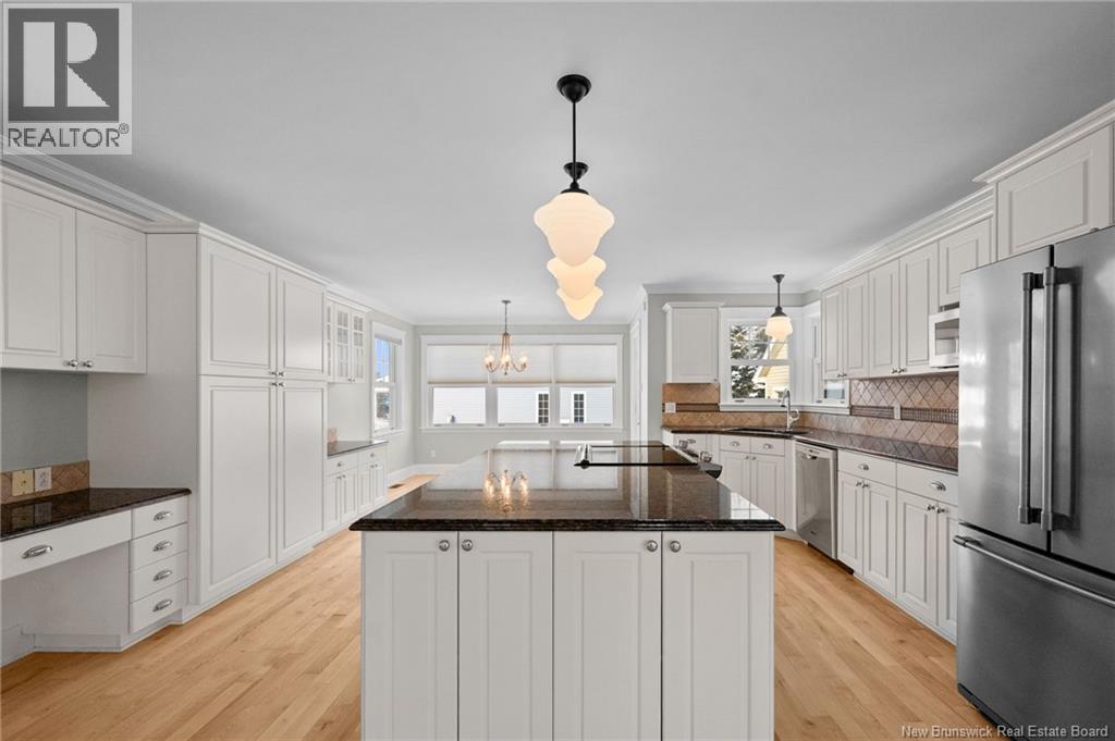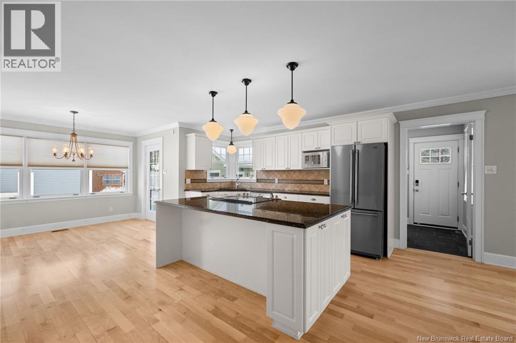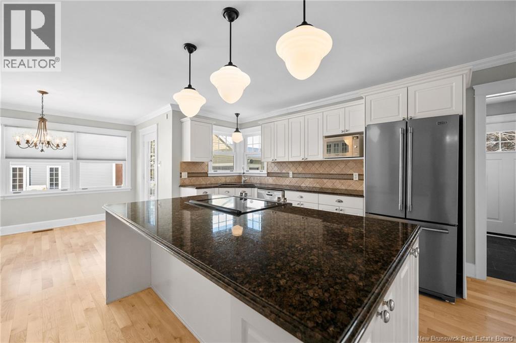 *Click on link for 3D virtual tour of this property* Welcome to this charming 2 storey home located on Vanier Street in Dieppe, offering timeless curb appeal with classic wood siding, a welcoming covered front veranda & a detached double garage with loft space. The fenced backyard backs directly onto walking trail, creating a private outdoor setting. Step inside to a bright main floor featuring beautifully refinished hardwood floors & spacious living areas designed for comfortable everyday living. The large kitchen is both functional & inviting with abundant cabinetry, granite countertops & a central island ideal for meal preparation or gathering with family & friends. The main level also includes a spacious living room, dining room, office, cozy den/sitting room, mudroom & convenient 2 PC bathroom. Central heating & cooling provide year-round comfort throughout the home. The 2nd floor offers 3 generous bedrooms including a comfortable primary with a large walk-in closet. The family bathroom is renovated. An additional space is the ideal home office, yoga room or play room. The partially finished basement adds additional living space with a family room, combined 3-piece bathroom & laundry area, along with plenty of storage. Outside, the fenced backyard, detached double garage with loft storage & direct access to nearby trails complete this well maintained property, offering a wonderful blend of space, comfort & lifestyle in a desirable Dieppe neighbourhood. Lot size: 81x114 (id:34572)