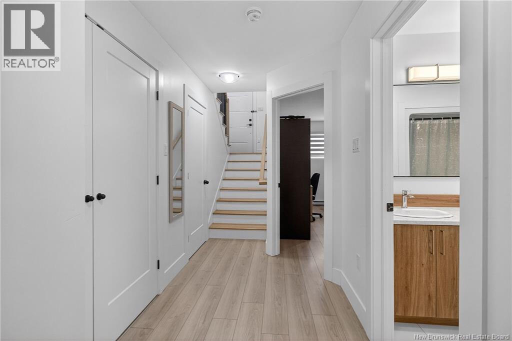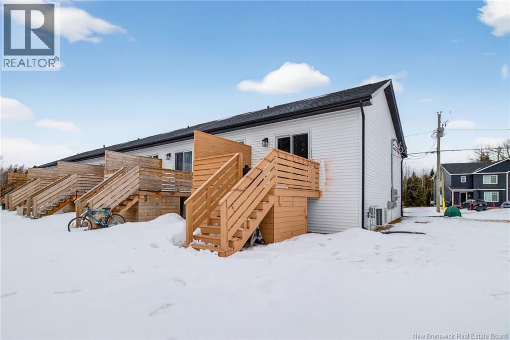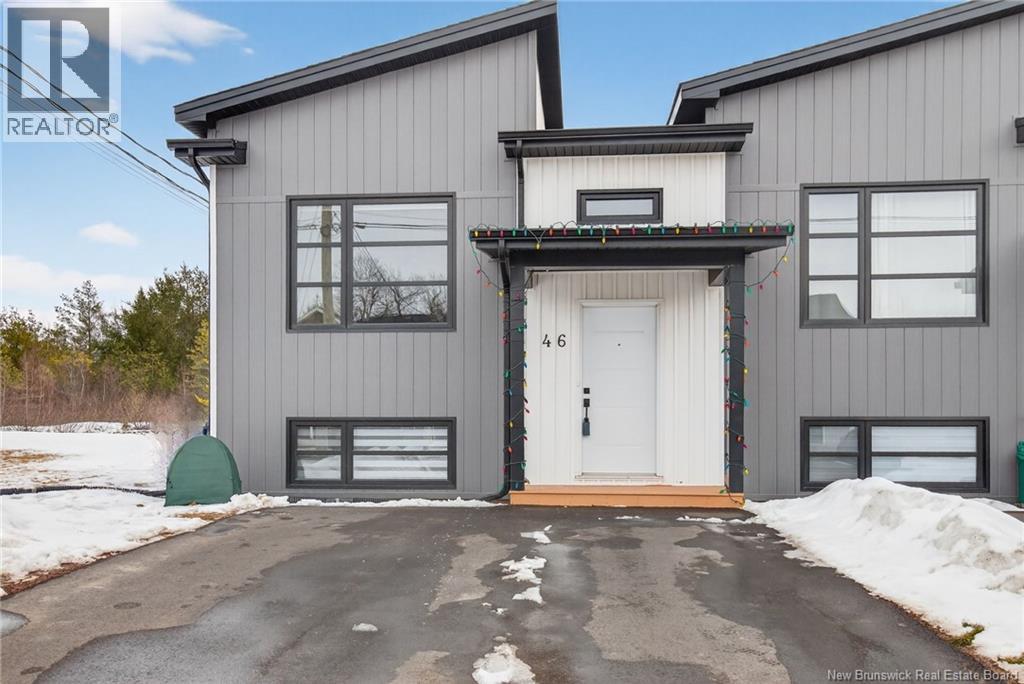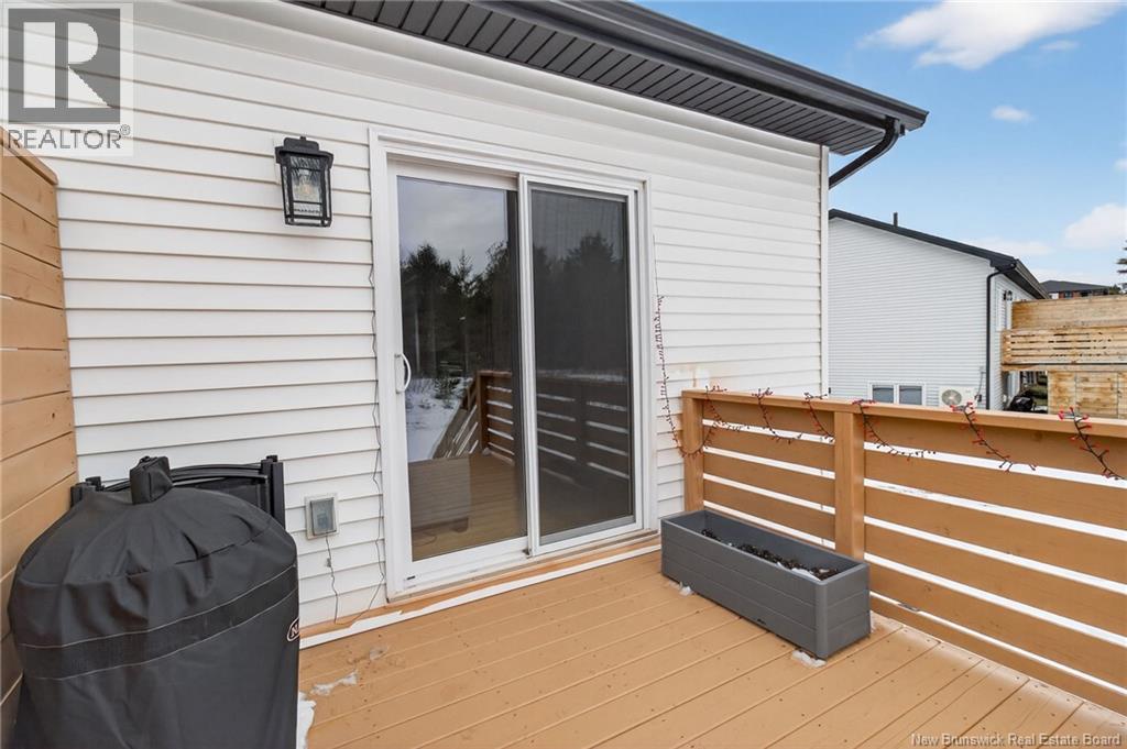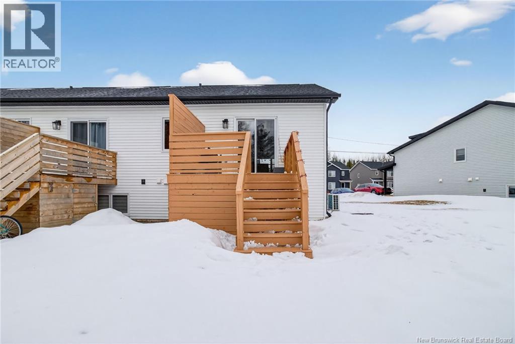 Welcome to 46 Beaux-Domaine Street, Dieppe Modern CORNER Townhouse Backing on a Walking Trail Built in 2024 modern construction with remaining new home warranty Corner split-entry townhouse offering extra natural light and privacy Backs onto a walking trail no rear neighbours and a PRIVATE backyard feel 3 bedrooms 1.5 bathrooms Main Features: Bright open-concept living space Electric fireplace in the living room for a warm and inviting atmosphere Mini-split heat pump for year-round comfort and energy efficiency Owner Improvements Since 2024: Blinds installed throughout the home Programmable thermostats in bedrooms and lower bathroom for energy efficiency Updated light fixture above the kitchen island Shelf added in primary bedroom closet TV wall-mount hinge system installed in the living room Swing bar security door guard on entrance door Exterior & Outdoor Features: Painted deck Enclosed storage under the deck Eavestrough extension added to direct water away from the foundation Rhododendron and rose bushes planted for added curb appeal Located close to schools, amenities, and walking trails and move-in ready home in a desirable Dieppe neighbourhood Contact your Realtor to schedule your private viewing today! (id:34572)