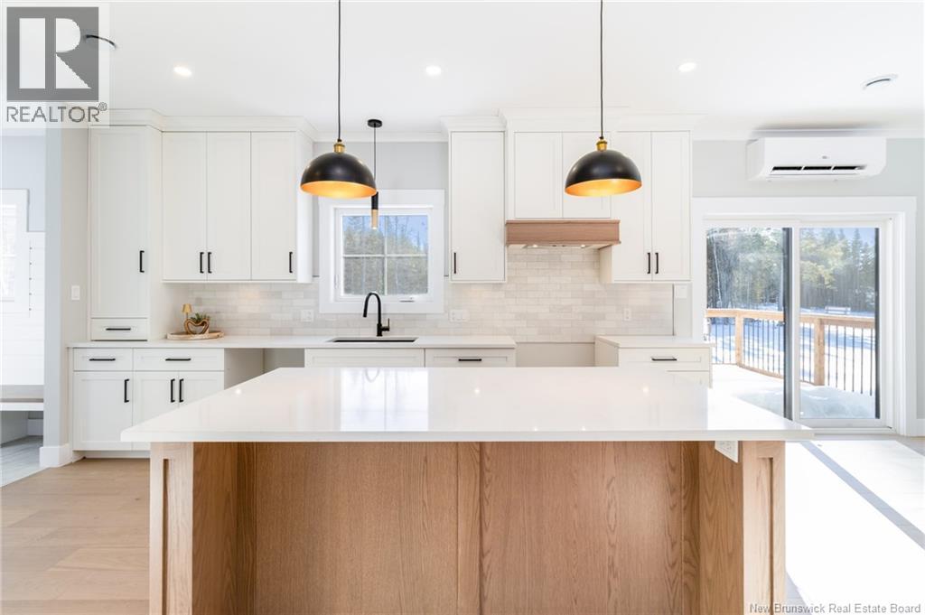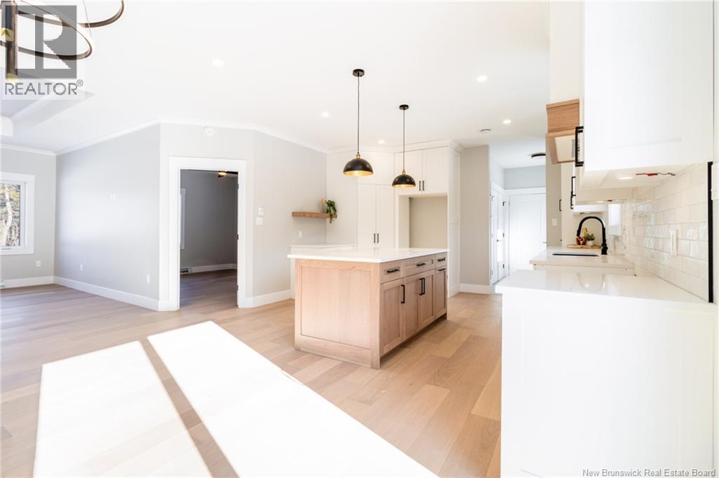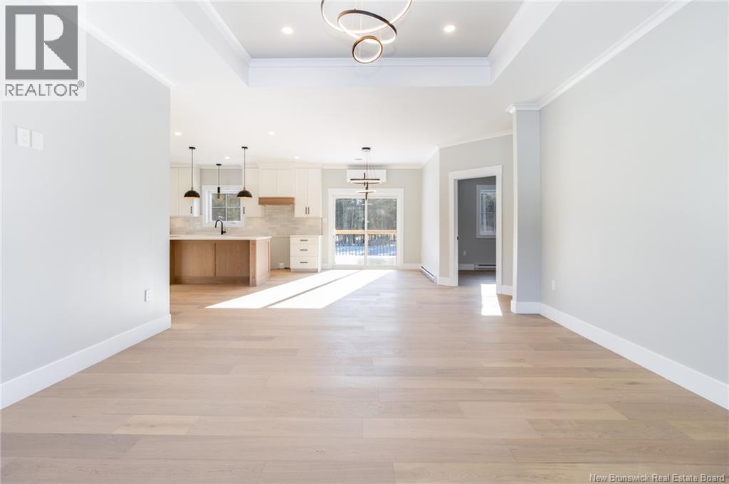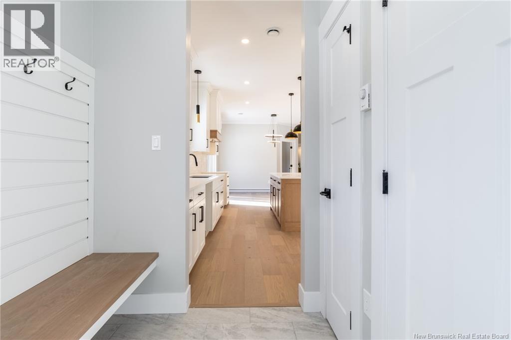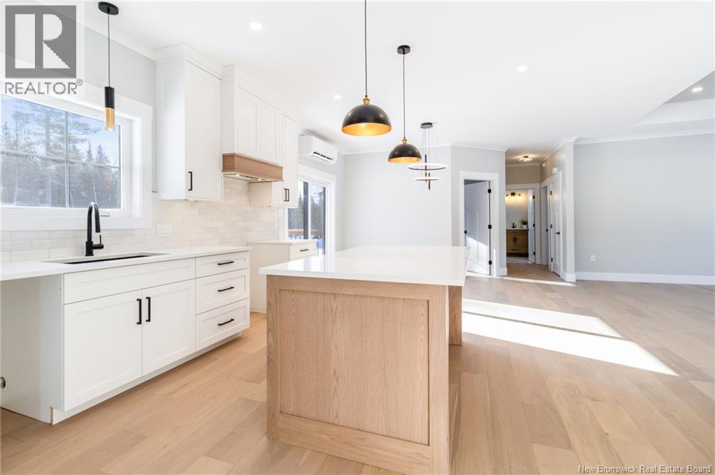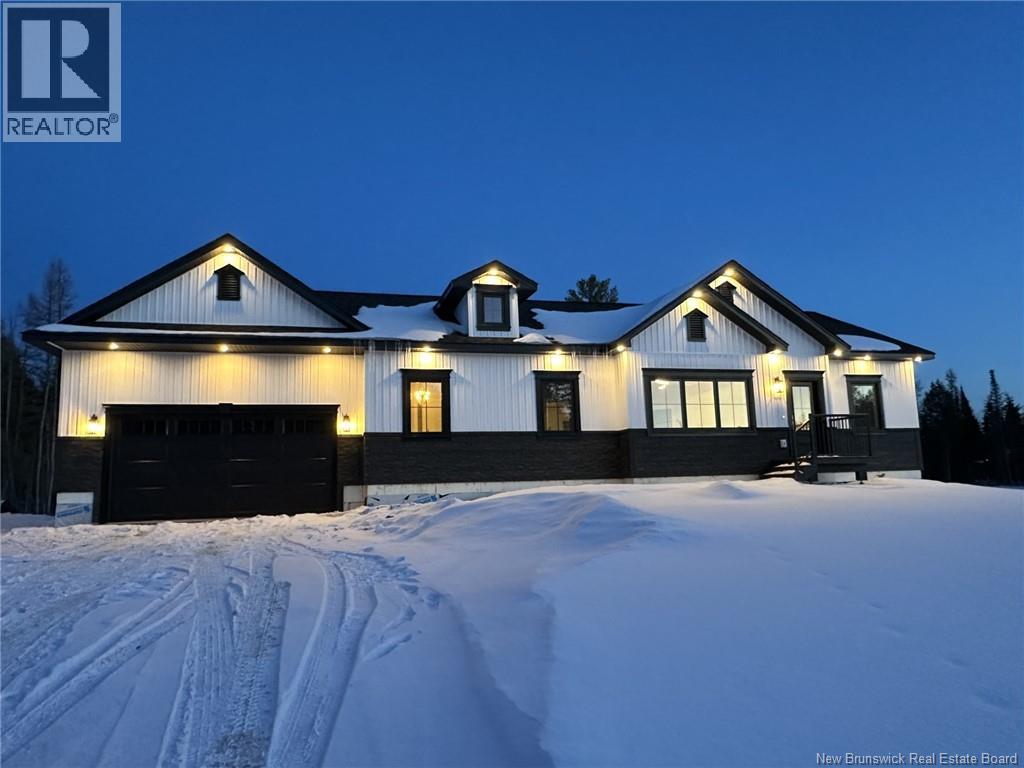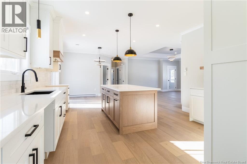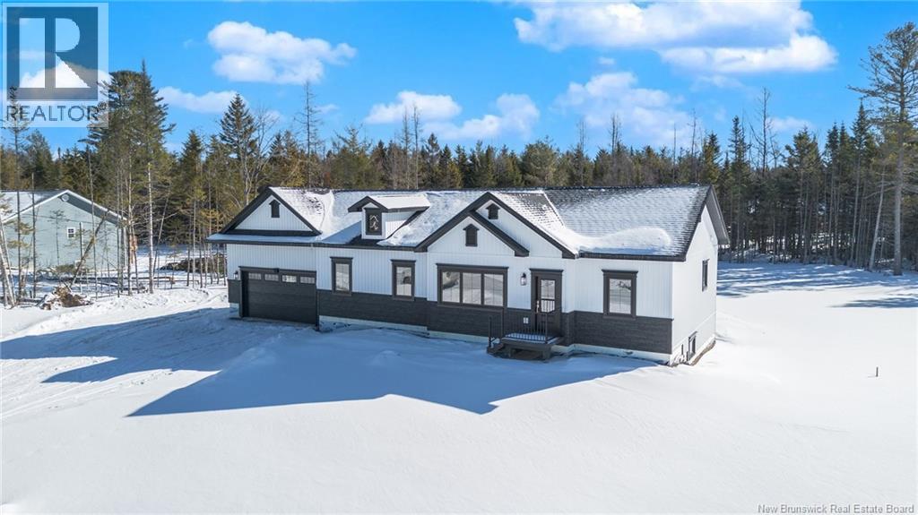 This custom-built 1,600 sq ft bungalow sits on a 1.3-acre corner lot in a desirable Fredericton North subdivision, just 15 minutes to both uptown and downtown. Featuring striking curb appeal with Novik dry stack vinyl stone, board-and-batten siding, custom metal accents, black Kohler windows, soffit lighting and added exterior foam insulation, this home is built for efficiency and style. The ICF foundation enhances durability and energy performance, while the attached insulated 2-car garage offers 8 ft doors and a 12 ft ceiling. Inside, 9 ft ceilings, crown molding and upscale finishes create a refined atmosphere. The stunning kitchen by Professional Touch Woodworking features cloud-white cabinetry, quartz countertops, under-cabinet lighting, Blanco Silgranite sink, large island, soft-close drawers and an exceptional walk-in pantry. Patio doors off the dining area lead to the deck. The bright living room offers engineered hardwood, a 10 ft tray ceiling and oversized windows. The private primary suite includes a walk-in closet and spa-like ensuite with custom tile shower, soaker tub, double quartz vanity and ceramic flooring. Two additional bedrooms and full bath are located on the opposite end. The tiled back foyer offers a custom bench with shiplap, laundry and garage access. The expansive ICF basement with egress windows and plumbing rough-in is ready for future finishing. Vendor is a licensed REALTOR® in NB. (id:34572)