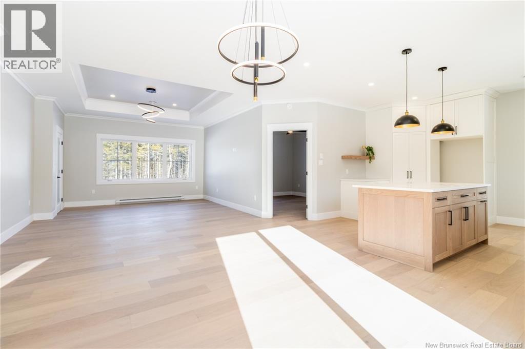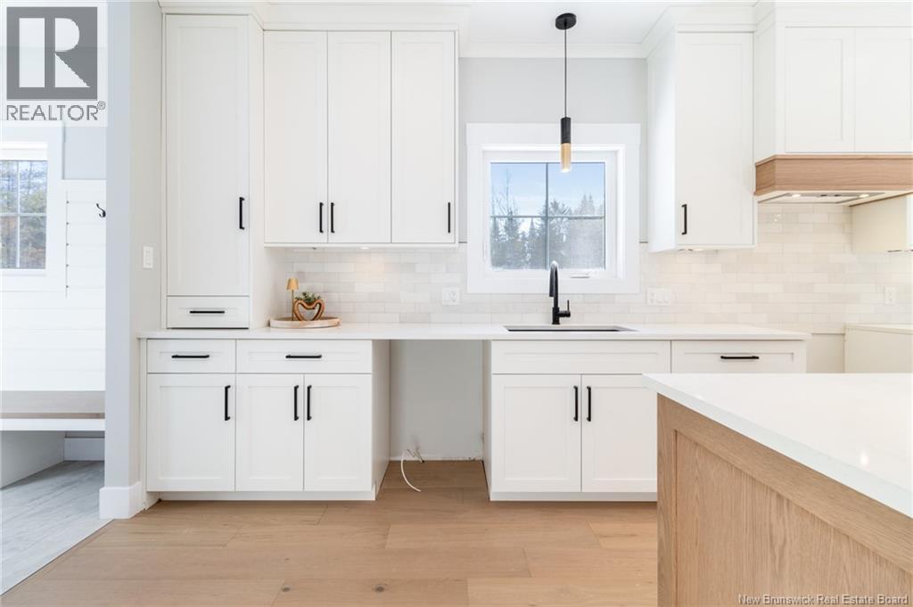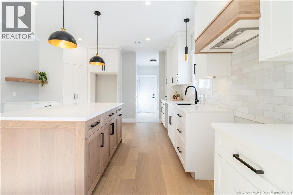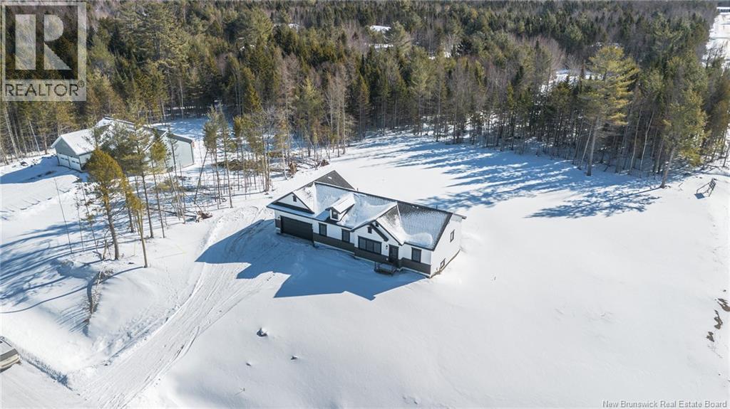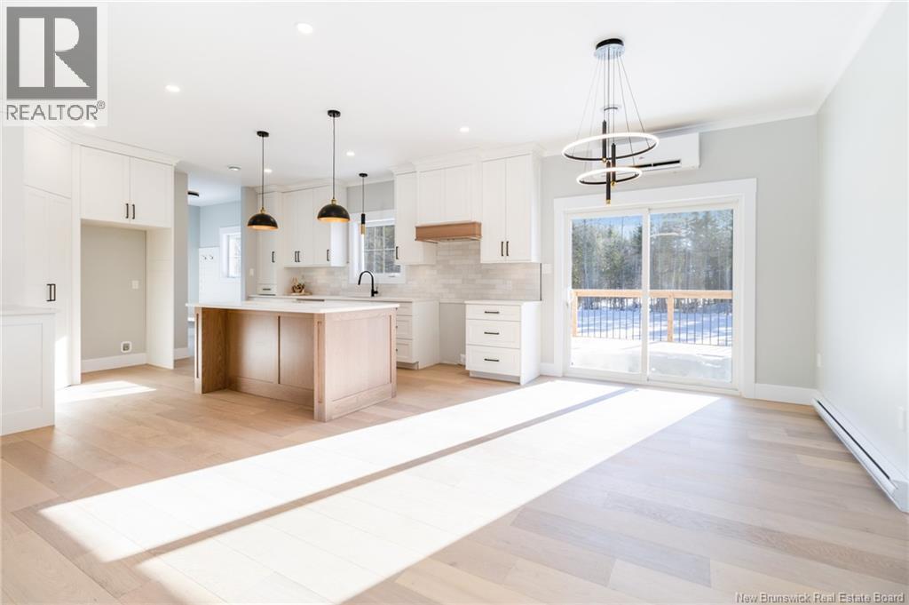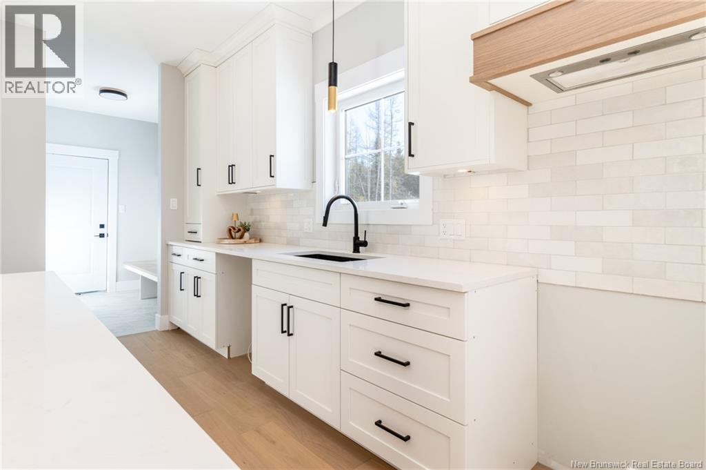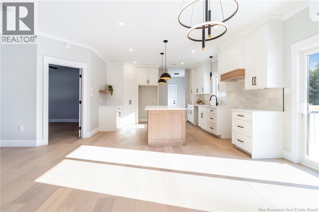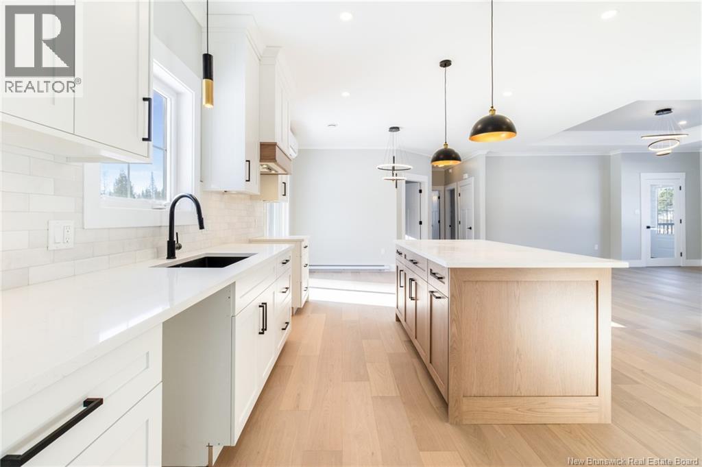 This custom-built 1,600 sq ft bungalow sits on a 1.3-acre corner lot in a desirable Fredericton North subdivision, just 15 minutes to both uptown and downtown. Featuring striking curb appeal with Novik dry stack vinyl stone, board-and-batten siding, custom metal accents, black Kohler windows, soffit lighting and added exterior foam insulation, this home is built for efficiency and style. The ICF foundation enhances durability and energy performance, while the attached insulated 2-car garage offers 8 ft doors and a 12 ft ceiling. Inside, 9 ft ceilings, crown molding and upscale finishes create a refined atmosphere. The stunning kitchen by Professional Touch Woodworking features cloud-white cabinetry, quartz countertops, under-cabinet lighting, Blanco Silgranite sink, large island, soft-close drawers and an exceptional walk-in pantry. Patio doors off the dining area lead to the deck. The bright living room offers engineered hardwood, a 10 ft tray ceiling and oversized windows. The private primary suite includes a walk-in closet and spa-like ensuite with custom tile shower, soaker tub, double quartz vanity and ceramic flooring. Two additional bedrooms and full bath are located on the opposite end. The tiled back foyer offers a custom bench with shiplap, laundry and garage access. The expansive ICF basement with egress windows and plumbing rough-in is ready for future finishing. Vendor is a licensed REALTOR® in NB. (id:34572)