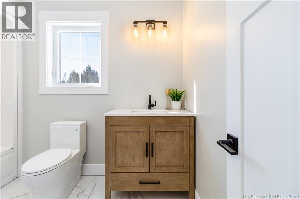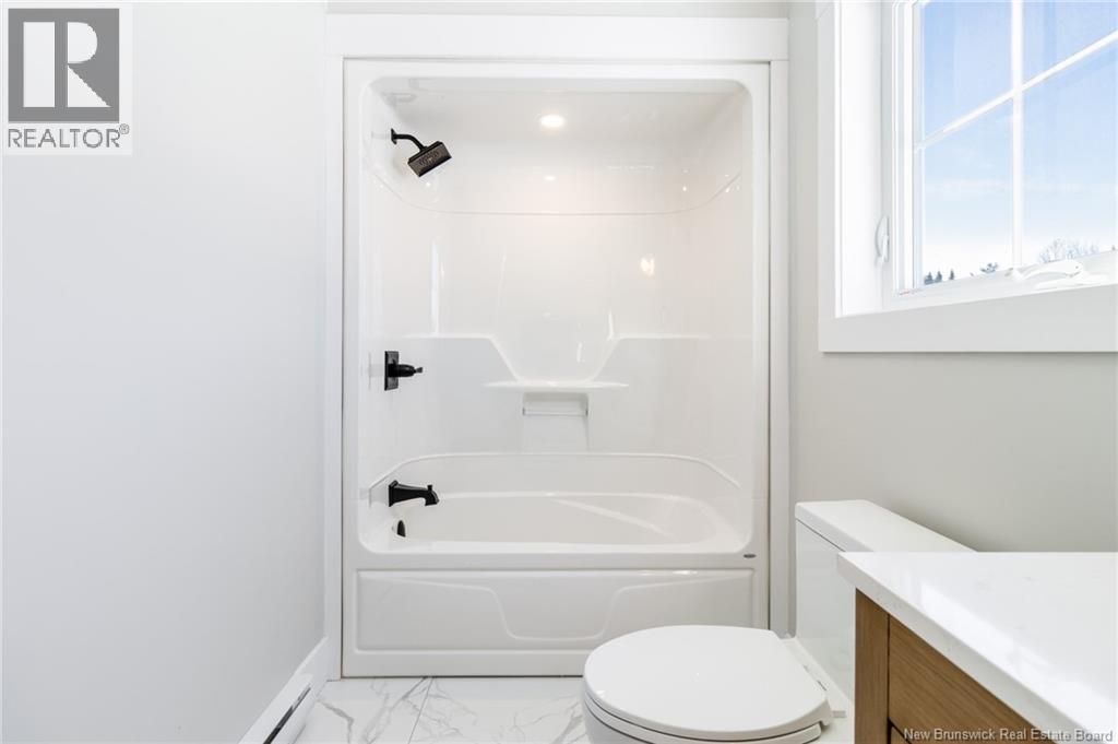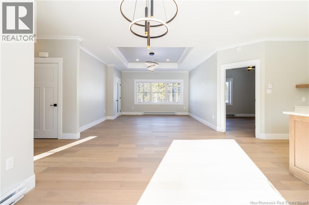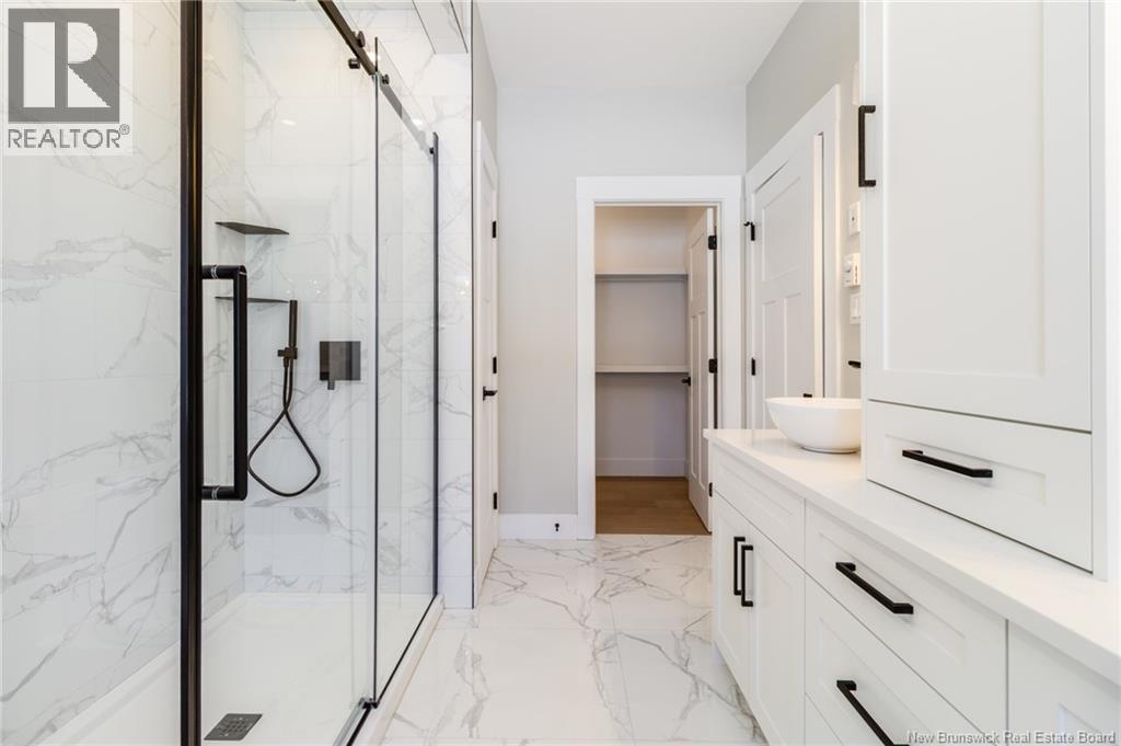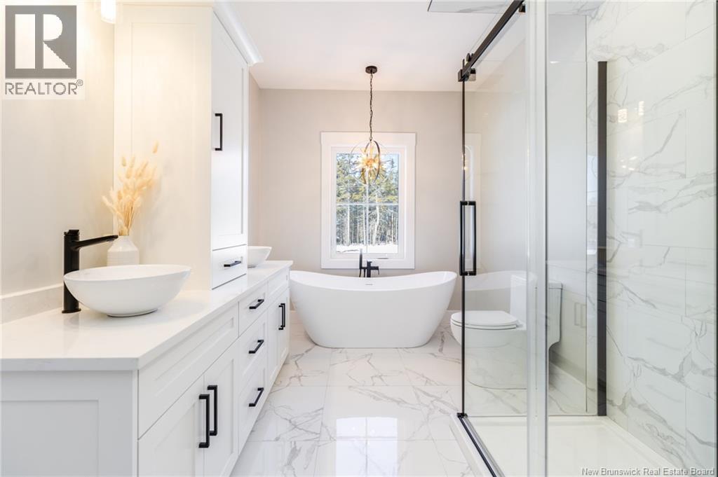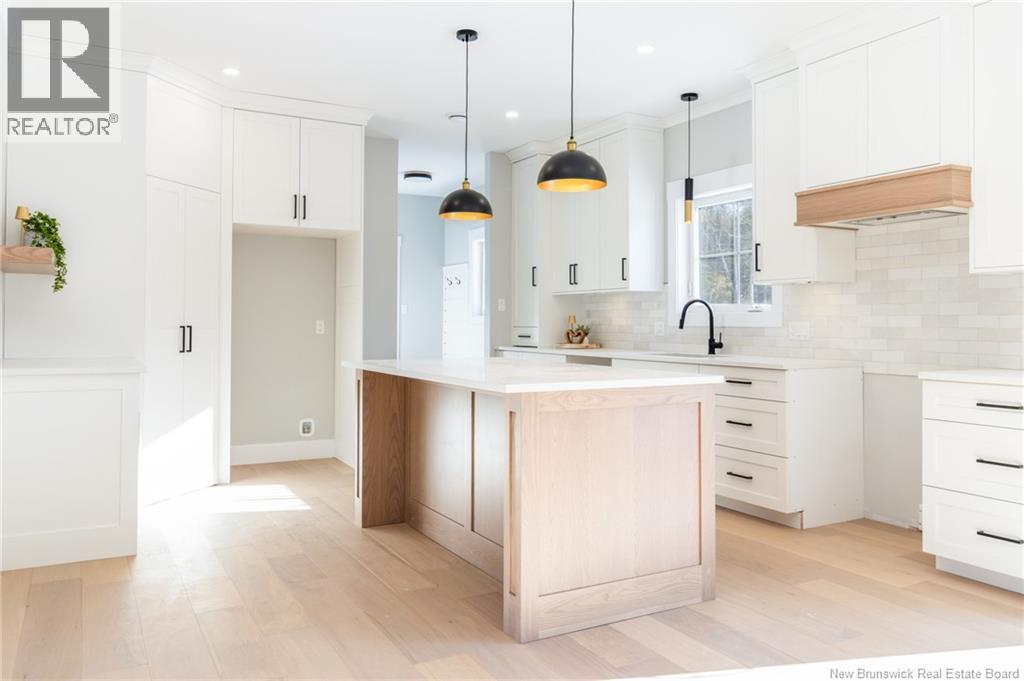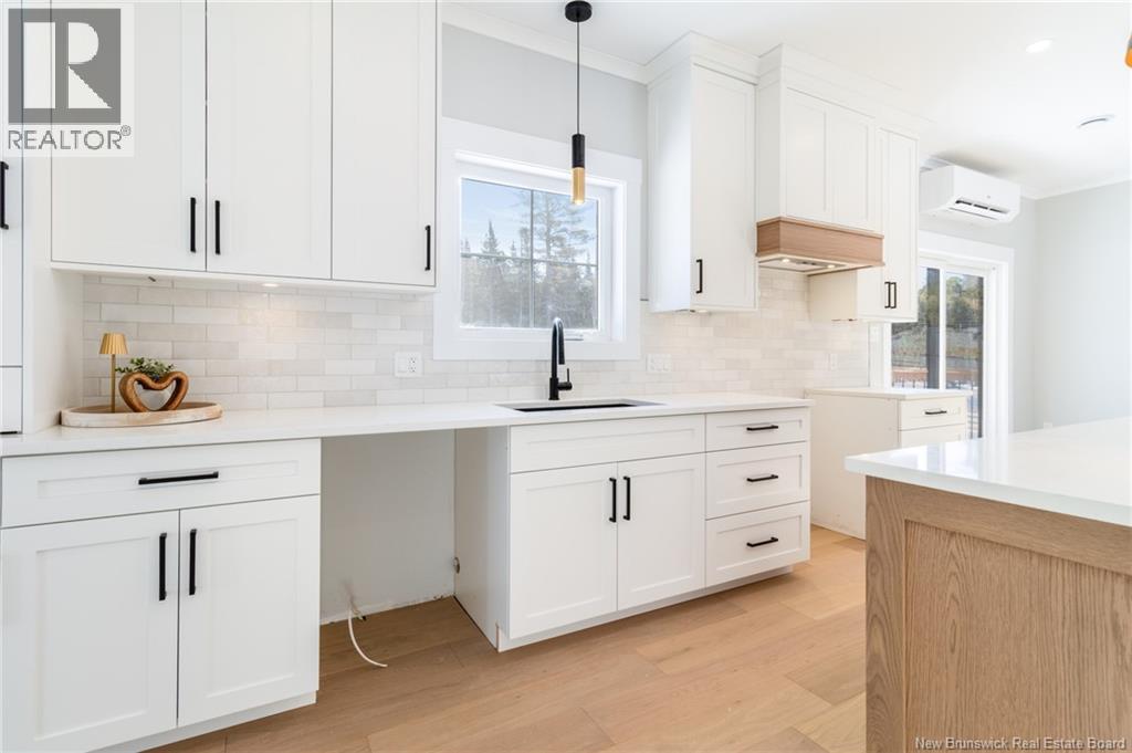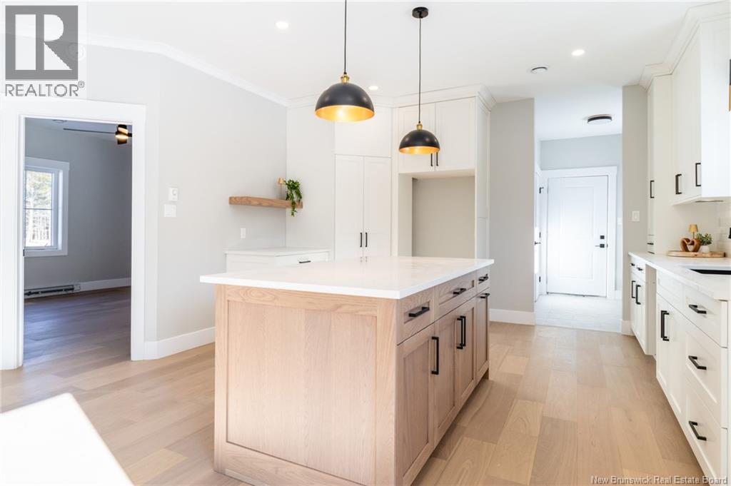 This custom-built 1,600 sq ft bungalow sits on a 1.3-acre corner lot in a desirable Fredericton North subdivision, just 15 minutes to both uptown and downtown. Featuring striking curb appeal with Novik dry stack vinyl stone, board-and-batten siding, custom metal accents, black Kohler windows, soffit lighting and added exterior foam insulation, this home is built for efficiency and style. The ICF foundation enhances durability and energy performance, while the attached insulated 2-car garage offers 8 ft doors and a 12 ft ceiling. Inside, 9 ft ceilings, crown molding and upscale finishes create a refined atmosphere. The stunning kitchen by Professional Touch Woodworking features cloud-white cabinetry, quartz countertops, under-cabinet lighting, Blanco Silgranite sink, large island, soft-close drawers and an exceptional walk-in pantry. Patio doors off the dining area lead to the deck. The bright living room offers engineered hardwood, a 10 ft tray ceiling and oversized windows. The private primary suite includes a walk-in closet and spa-like ensuite with custom tile shower, soaker tub, double quartz vanity and ceramic flooring. Two additional bedrooms and full bath are located on the opposite end. The tiled back foyer offers a custom bench with shiplap, laundry and garage access. The expansive ICF basement with egress windows and plumbing rough-in is ready for future finishing. Vendor is a licensed REALTOR® in NB. (id:34572)