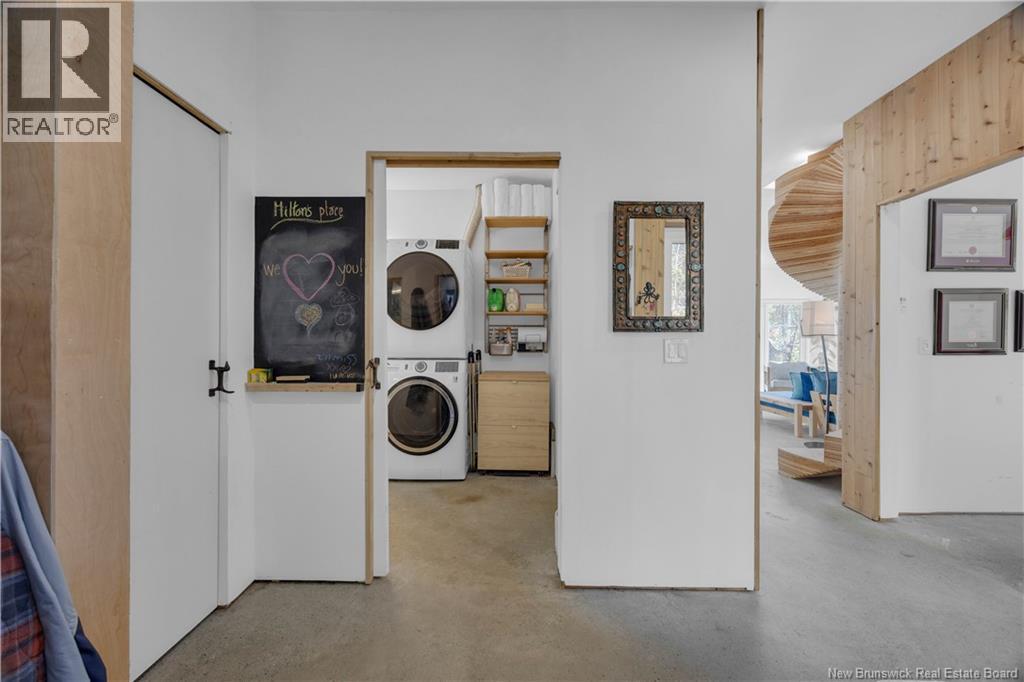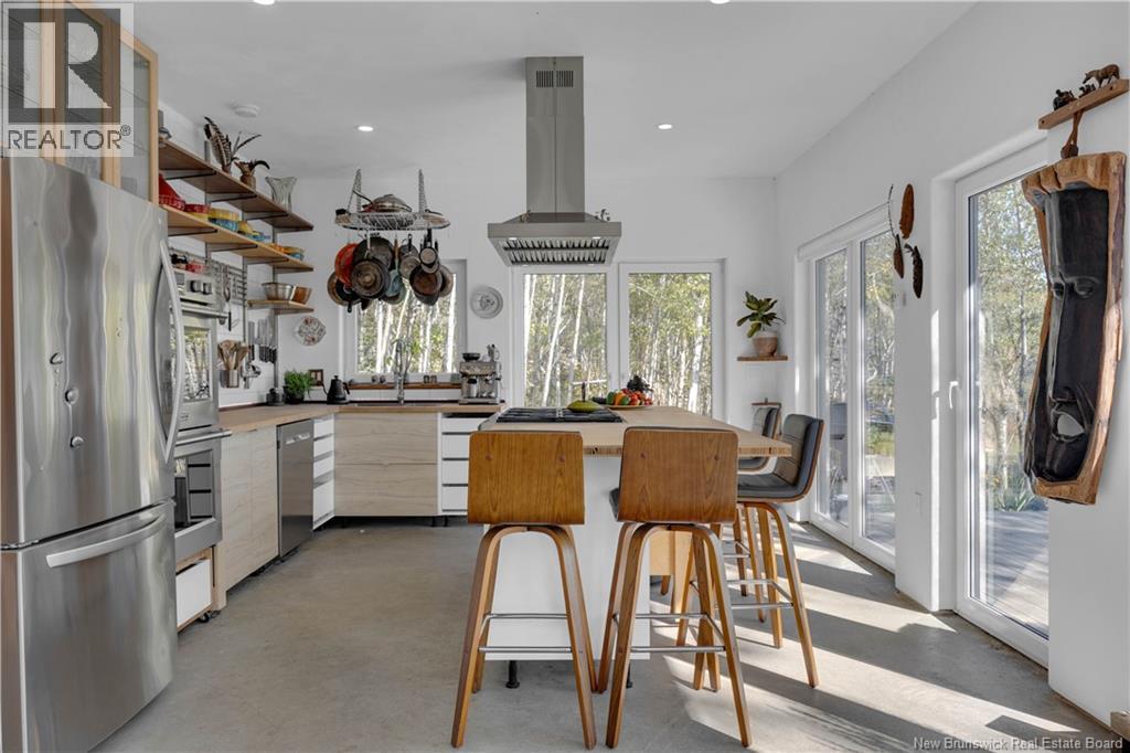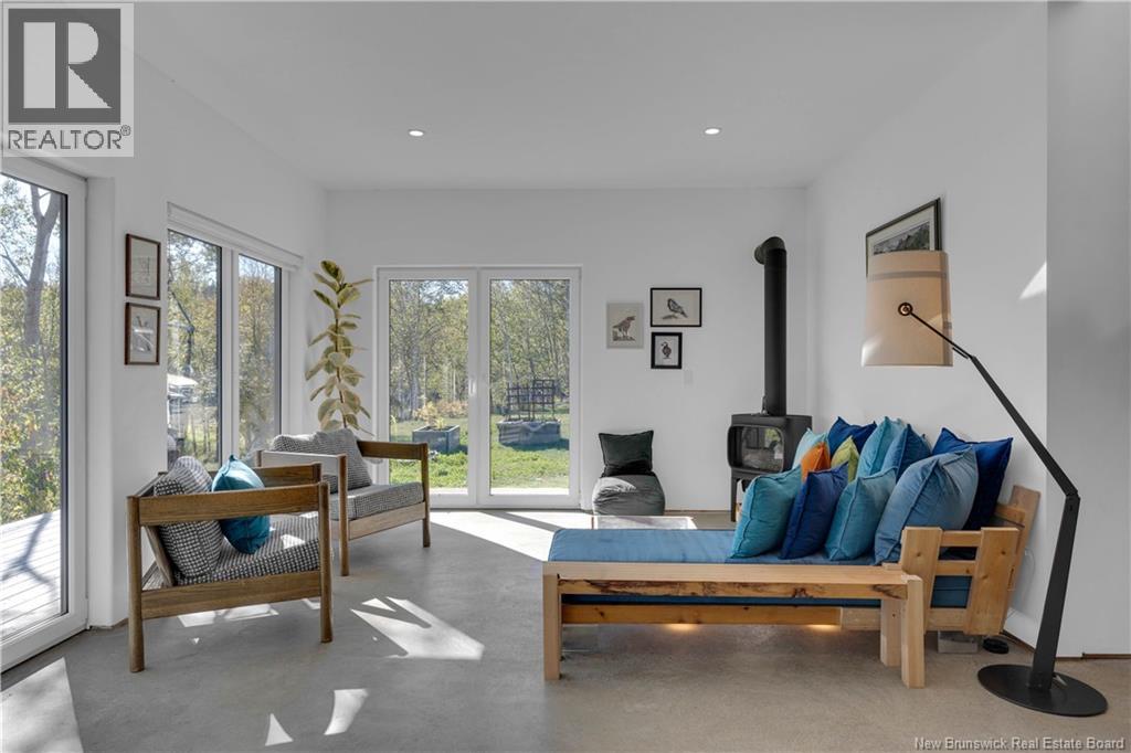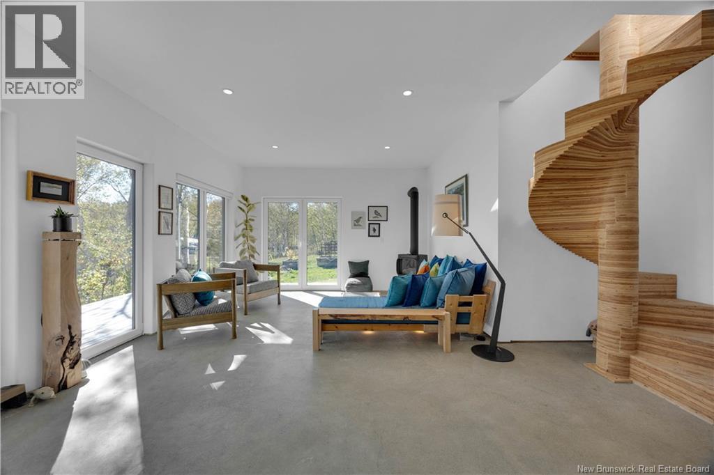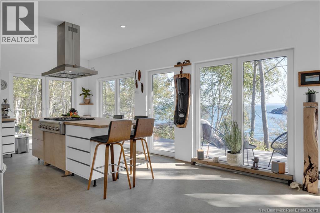 Set on 4.72 private acres with over 300 feet of oceanfront, this passive solar home looks out toward Grand Manan and the open horizon, where sky and sea merge in ever changing light. Eagles soar overhead, whales pass offshore, and seals visit the cove, this is everyday life in this rare coastal sanctuary. Sheltered by granite cliffs, the home combines warmth and simplicity with modern design. It features Legalett radiant concrete floors, south facing windows, an on demand hot water system, and a Jotul gas fireplace. Lime wash walls and minimalist lines create a calm, natural atmosphere. The exterior, finished in Yakisugi (charred cedar using the Japanese Shou Sugi Ban method), blends seamlessly into the forest and stone. A concrete pool and sauna foundation are already in place, ready to become your private ocean view spa. A pine workshop and cedar shed, both protected with traditional natural tar, complete the property. The workshop can easily be converted into a guesthouse or artists studio. A unique home where nature, architecture, and light exist in perfect balance built not to stand out, but to belong. (id:34572)