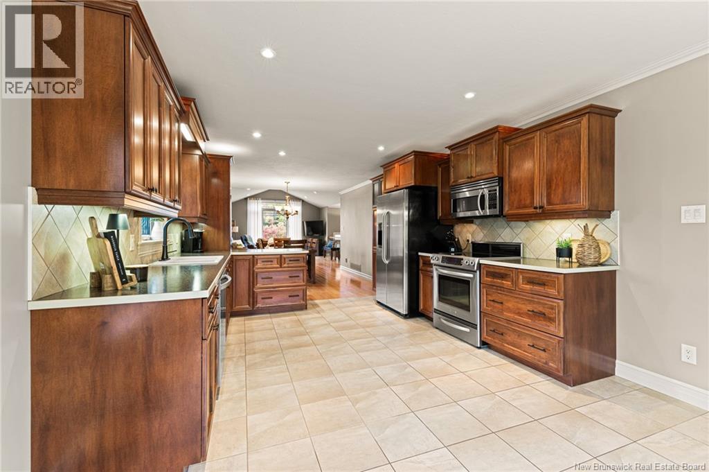 Bienvenue/Welcome to 485 Alfred Leger a beautiful neighborhood located in Dieppe Bonaventure Park close to many schools, quick access to Dieppe Blvd and all amenities. This immaculate executive open concept home sits on a large corner lot. As you enter the home you will be greeted by the lovely foyer with hardwood stairs leading you to a large living room with cathedral ceiling and adjacent is your large dining room, only a few steps away you will find a beautiful kitchen with a abundance of cupboards, stainless steel appliances and a large eating nook. Next to your kitchen you will find a beautiful 3 season sunroom with lots of windows over looking the backyard. The main floor also features 2 good size bedrooms including the primary bedroom with a large walk in closet and a cheater door to the main 5pc bathroom. Down the hall you will find the conveniently located large laundry rm. The fully finished lower lever offers additional living space with two large bedrooms, a large family room for movie night and a 3pc large bathroom, on this level you will also find 2 large storage room and a large workshop, a handyman delight! The home offers an attached double garage with a large double paved driveway, a baby barn for all your extra toys, Beautiful Mature Landscaping, Ducted Heat Pump, Central Vac and More! A true family home in a beautiful neighborhood! This one won't last long call your favorite realtor for a viewing today! Quick Closing Available! (id:34572)