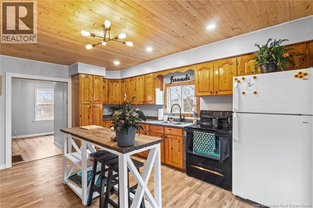 Step into this beautifully renovated 3-bedroom, 1.5-bath home, thoughtfully updated from top to bottom to offer a warm, homey feel with stylish wood accents and a modern touch throughout. Ideal for families or anyone hoping to become part of a tight-knit, growing community, this property welcomes you with an oversized eat-in kitchen, perfect for everyday meals and gatherings, along with a bright and inviting living area designed for comfort. The large primary bedroom provides plenty of space to unwind, complemented by two additional bedrooms suited for family, guests, or a home office. At the front of the home, a charming sun porch adds extra living space and a cozy spot to enjoy morning coffee or evening relaxation. The extensive upgrades bring peace of mind and modern convenience, including brand-new electrical, spray-foam insulation, new ductwork, a central heat pump, WETT certified wood stove, a new main-level half bath, new ceilings and walls, updated lighting and fixtures, new flooring throughout, new baseboards and trim, and new kitchen and bathroom countertops, sinks, and faucets. Fresh paint inside and out, ties it all together, making the home truly move-in ready. Located close to all the amenities of Minto and just 30 minutes to Fredericton or Oromocto, this beautifully finished property offers comfort, style, and small-town charm a must-see opportunity you wont want to miss! (id:34572)