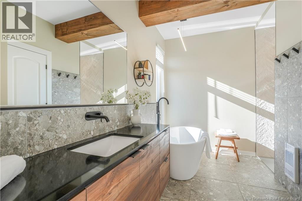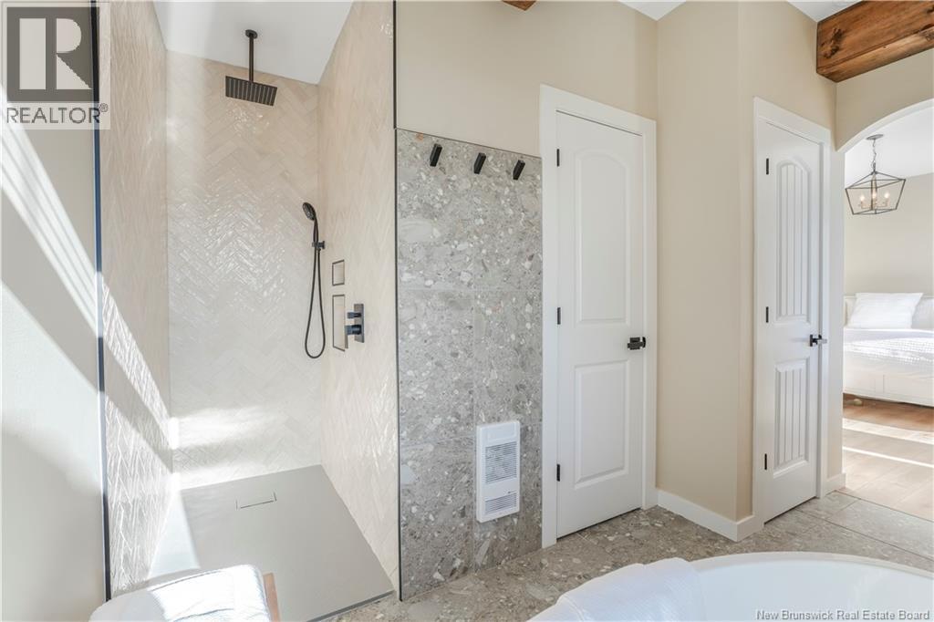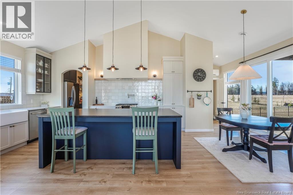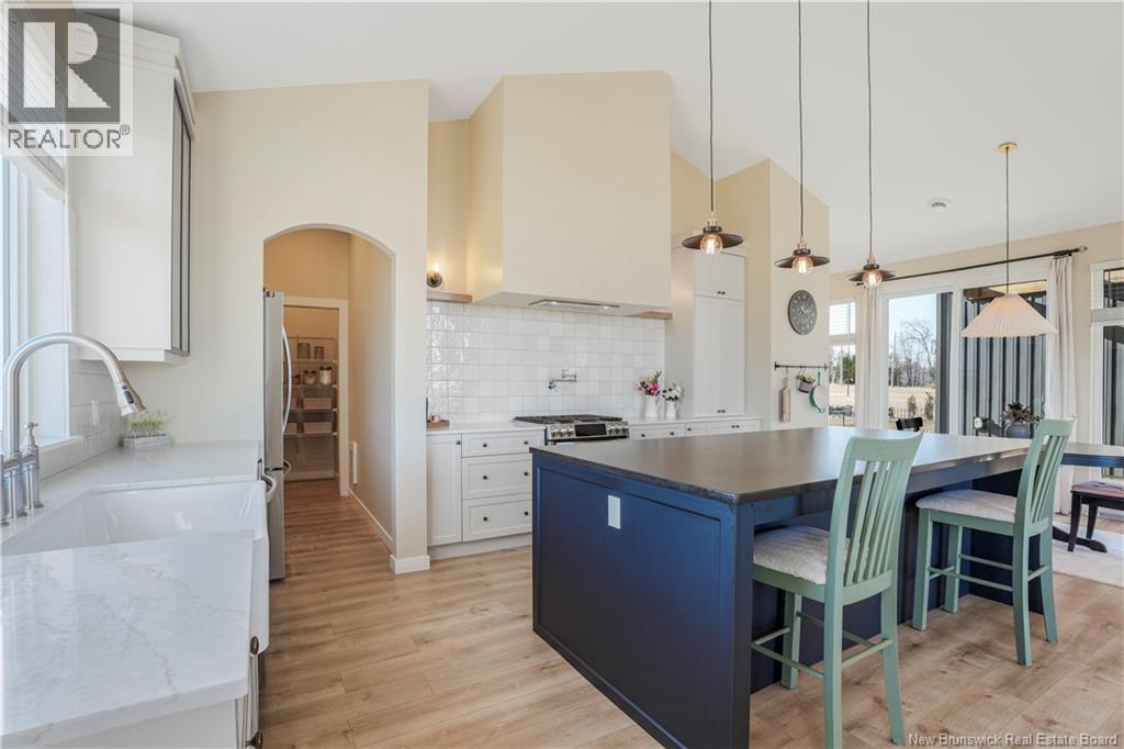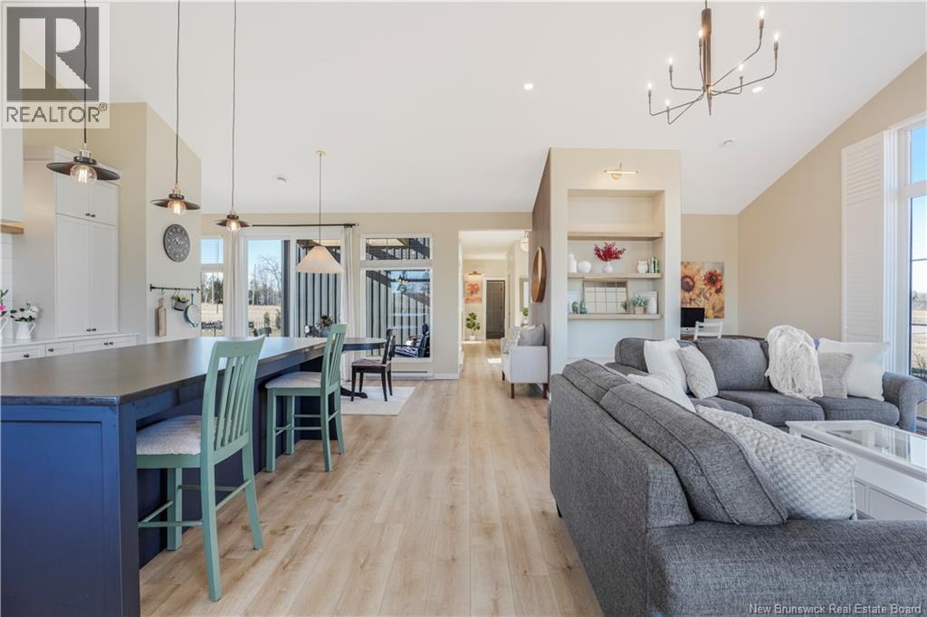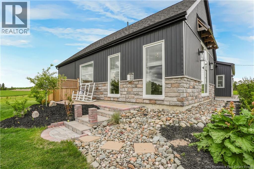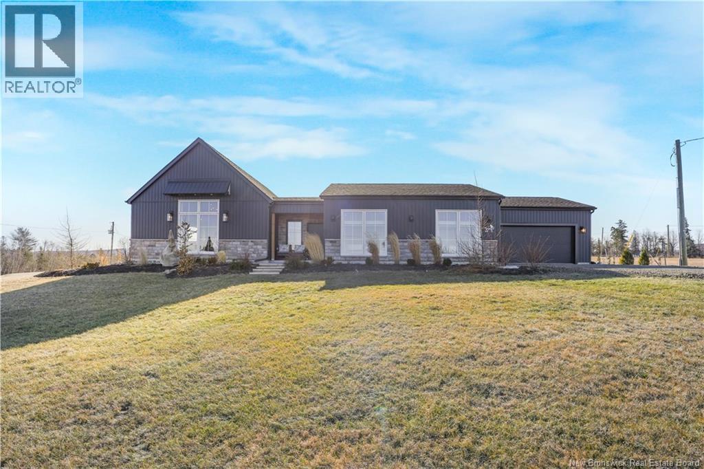 Modern luxury living with views of the beautiful Saint John River. Completed in 2023, this stunning executive bungalow sits on a beautifully fully landscaped 1 acre lot, with access to a nearby community boat launch; perfect for anyone who loves life near the water. This thoughtfully designed home offers 4 bedrooms and 2.5 bathrooms, soaring ceilings, oversized windows, and bright open living spaces. The show-stopping kitchen is the heart of the home, featuring stone countertops, gorgeous backsplash, a statement range, and an impressive 8 island, a walkthrough butlers kitchen into the additional walk-in pantry; a dream space for entertaining. Outside the dining area is a pergola-covered terrace, perfect for summer evenings, bbq's and backyard gatherings. The living room is warm & bright with large picture window with views of the water, featuring a cozy propane fireplace, built-ins & a dedicated workspace. Luxury primary suite at the back of the house with large picture windows and a show stopping spa-like ensuite featuring a custom walk-in tile shower, relaxing soaker tub, and walk-in closet. This sprawling bungalow still has 3 more bedrooms, a stunning main bathroom with tile shower, a 1/2 bathroom and beautiful + functional laundry/mudroom with access to the attached double car garage completes this stunning dream home! Meticulously maintained, showing serious pride of ownership, this is THE home you do not want to pass by. (id:34572)