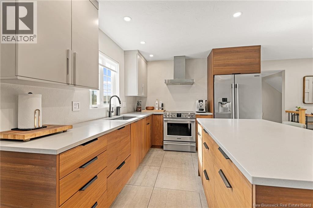 Welcome to 5 Melba in Moncton, NB! This charming residence offers comfortable living in a friendly neighbourhood in the sought after Moncton-East area. The living room is spacious and inviting with a beautiful accent wall with lower cabinet, ideal for relaxing or hosting gatherings. The freshly renovated kitchen offers tons of cabinetry and well-sized, perfect for family meals and entertaining guests. Off the kitchen is good size dining area with access to back yard sunroom through sliding patio doors. Youll also find a half bathroom on this floor with a convenient stackable built-in cabinet. Upstairs features three bedrooms with the primary having access to a jack & jill 5pc bathroom. The Basement offers additional which includes a large family room with a cozy custom feature wall with electric fireplace, perfect for a media room or recreation space. A non-conforming bedroom and 4pc bathroom completes this space. The propertys layout combines functionality and comfort, making it suitable for various lifestyles. No to forget the backyard that has numerous trees and garden area for your green thumb. Located close to local amenities, schools, parks & trails, and transportation routes, this home offers both comfort and accessibility. Whether you're looking for a family house or a cozy residence in Moncton, 5 Melba Street is one to see. (id:34572)