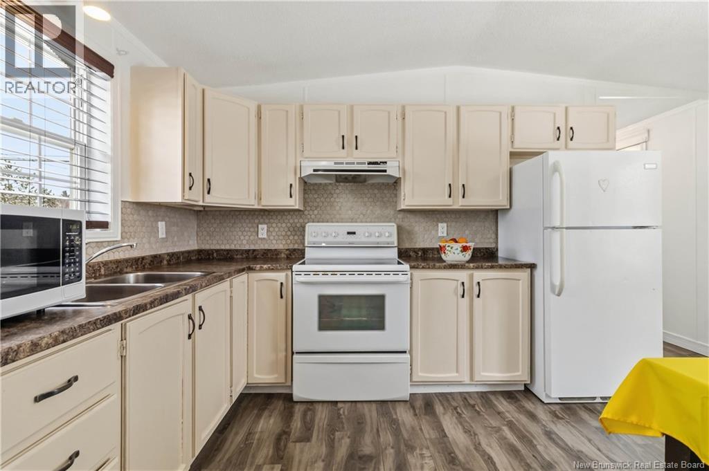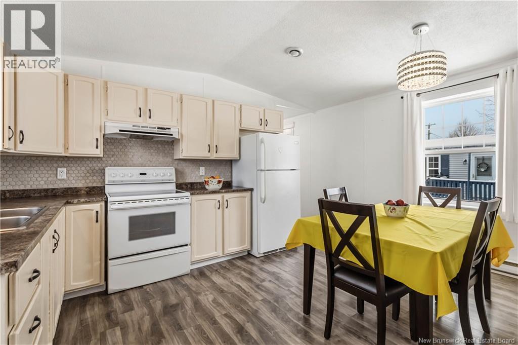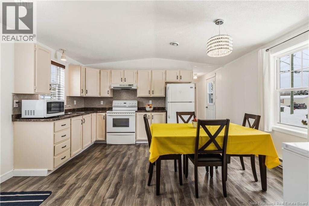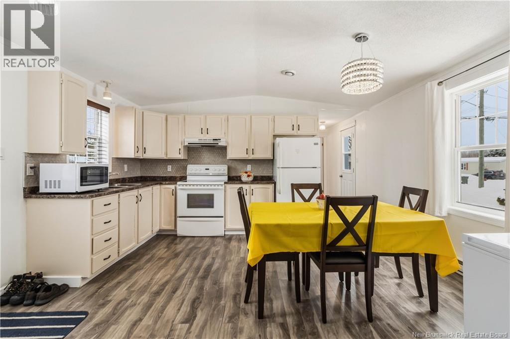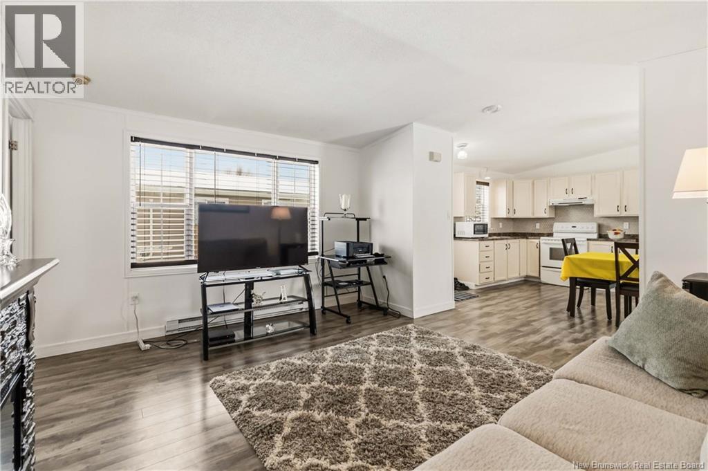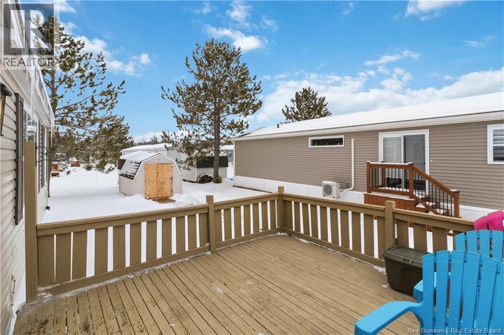 Well-maintained 2-bedroom, 1-bath mini home with an open-concept layout and great natural light throughout the main living space. The kitchen and living room connect seamlessly, creating a functional and comfortable flow. A large front deck adds usable outdoor space, while the property also includes a baby barn for additional storage. Recent updates include new windows, new exterior door, fresh interior paint, new washer and dryer, updated shed flooring, and a newly built rear deck with stairs. Roof shingles are approximately 7 years old. Situated on leased land, this property offers a practical option for buyers looking for manageable living with several key upgrades already completed. (id:34572)