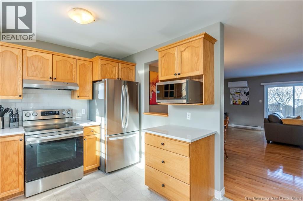 Welcome to this well-maintained two-storey townhouse condo in the heart of Dieppe, NB. This move-in-ready home offers three bedrooms and two full bathrooms, making it an ideal option for families, professionals, or anyone seeking low-maintenance living. The refreshed kitchen features quartz countertops, a modern backsplash, new flooring, along with new appliances in 2023, creating a functional space for everyday living and entertaining. Hardwood flooring runs throughout the main level and continue upstairs, adding continuity to the home. Off the living area are doors leading to an enclosed back deck area. Downstairs features a finished family room space with the addition of two storage areas. Comfort is enhanced with an efficient mini-split heat pump system, including one outdoor unit and three heads on all three levels as well as added attic insulation (2024). Located close to schools, parks, shopping, and other amenities. Call, text or email for further details. (id:34572)