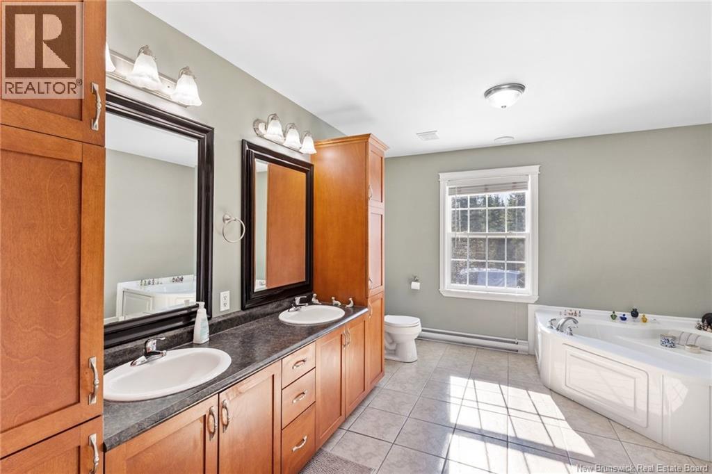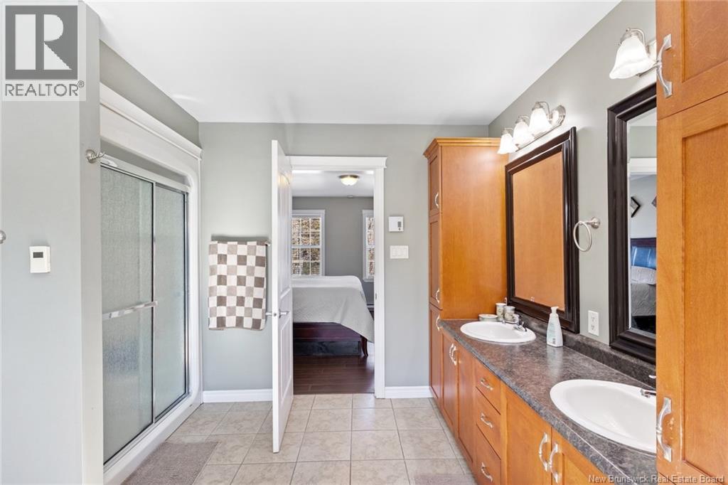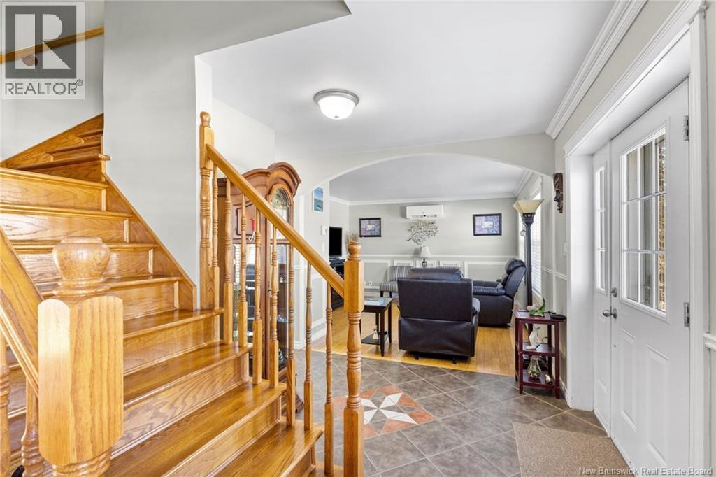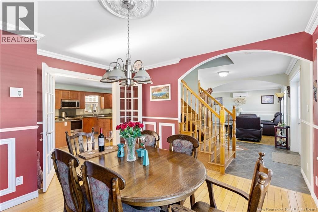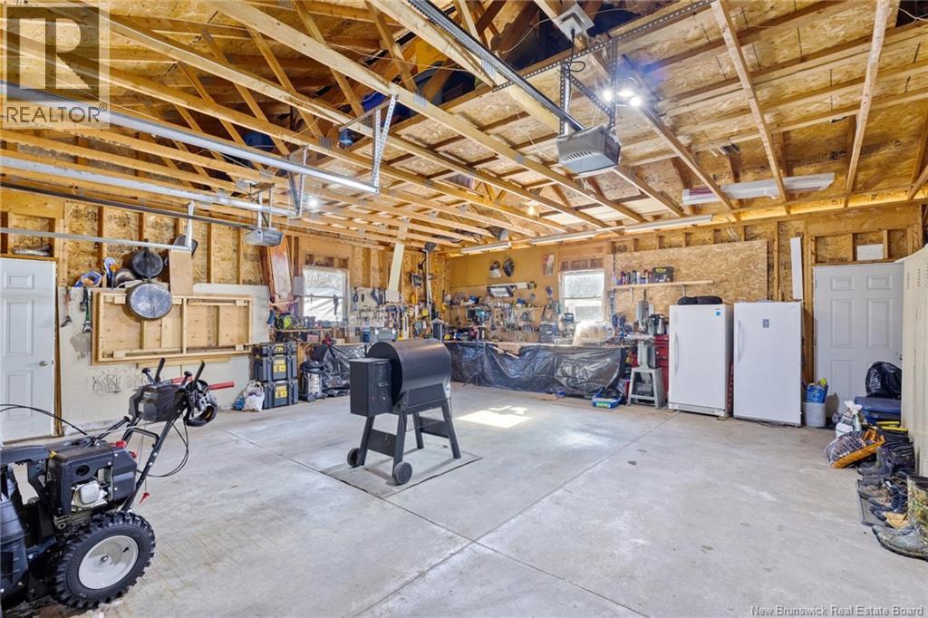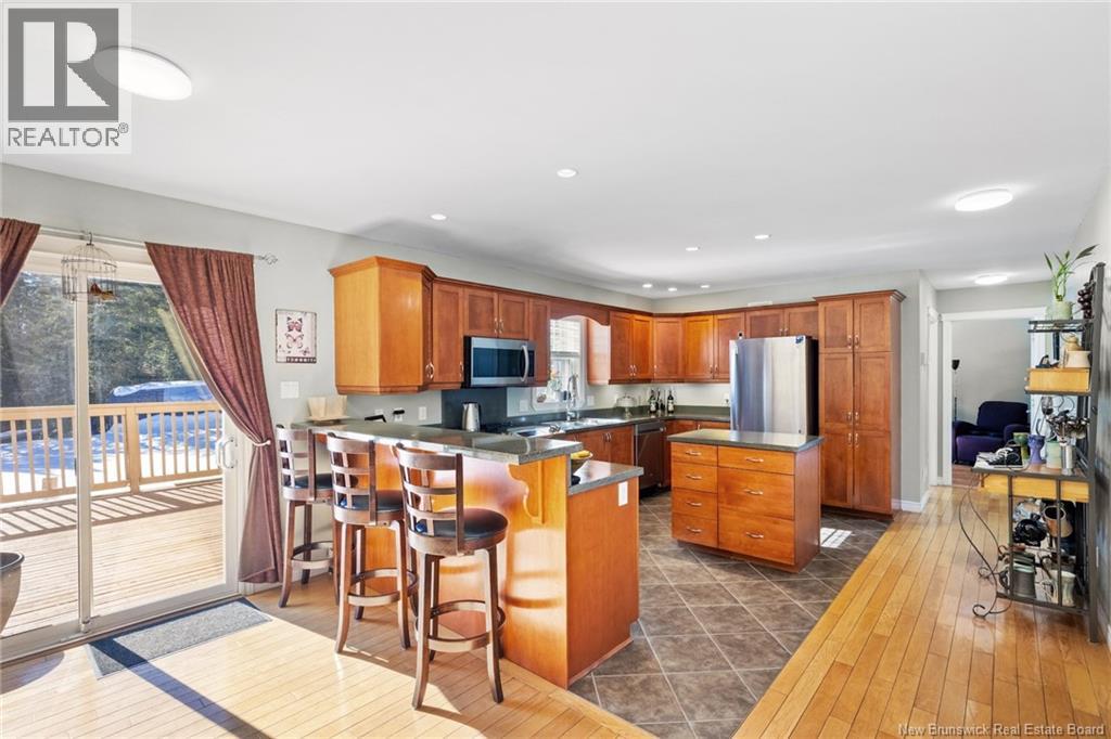 Just 10 minutes to CFB Gagetown and 30 minutes to Fredericton, this beautiful two-story home offers the perfect blend of privacy, space, and everyday convenience, close to amenities and the hospital. With 5 bedrooms and 3.5 baths, theres room here for everyone. The main level welcomes you with warm hardwood floors, a bright and comfortable living space, and a spacious kitchen featuring a large island perfect for gathering with family and friends. Patio doors lead to the back deck where you can relax and enjoy the peaceful setting. A main-floor bedroom and half bath add flexibility for guests or extended family. Upstairs, youll find three generous bedrooms, including a lovely primary suite with a walk-in closet (with window) and a 4-piece ensuite with heated floors a cozy touch youll appreciate in cooler months. Second-floor laundry makes daily living easy. The finished lower level offers even more space with a rec room, bedroom, full bath, gym area, and storage. Complete with an attached double garage, heat pumps, generator house with dedicated panel, sauna building, storage shed, and ATV trails right behind the property this is a home designed for both comfort and lifestyle. (id:34572)