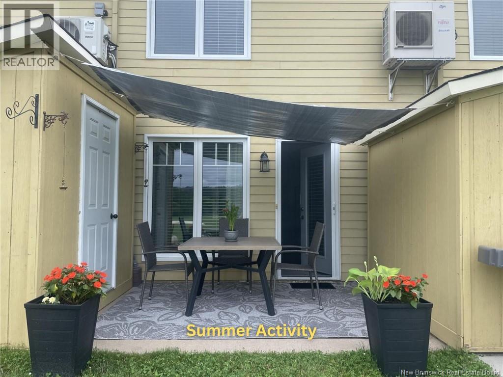 Experience the Perfect Blend of Luxury and Carefree Living, If you are ready to retire your snow shovel and trade yard work for relaxation, this unique townhouse-style condominium is the retreat you've been searching for. Situated with breathtaking, unobstructed views of the Golf Course and the Saint John River. Main Floor with welcoming foyer leads into a bright, open-concept kitchen and an expansive dining and living area. A conveniently located half-bath serves the main level. Upper Level has two generously sized bedrooms. The primary bedroom overlooks the lush golf course and featuring a walk-in closet with a cheater door to the large main bathroom. The laundry area is intelligently tucked away in the upstairs hallway between the bedrooms. Stay comfortable year-round with two heat pumps providing energy-efficient heating and cooling on both levels. Your monthly condo fee of $280 covers a comprehensive suite of services like Professional snow removal, landscaping, and grounds maintenance, Future roof repair and replacement, window cleaning, Water and sewage bills, plus professional waste management. Fees also covers fire and public liability insurance for the corporation. Note: A one-time Reserve Fund contribution of $500 is payable upon closing. Dedicated storage shed for patio furniture and designated parking space are included. (id:34572)